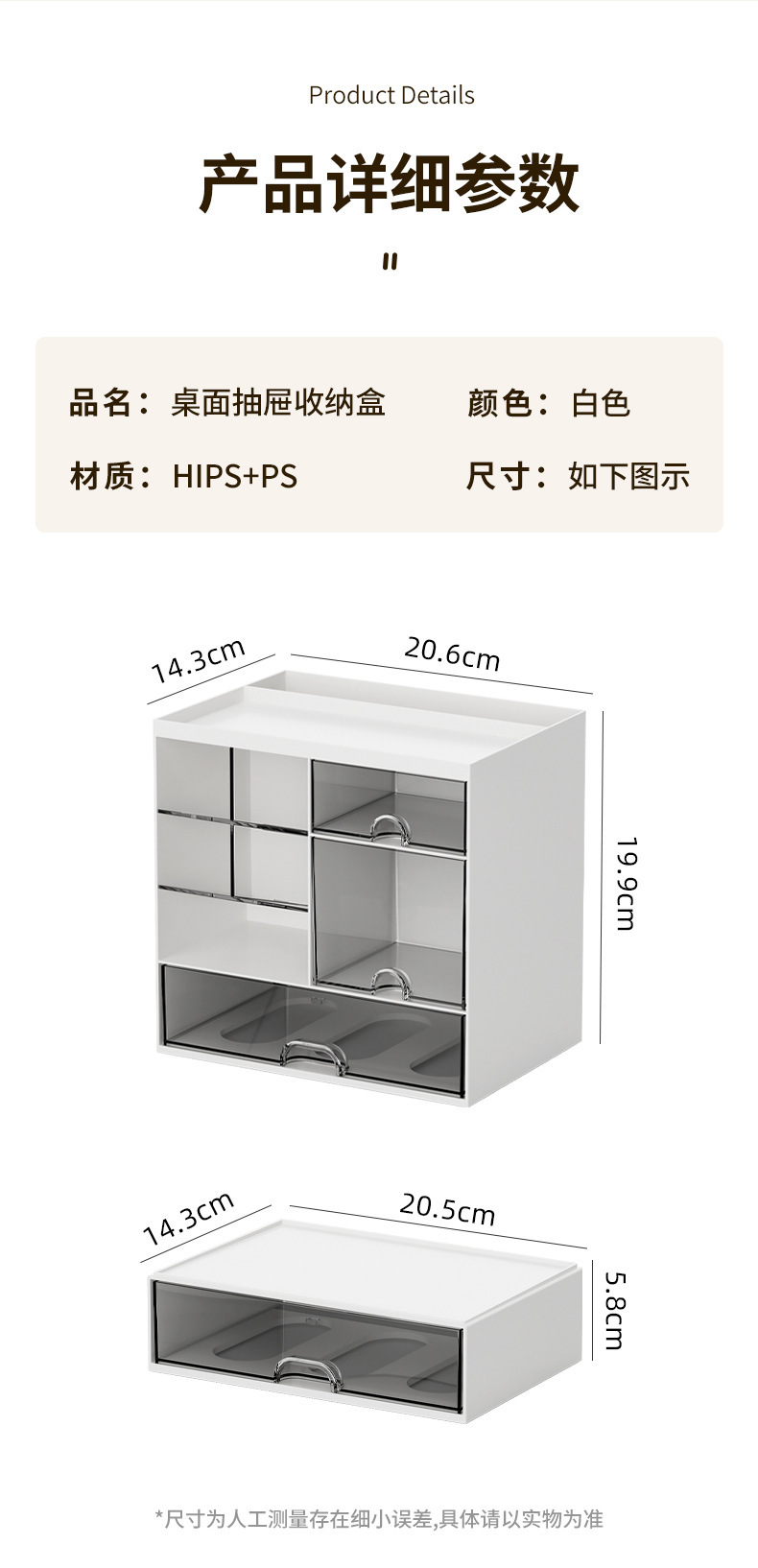 材质:所有抽屉+插片PS+主体HIPS