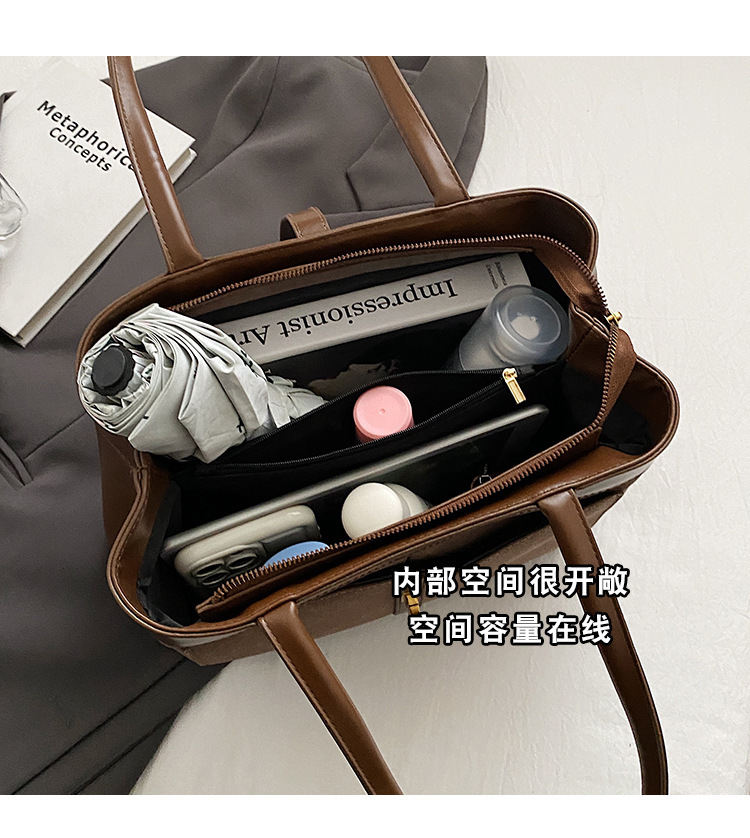 El nuevo tote de cuero de gran capacidad es retro y yangqi para viajar en todas las axilas, un bolso de hombro simple y portátil.