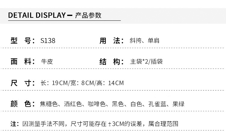 | Color | Beige, rojo vino, azul pavo real, café, negro, caramelo, verde aguacate, rojo vino, rojo vino, grande, marrón, verde, negro |