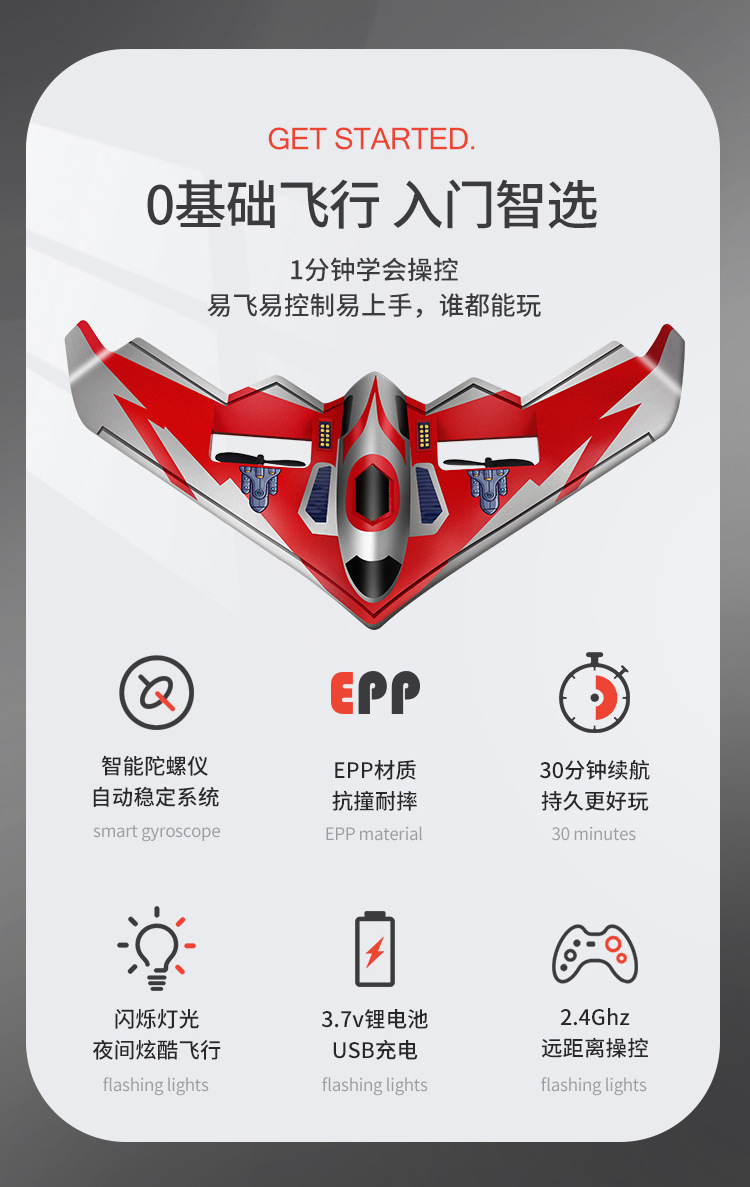 | Material de juguete | Componentes electrónicos, fuselaje de espuma, electromagnetismo interno |