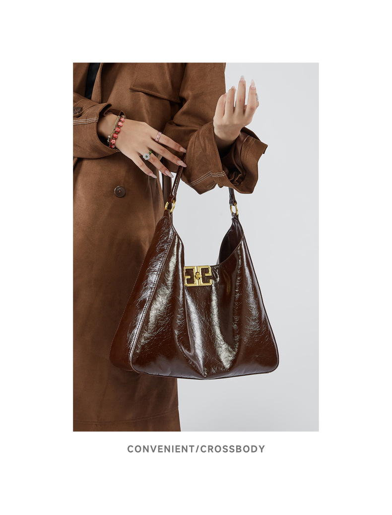 Bolso de hombro, piel blanda, retro, textura sólida, bolso casual, bolso de hombro de gran capacidad, temperamento y bolso de viaje.