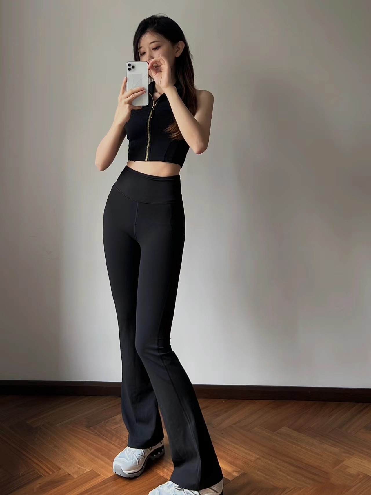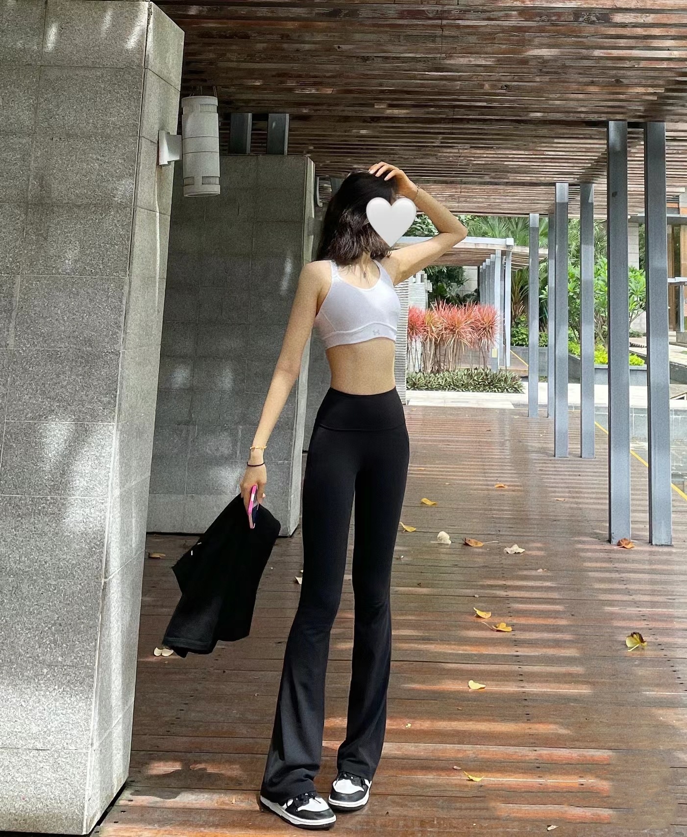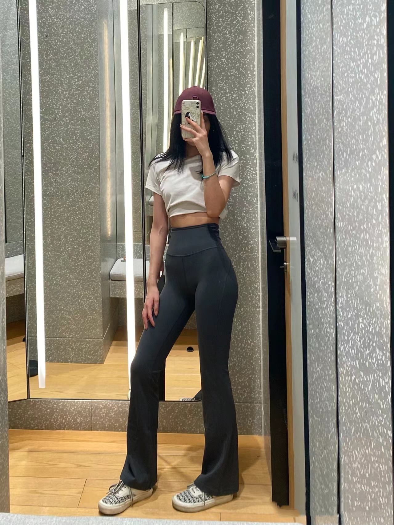 Alta calidad lulu mismo Groove piel desnuda, alta elasticidad ajustada pantalones de campana de cintura alta