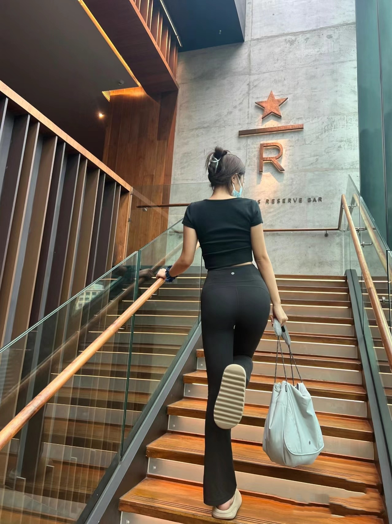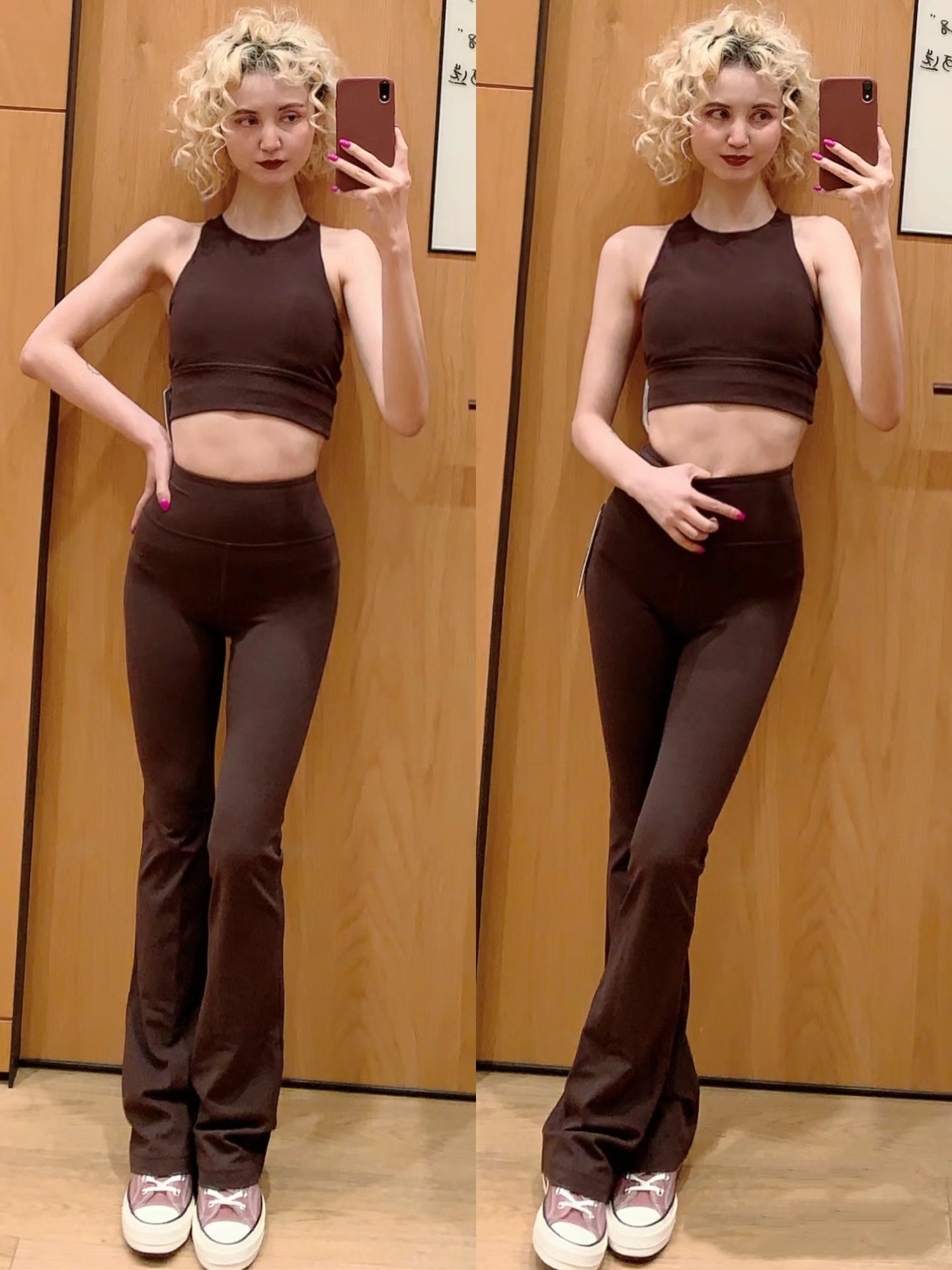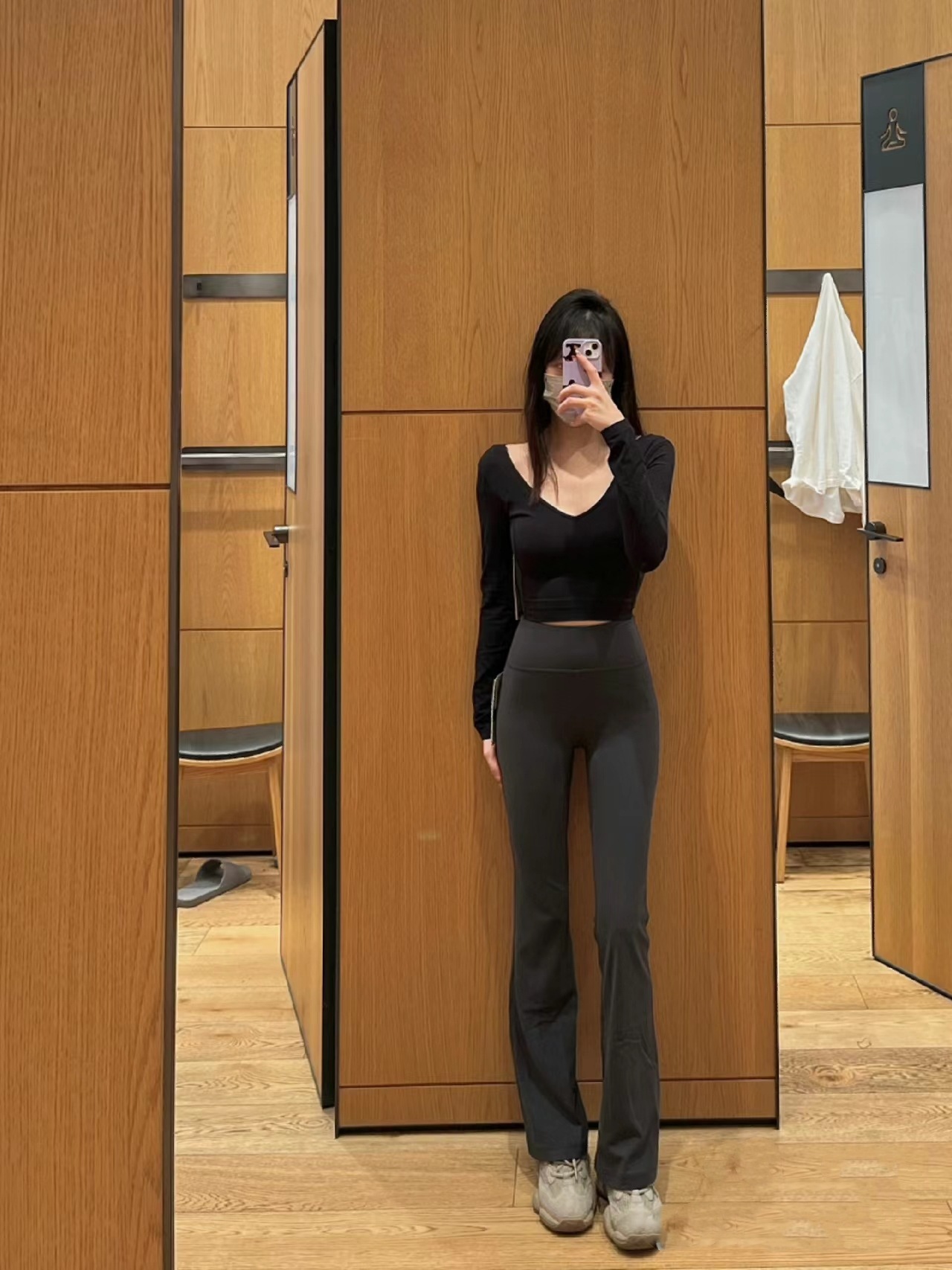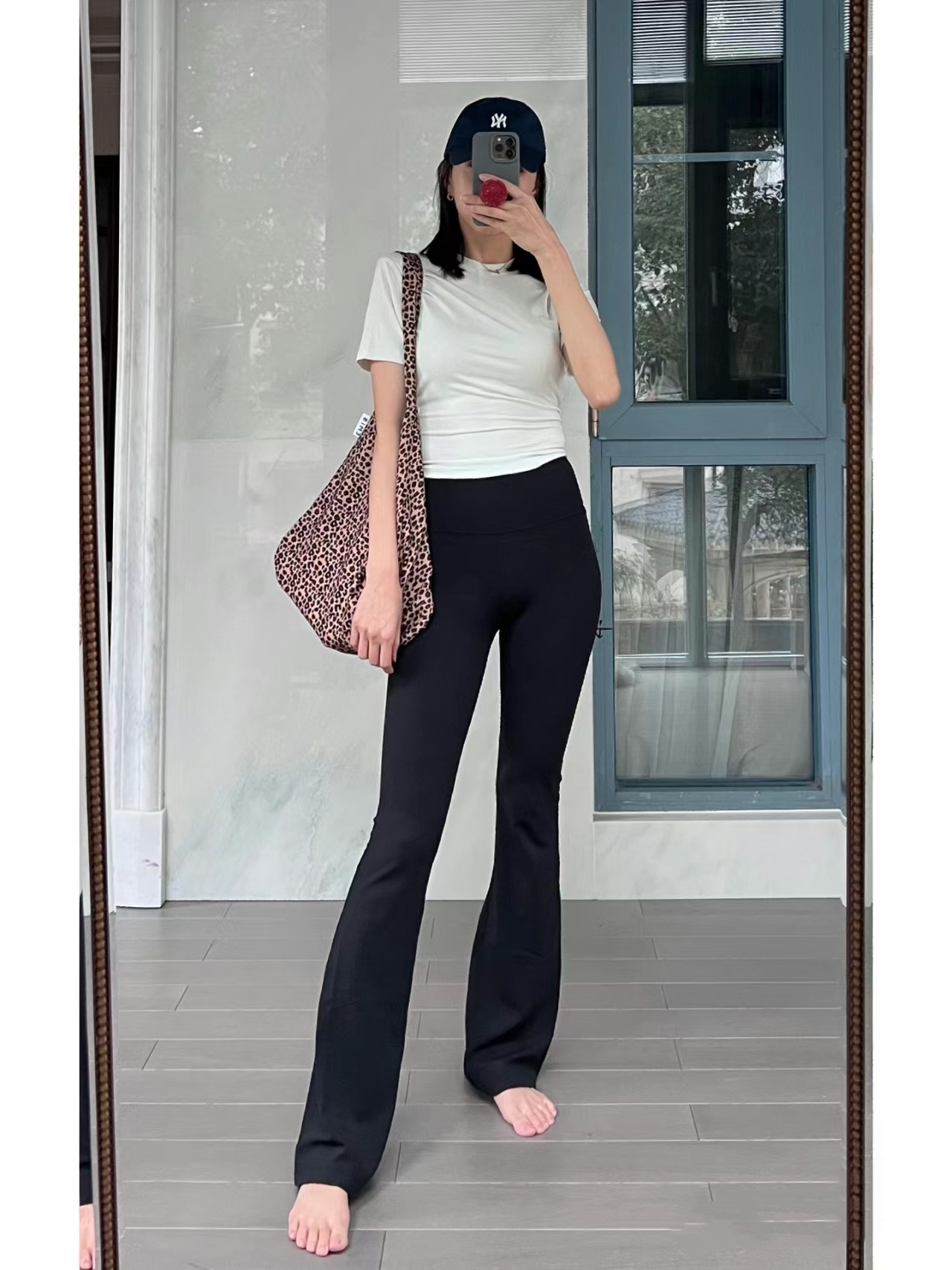 Alta calidad lulu mismo Groove piel desnuda, alta elasticidad ajustada pantalones de campana de cintura alta