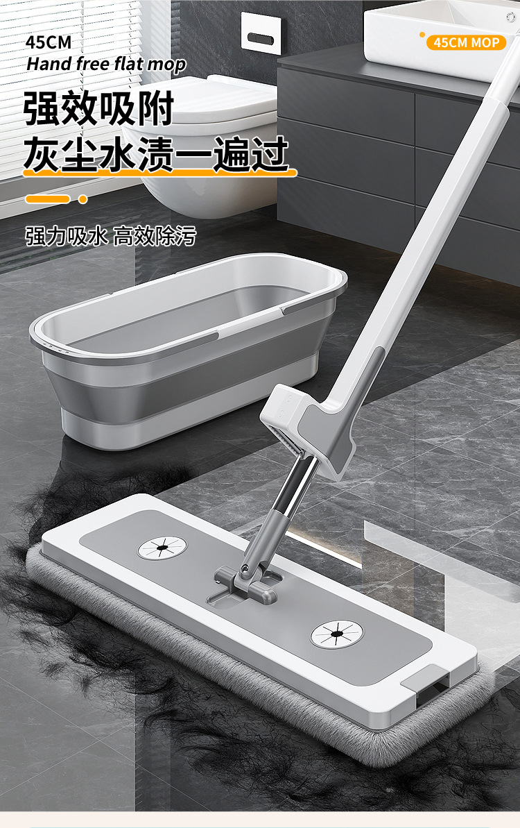 | Especificaciones | Trapeador gris blanco de 45cm [2 piezas de tela], trapeador gris blanco de 45cm [4 piezas de tela], trapeador gris blanco de 45cm [6 piezas de tela], trapeador gris blanco de 45cm [6 piezas de tela] + cubo plegable |