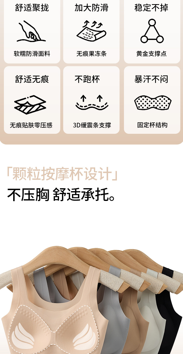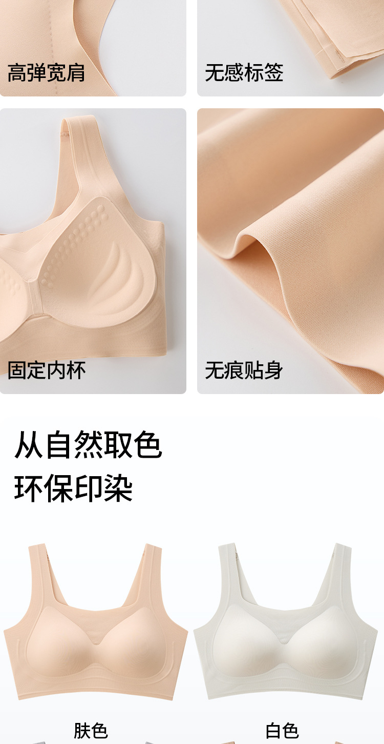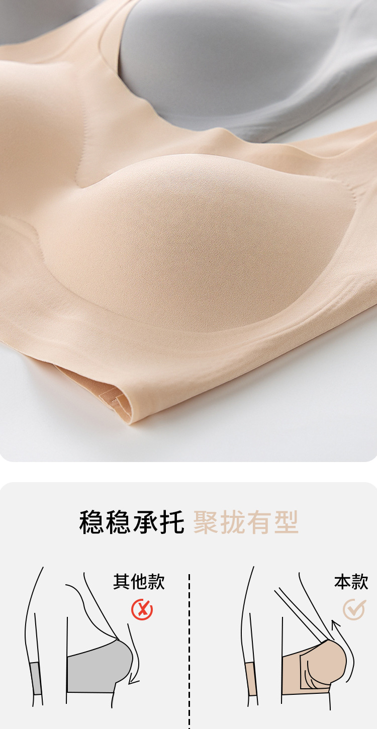 | Función | Masaje, aglomeración, sin marcas, transpirabilidad, soporte superior, invisibilidad, belleza de la espalda, absorción de sudor, protección contra la luz diurna, comodidad, retracción lateral, recogida de leche no esencial, pecho grande y pequeño |