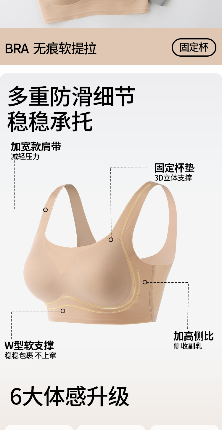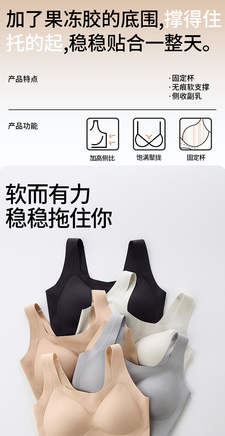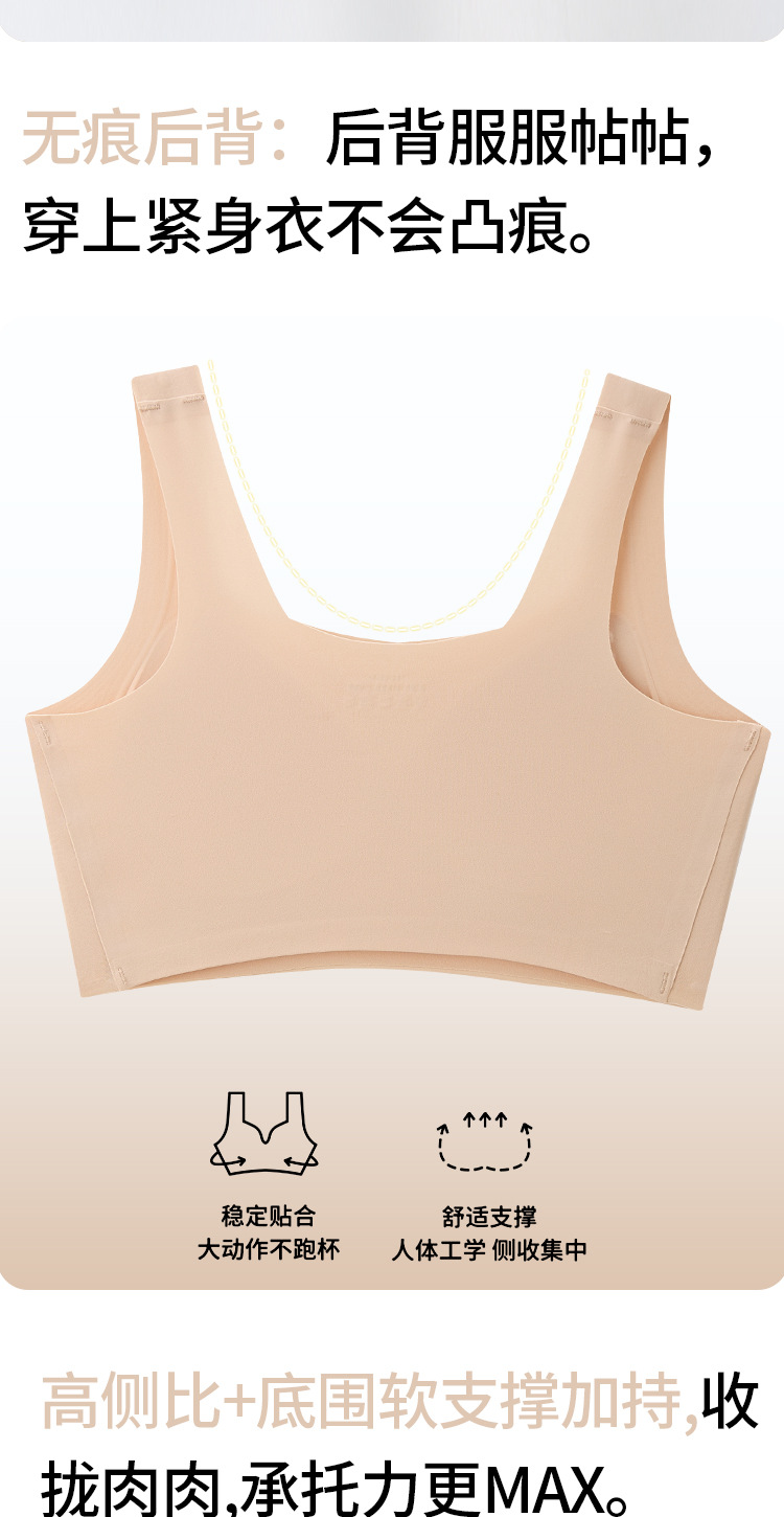 | Función | Masaje, aglomeración, sin marcas, transpirabilidad, soporte superior, invisibilidad, belleza de la espalda, absorción de sudor, protección contra la luz diurna, comodidad, retracción lateral, recogida de leche no esencial, pecho grande y pequeño |