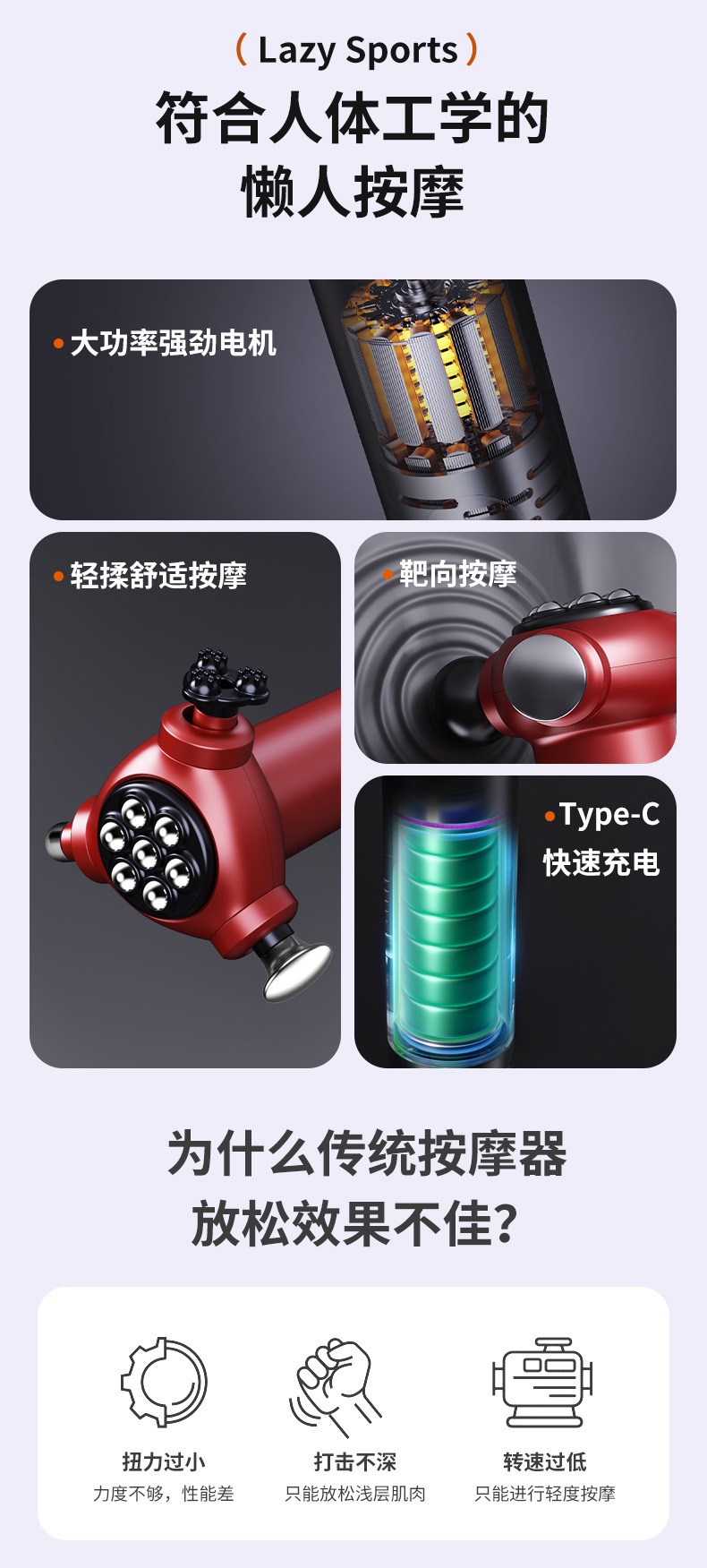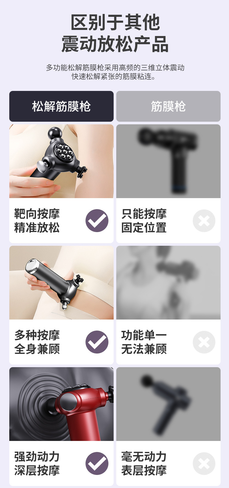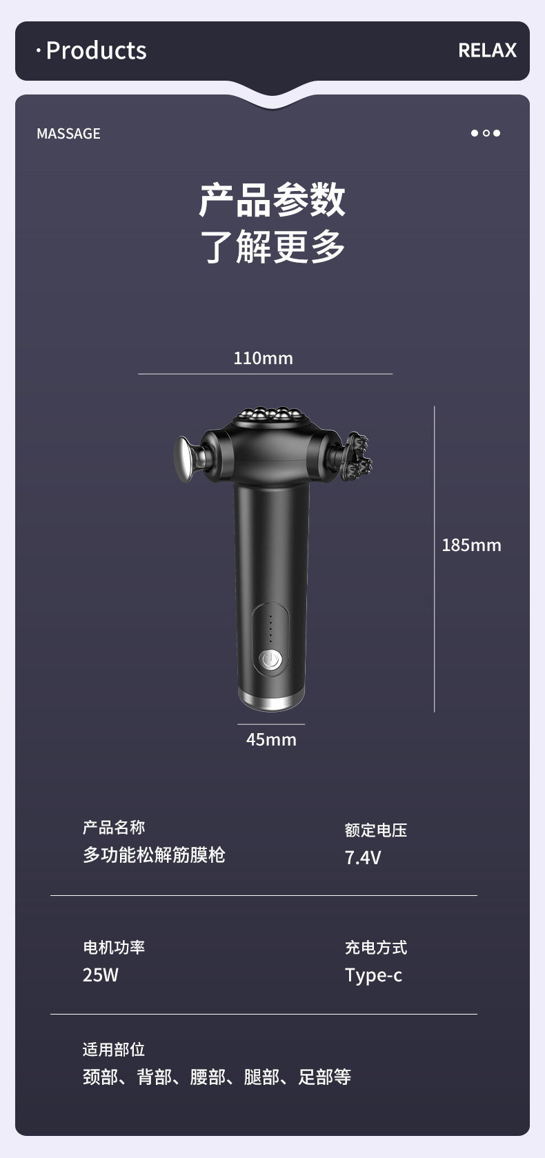 Tres terminales eléctricas de alta frecuencia desatan la pistola Fascia de la pistola multifuncional, relajan el masajeador de la pistola, relajan el masaje y hacen ejercicio.