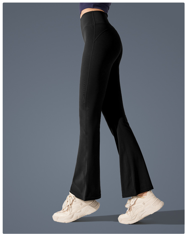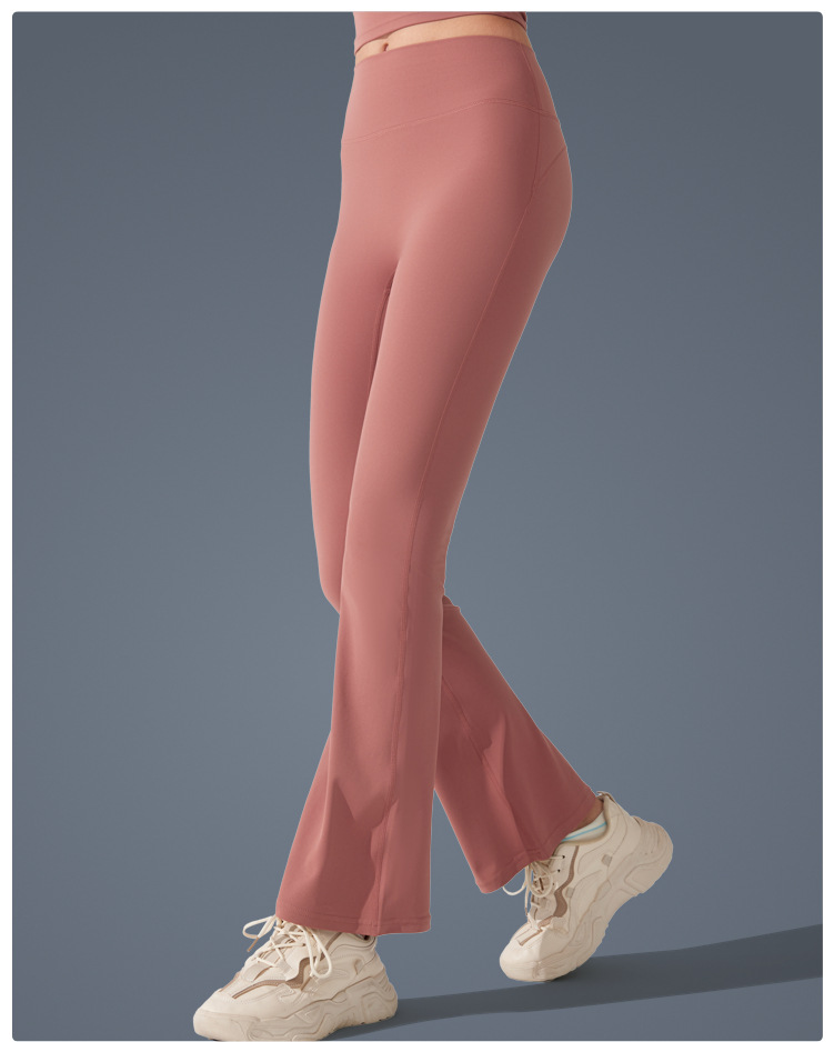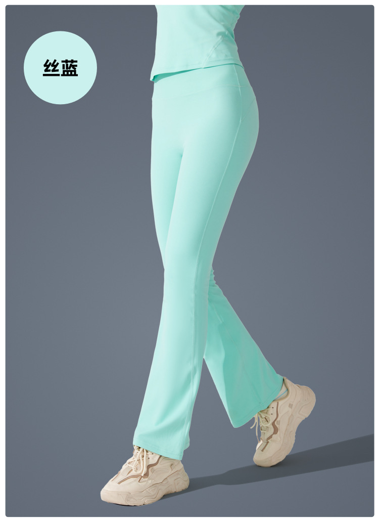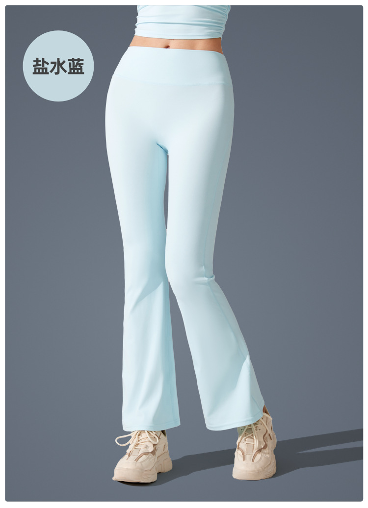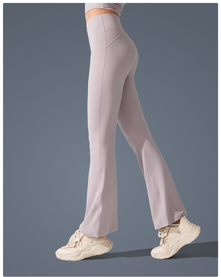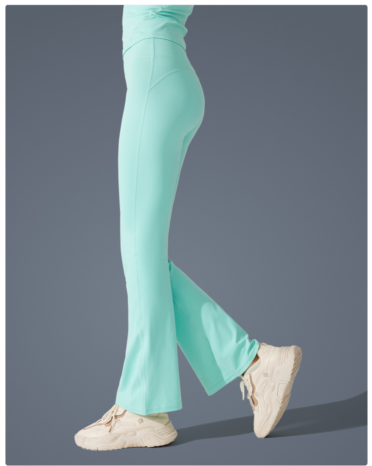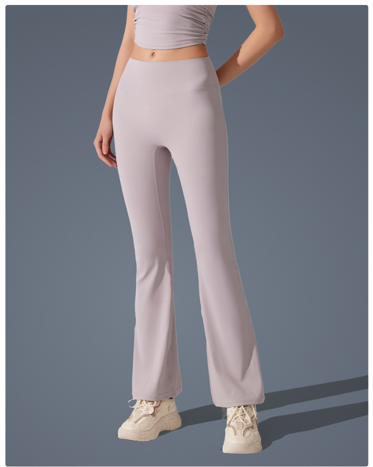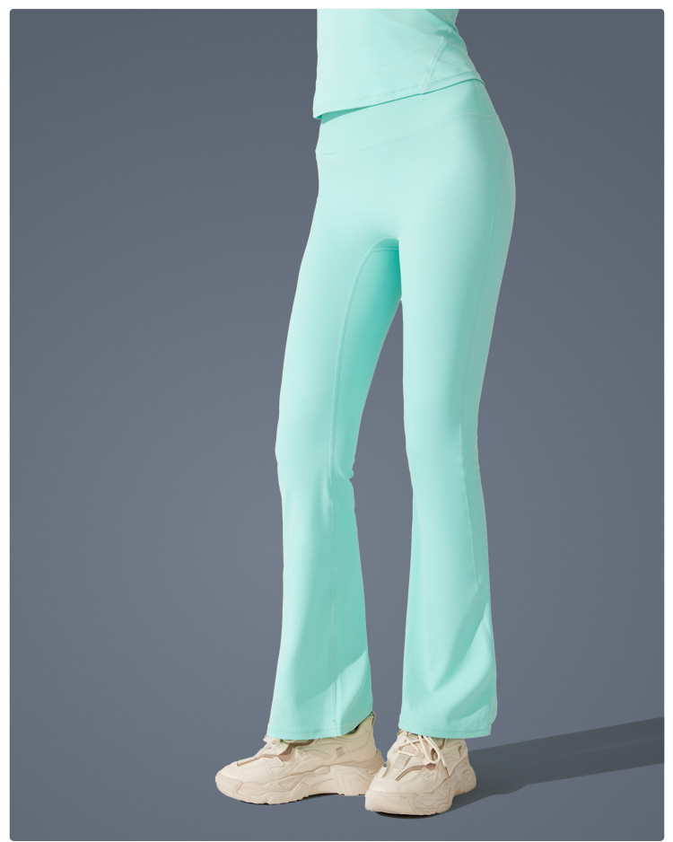 Pantalones de trompeta antibacterianos de sensación desnuda en Europa y los Estados Unidos nuevos estilos deportivos pantalones de yoga casuales muestran pantalones de fitness de cintura alta de plástico delgado