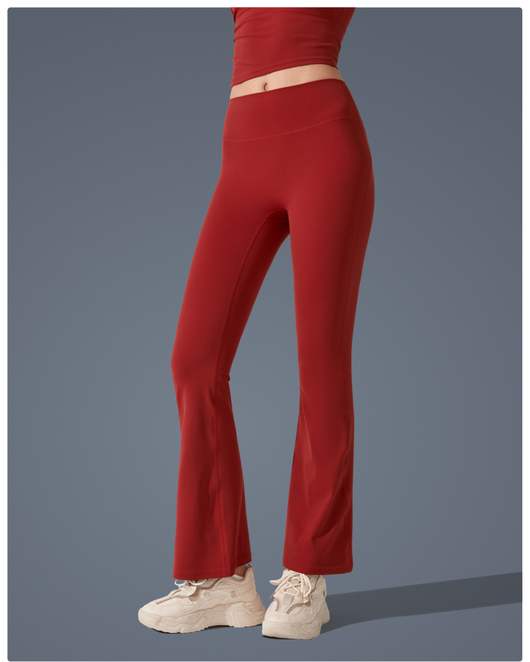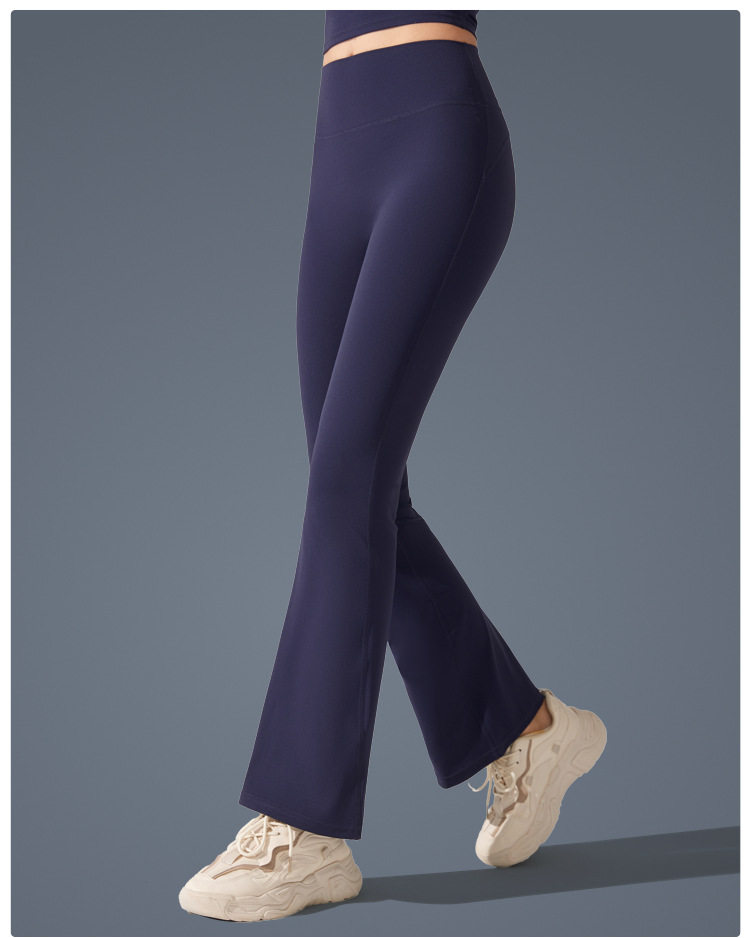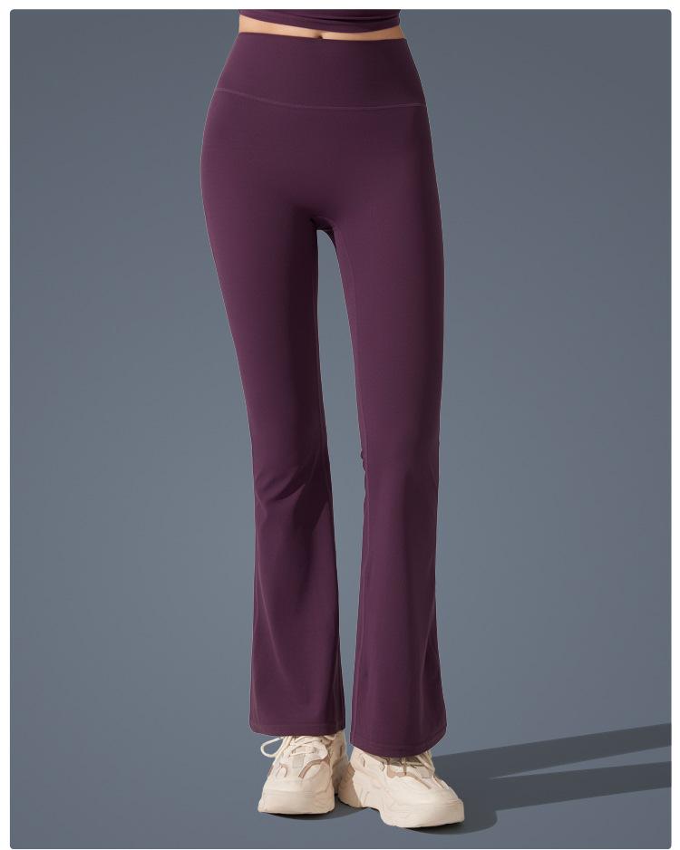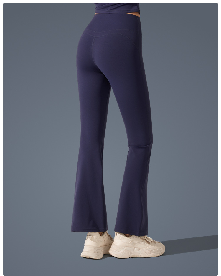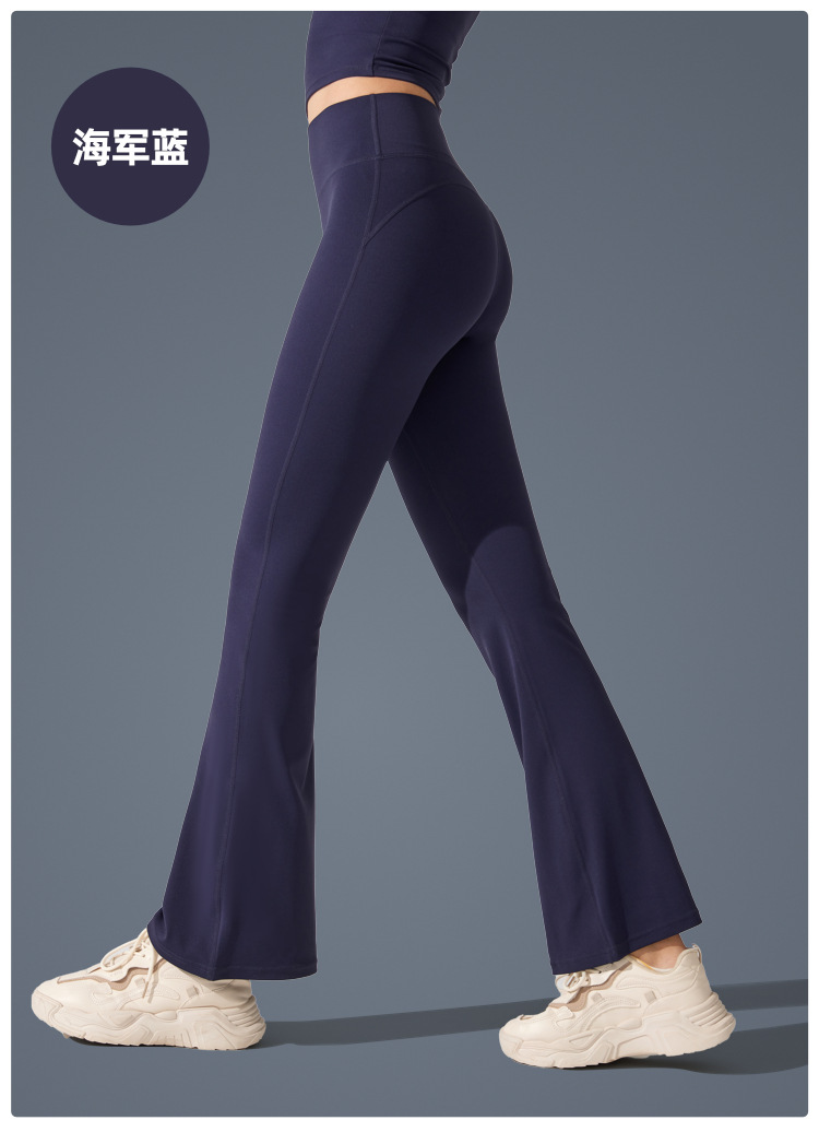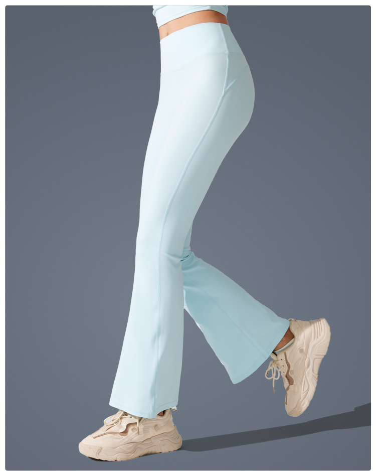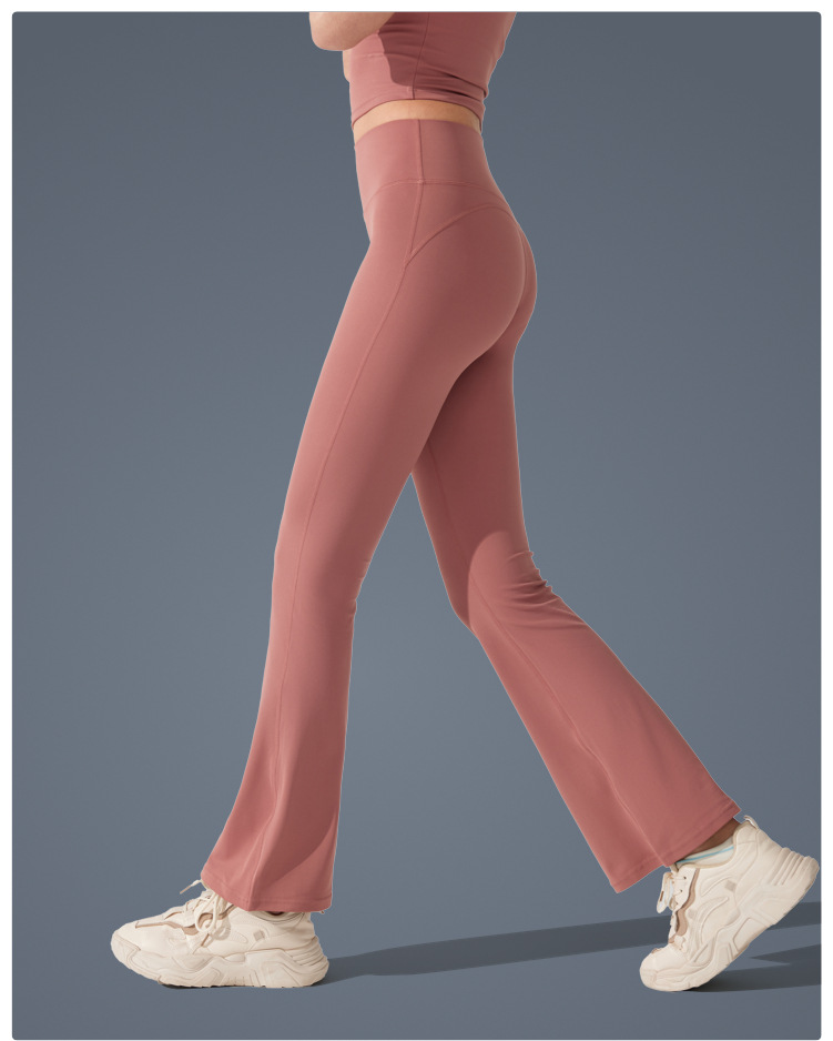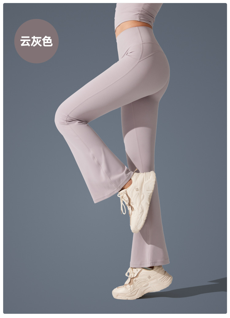 Pantalones de trompeta antibacterianos de sensación desnuda en Europa y los Estados Unidos nuevos estilos deportivos pantalones de yoga casuales muestran pantalones de fitness de cintura alta de plástico delgado