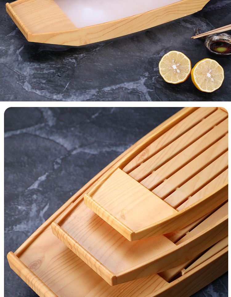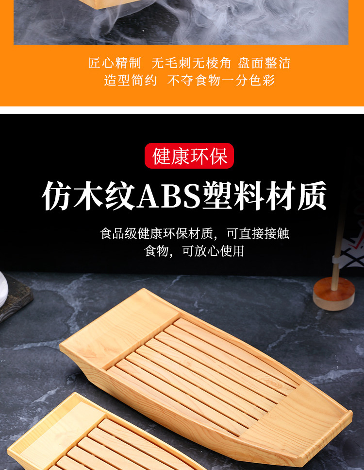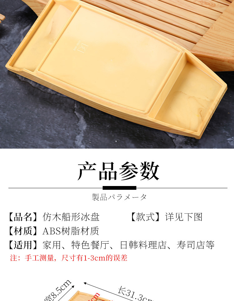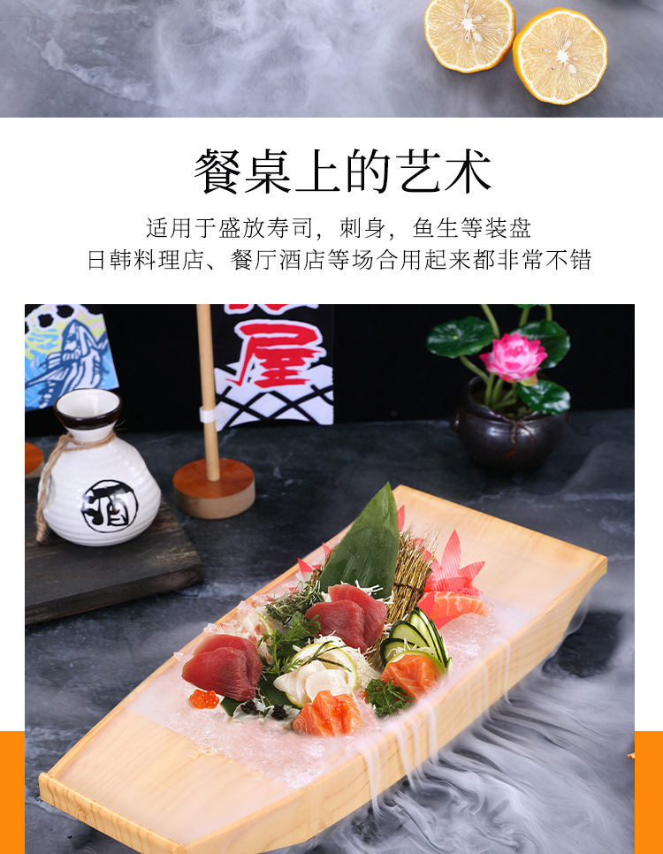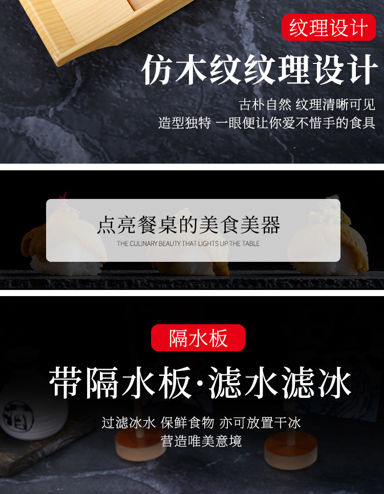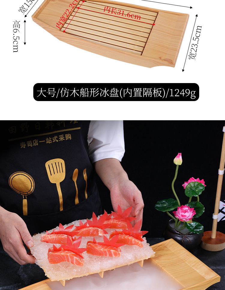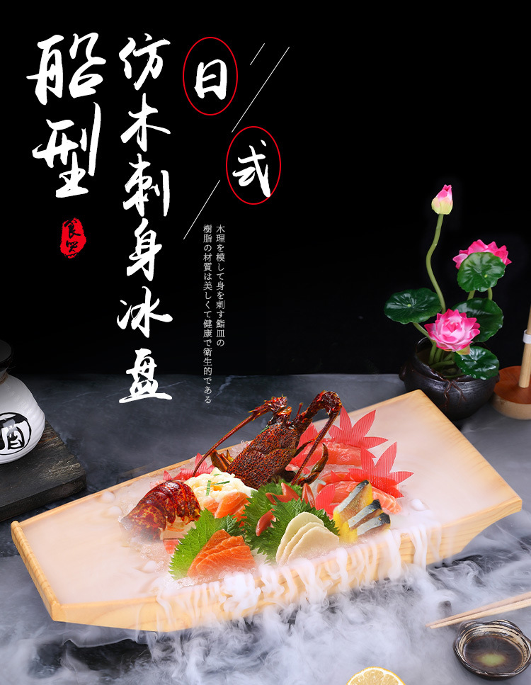 Plato de sashimi, plato de melamina, plato de pescado crudo, plato de hielo, salmón japonés, marisco, plato de sushi, barco de hielo seco shengtai