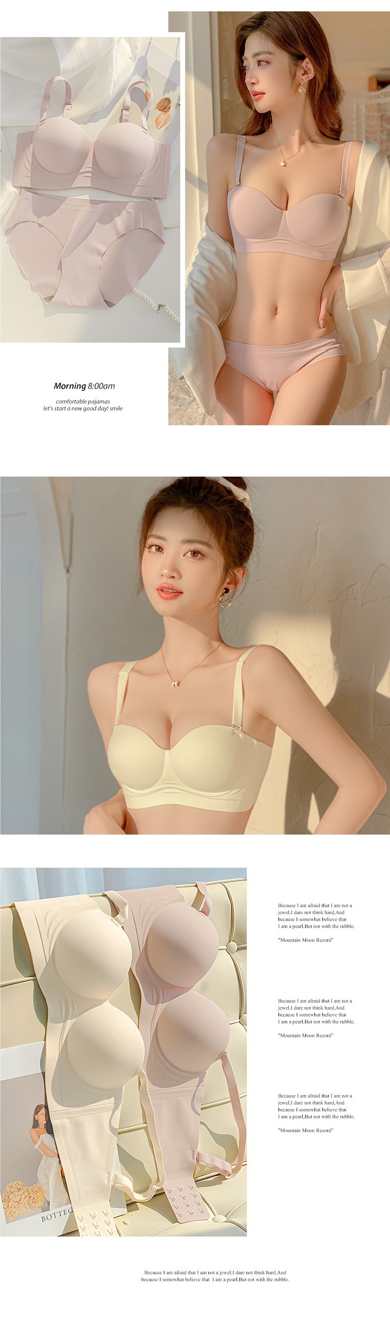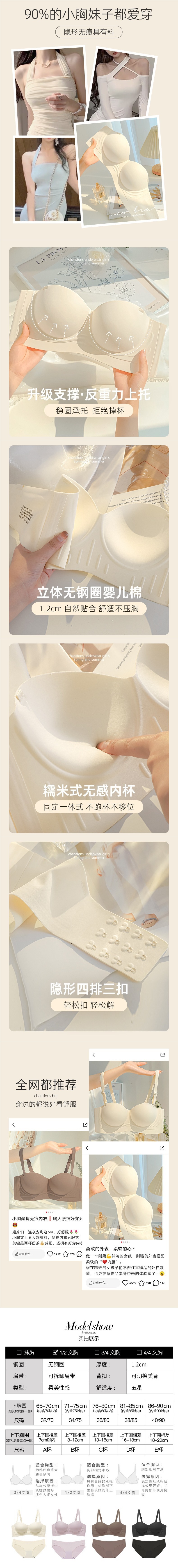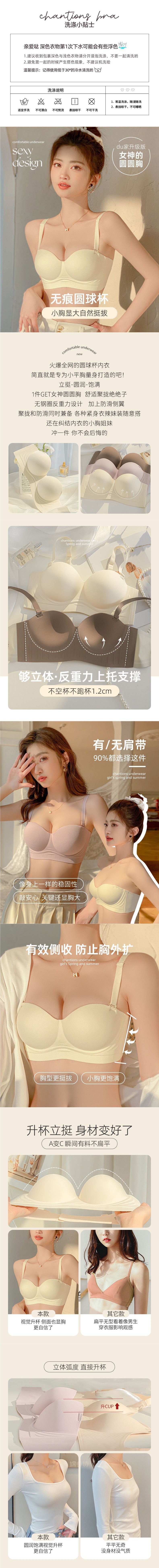 | Función | Cohesión, sin marcas, transpirable, soporte superior, invisible, sin fisuras, espalda bonita, absorción de sudor, tipo de ajuste, espalda expuesta, lateral, recogida de leche, pecho grande y pequeño |