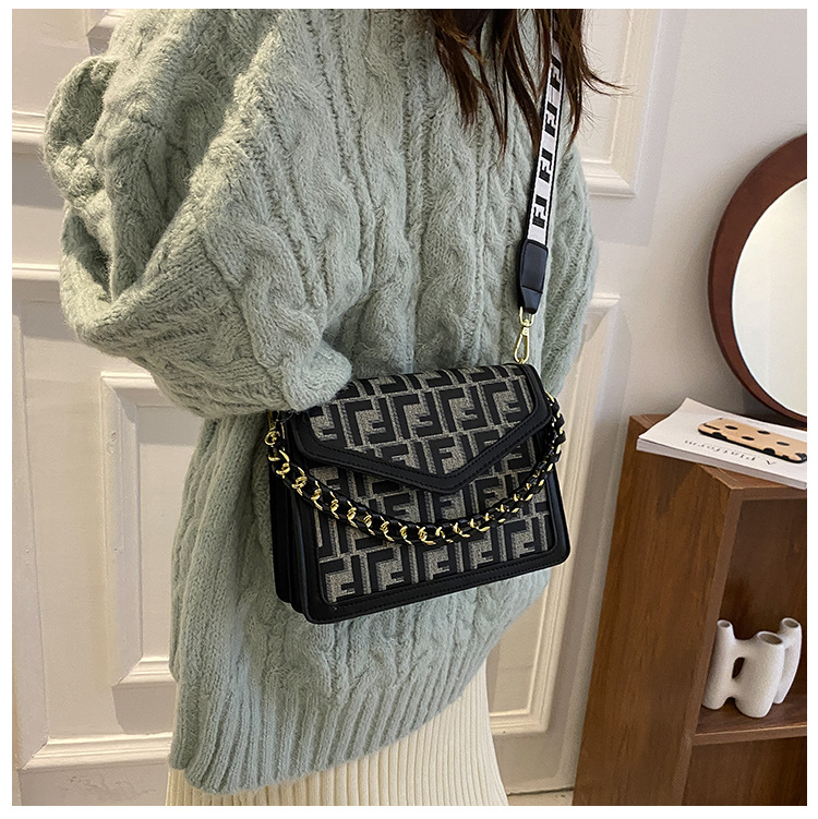 Bolso de mujer 2024 nuevo estilo de moda con estampado de letras, bolso de hombro inclinado, alta textura, estilo extranjero y pequeño lote de paquetes cuadrados