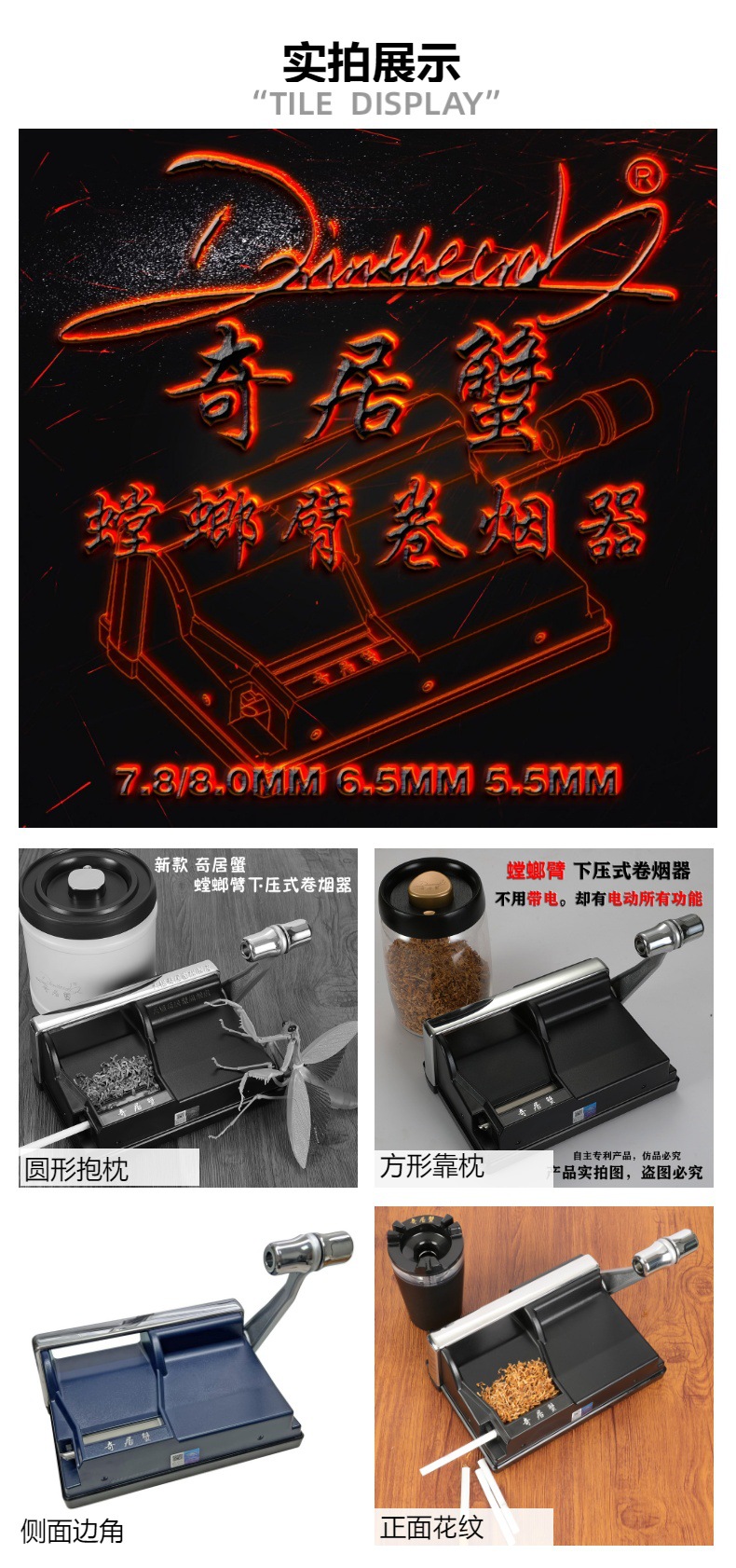 | Color | Máquina de cigarrillos de brazo Mantis negra, máquina de cigarrillos de brazo Mantis azul oscuro |
