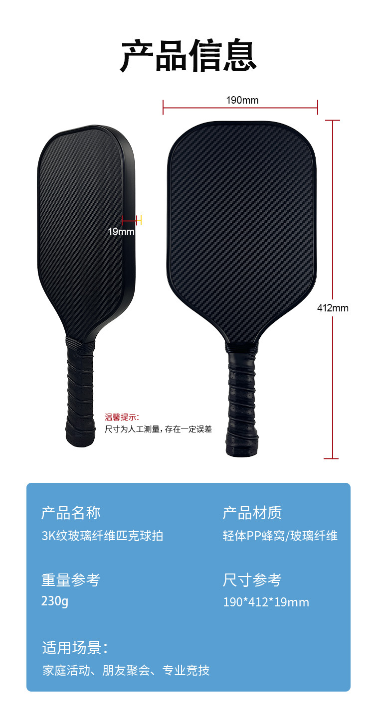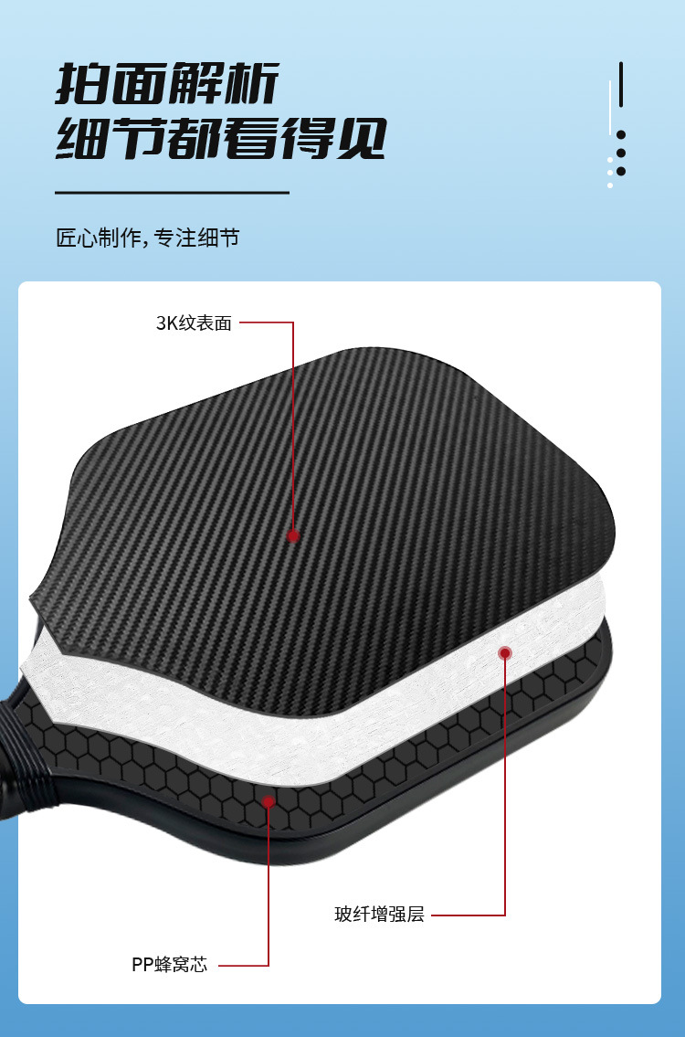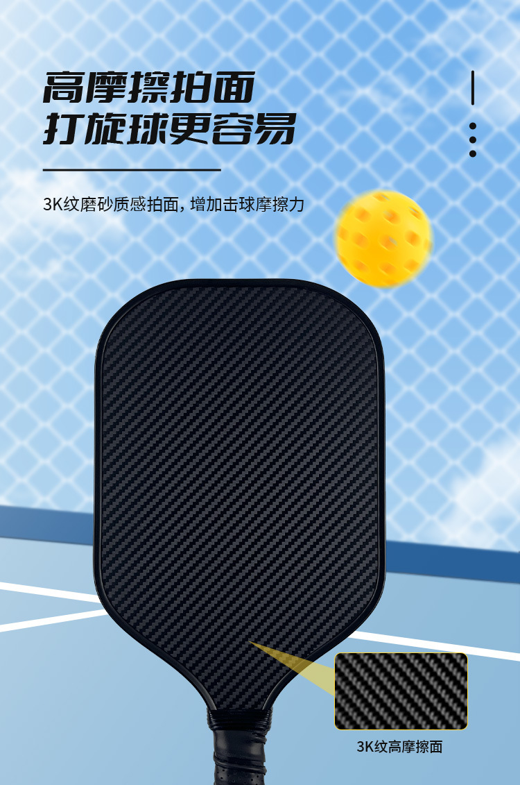 Traje de raqueta de pico de fibra de vidrio 3k pickleball Honeycomb núcleo súper ligero y engrosado pickleball práctica de raqueta
