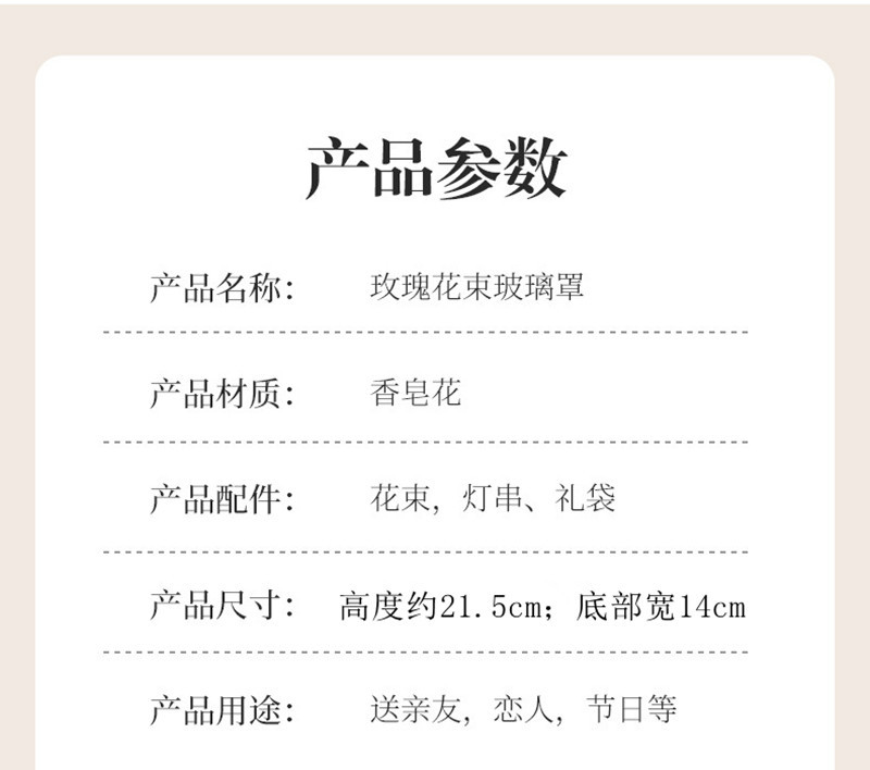 7朵玫瑰款;玻璃罩尺寸: 9*20CM