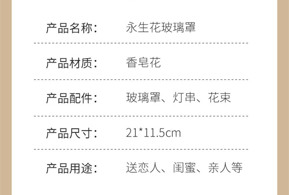 | Material | Flores secas, flores de jabón, flores eternas |
