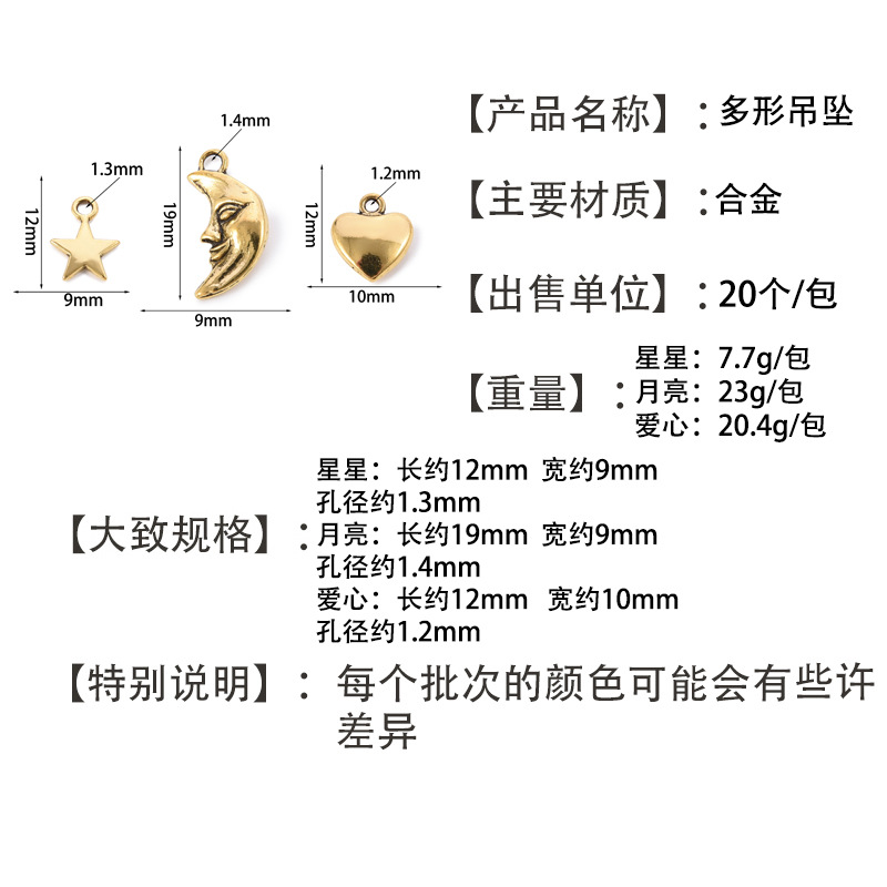 | Colores | Estrellas doradas,Estrellas de plata,Amor dorado,Amor plateado,Luna dorada,Luna de plata |