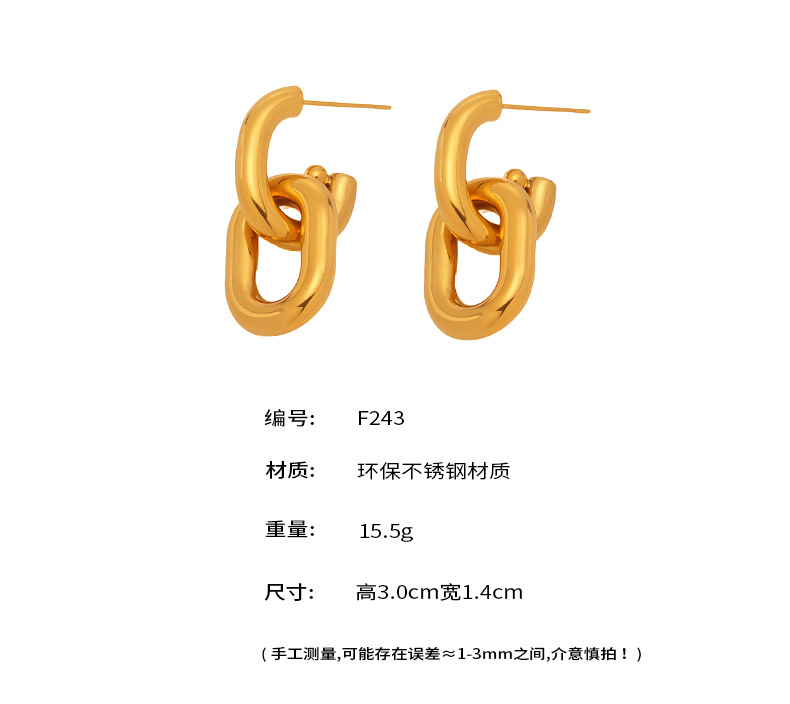 | Colores | F243-Pendientes geométricos en forma de U doble hueco dorado,Pendientes geométricos en forma de U dobles huecos de oro F243,F243-Pendientes geométricos en forma de U dobles huecos de acero |