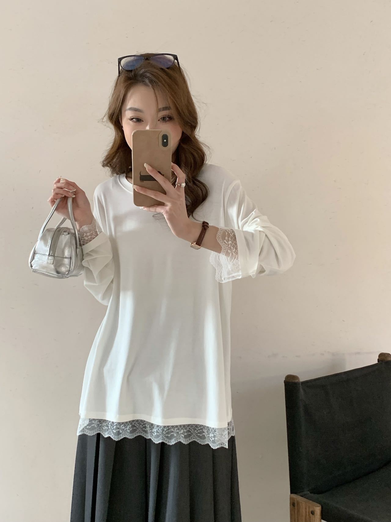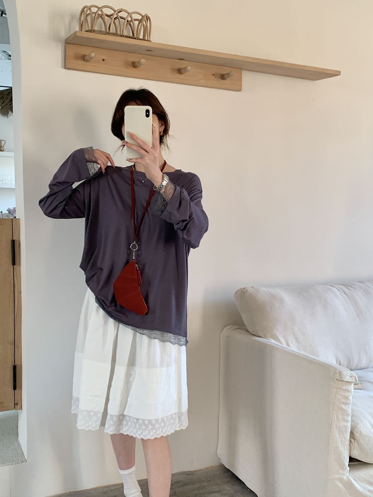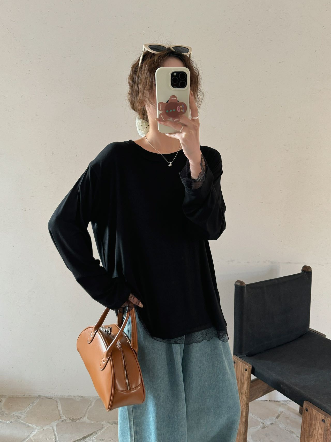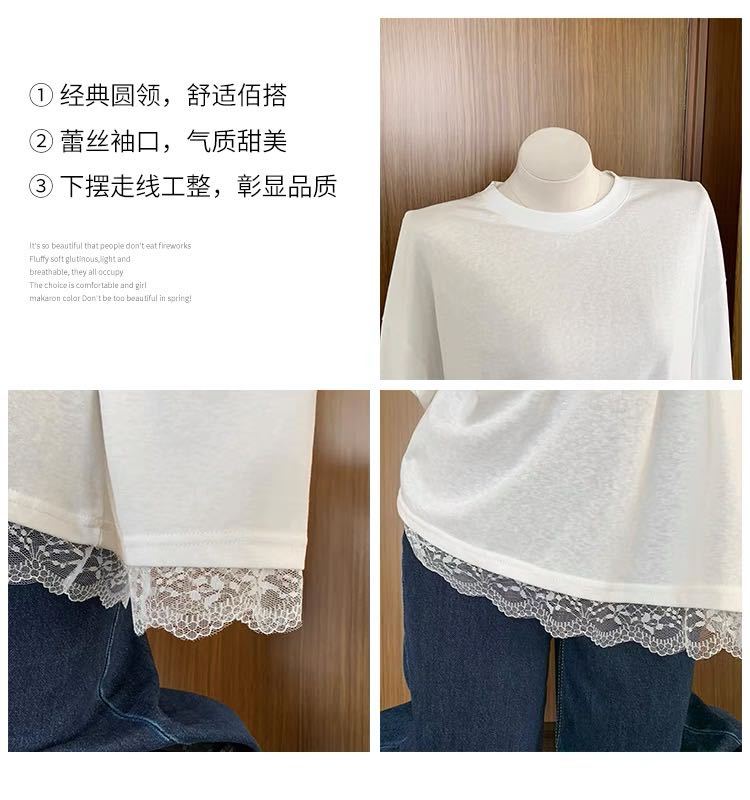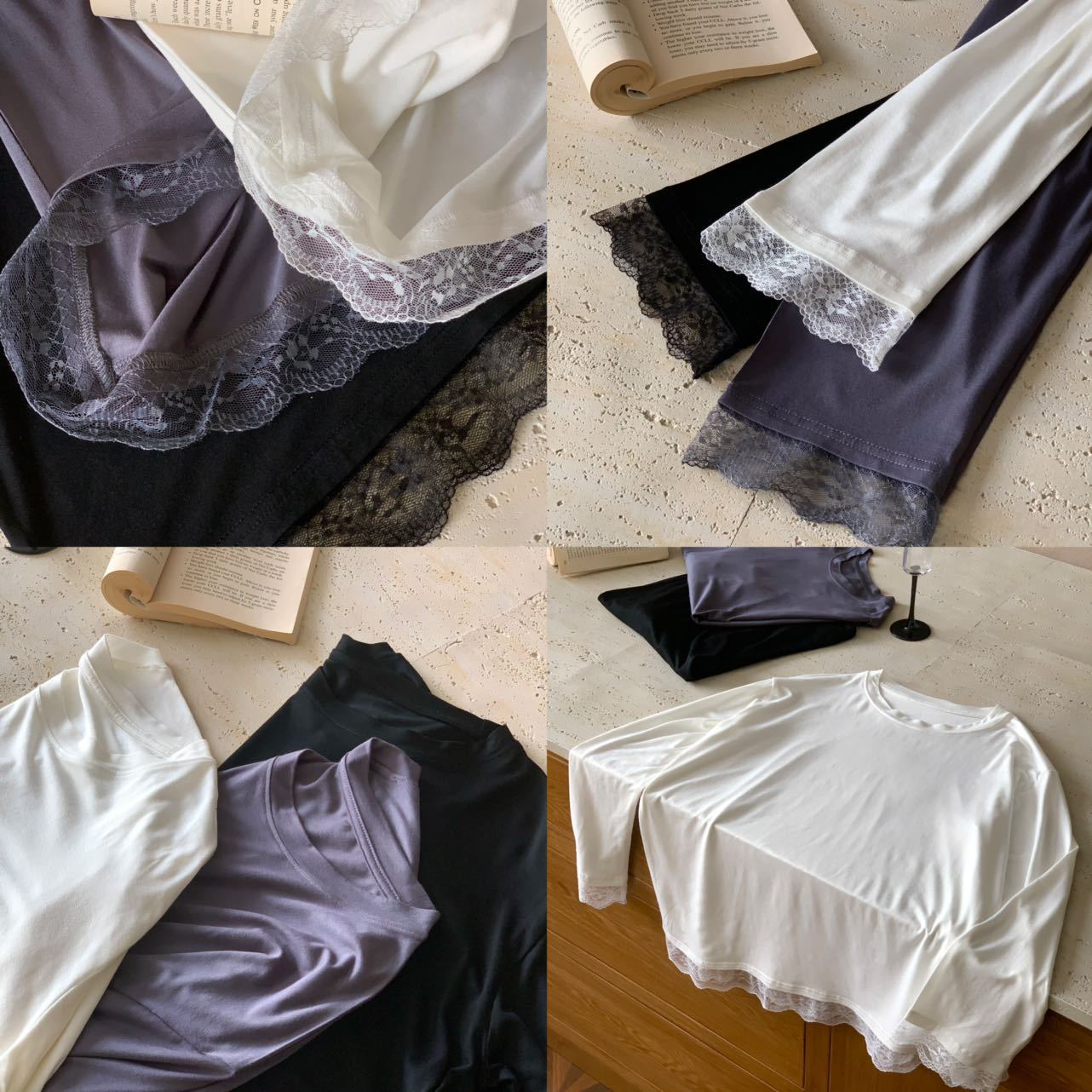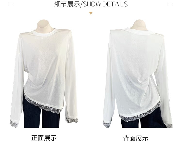 Diseño de la camisa de fondo con costuras de encaje de todo fósforo 2024 otoño e invierno nuevo estilo lijado adelgazante top temperamento de moda femenina