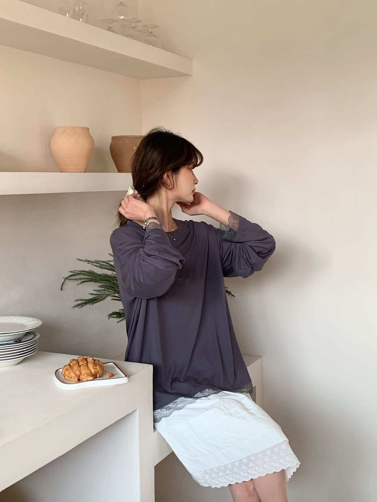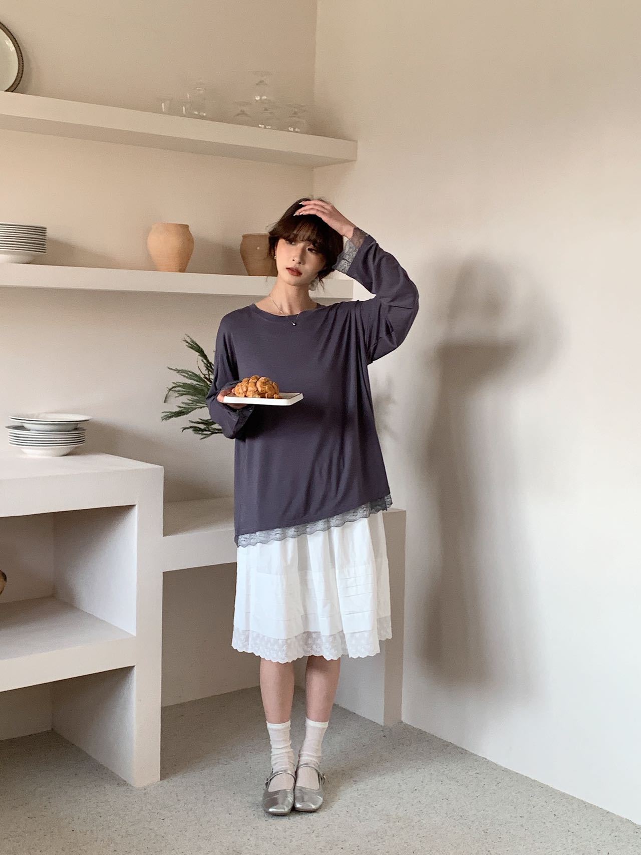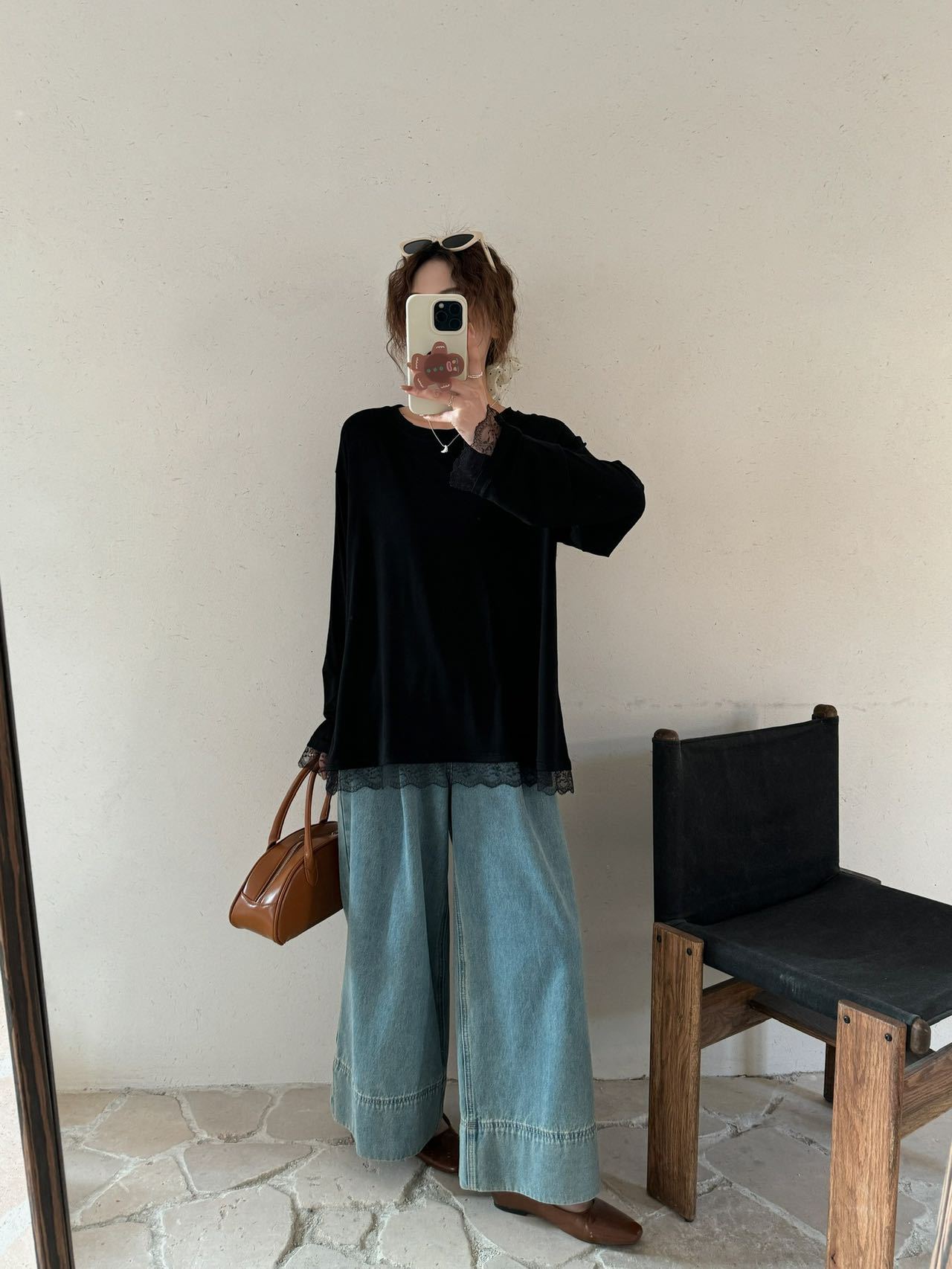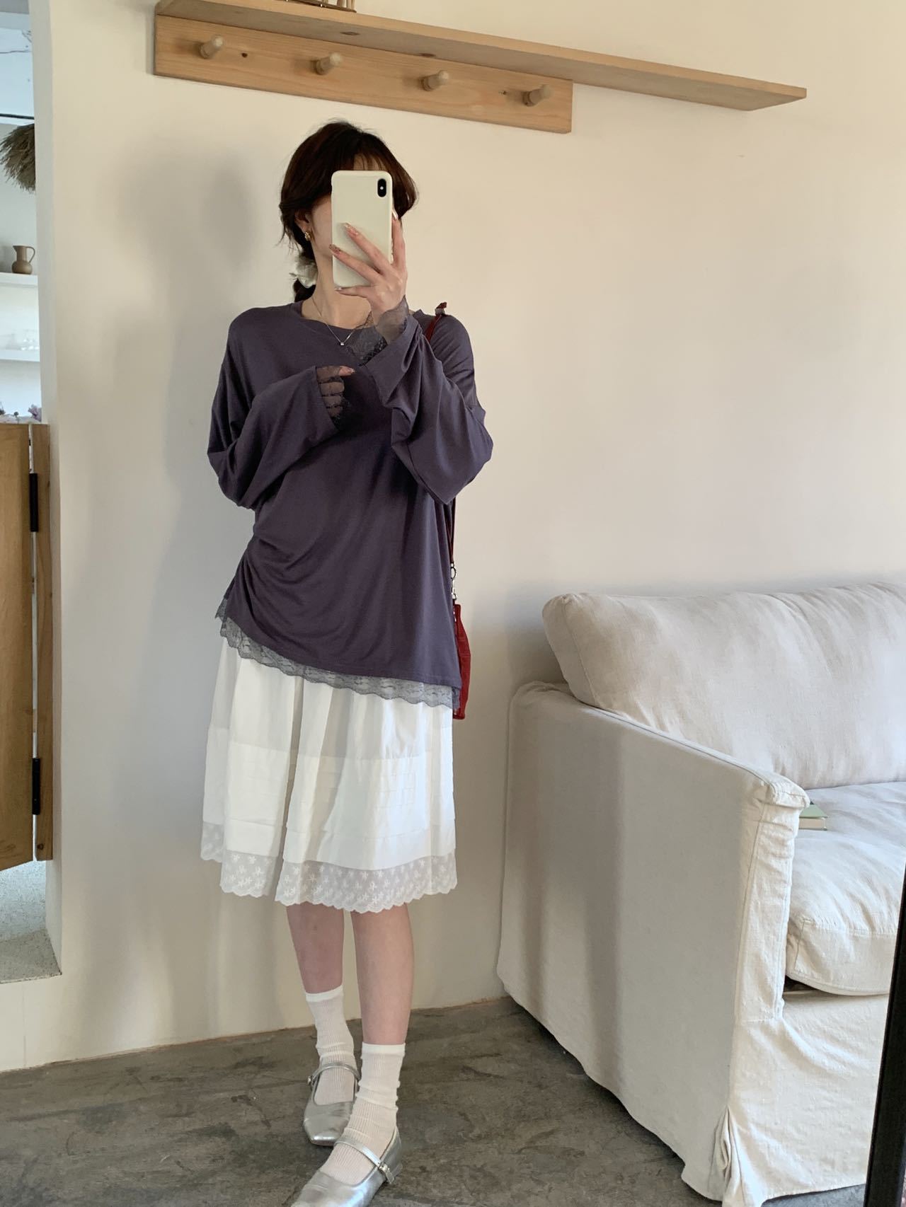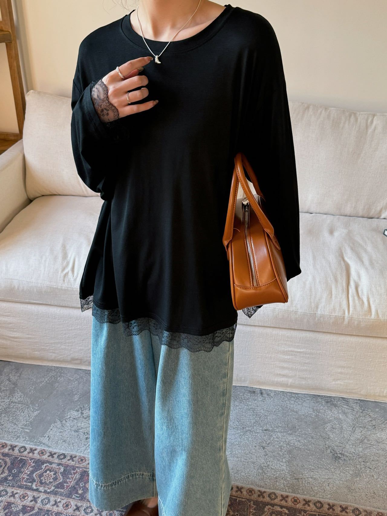 Diseño de la camisa de fondo con costuras de encaje de todo fósforo 2024 otoño e invierno nuevo estilo lijado adelgazante top temperamento de moda femenina