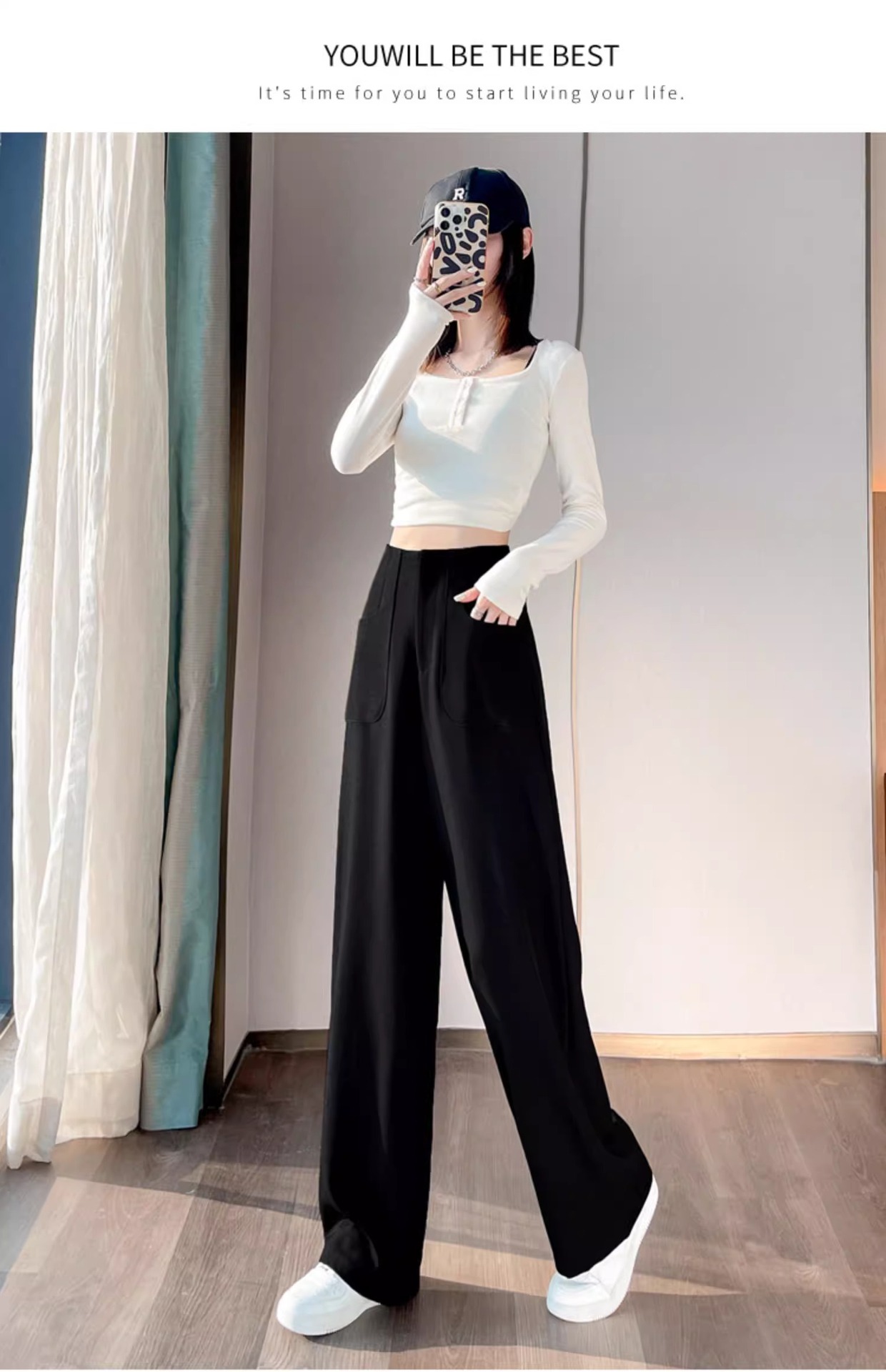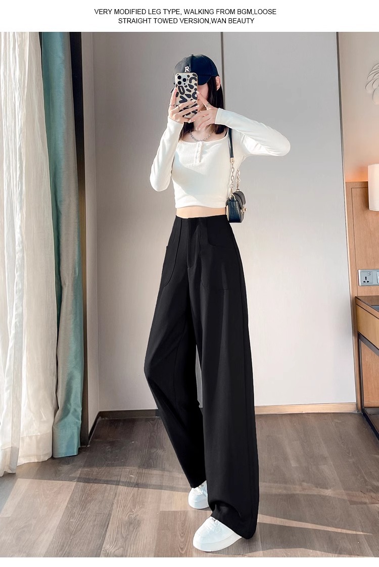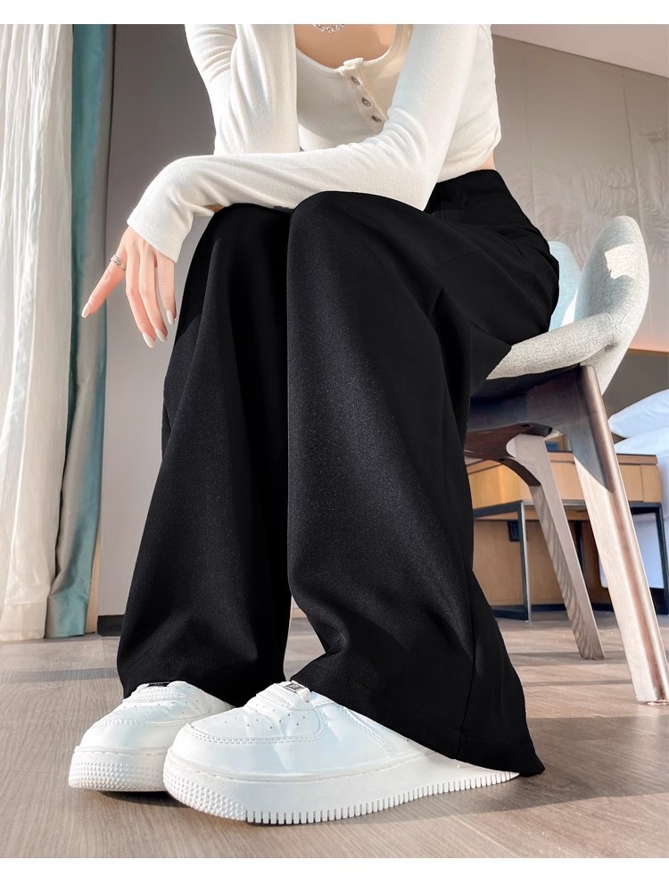 Negro alto y estrecho traje pantalones de piernas anchas para mujeres otoño nuevos pantalones casuales de cintura alta sensación de caída delgada primavera y otoño trapos