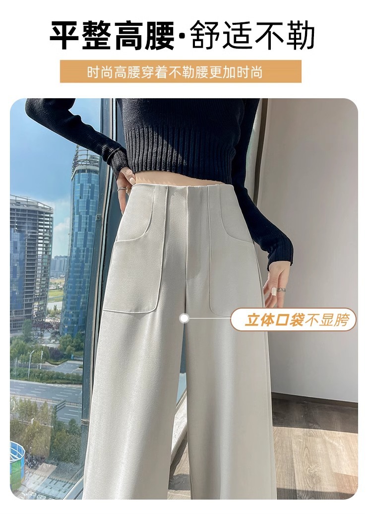 Pantalones de piernas anchas estrechas de alta sensación 2024 otoño nuevo estilo de cintura alta caída sensación de pantalones de trapazo recto pantalones largos