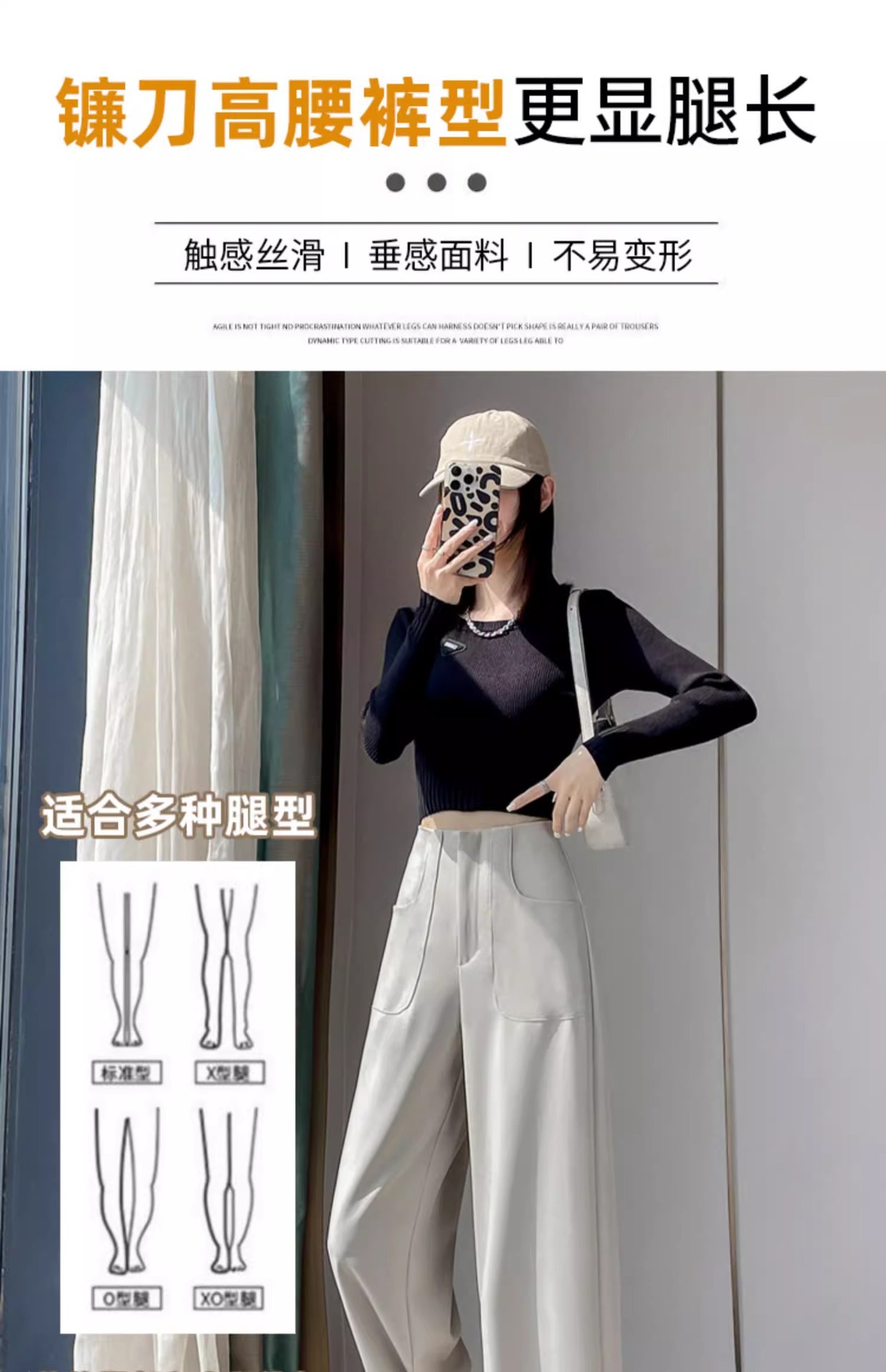 Pantalones de piernas anchas estrechas para mujeres primavera y otoño 2024 nuevo hombre pequeño cintura alta casual pantalones de traje recto de alta sensación