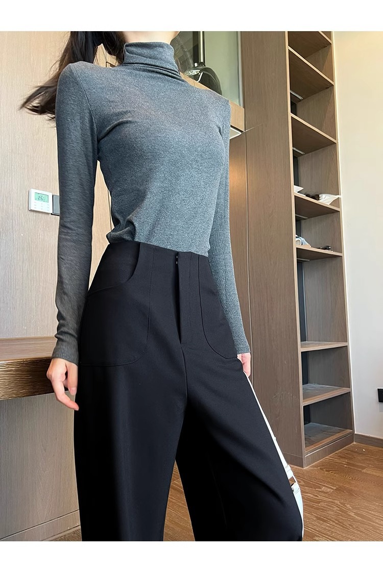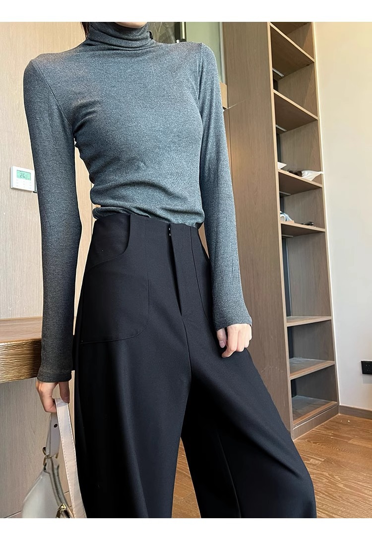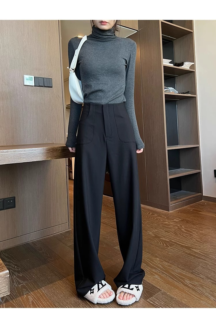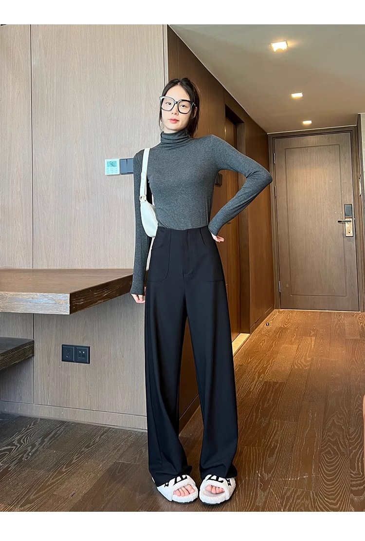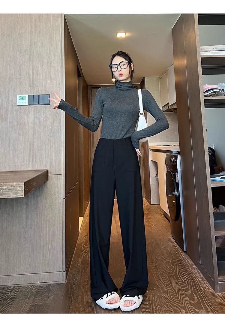 Pantalones negros de piernas anchas de mujer cintura alta sensación delgada alta sensación de pantalones de trajes casuales pantalones estrechos de primavera y otoño