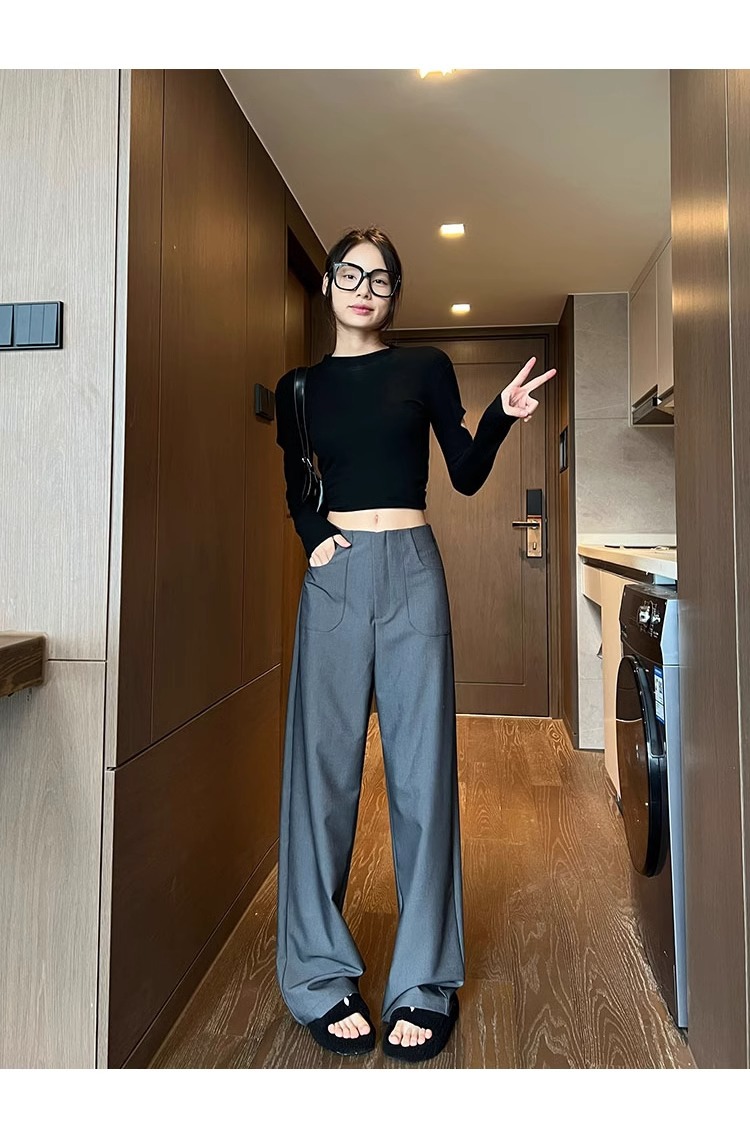Pantalones de traje gris para mujeres primavera y otoño de alta sensación de caída pantalones de piernas anchas rectos sueltos y delgados pantalones casuales de cimeta