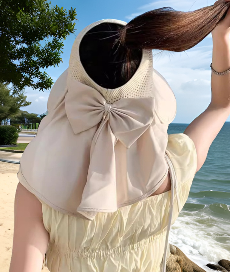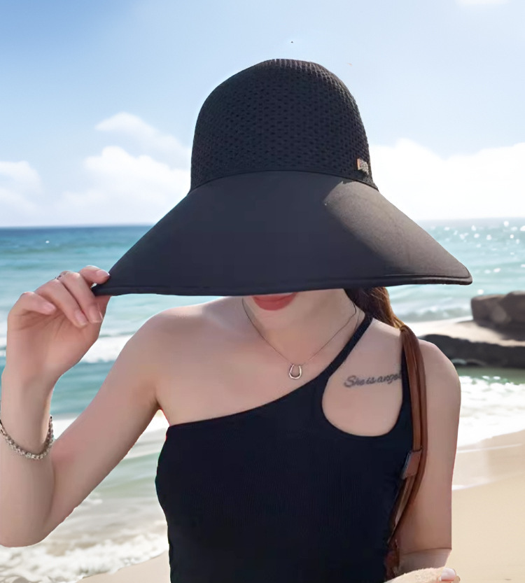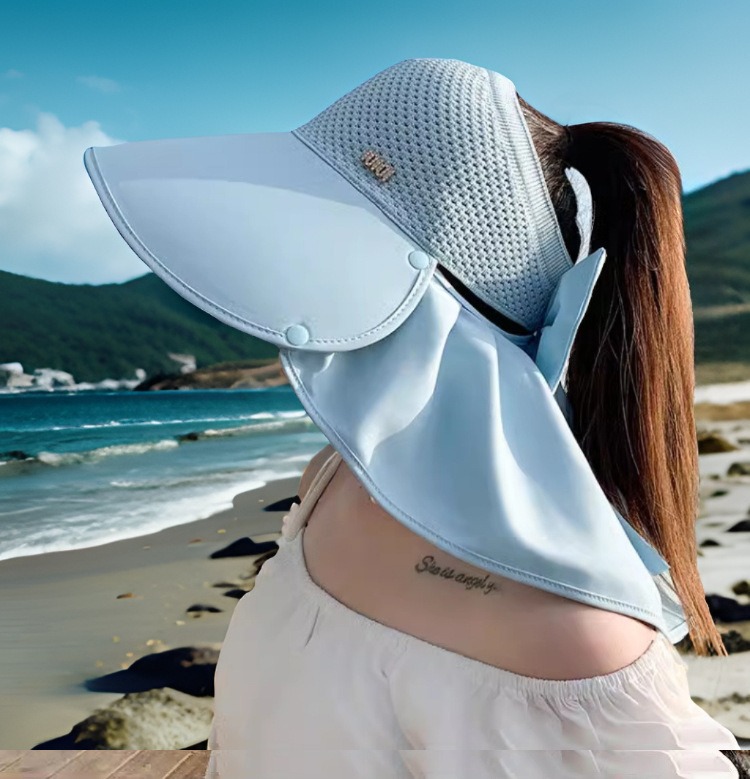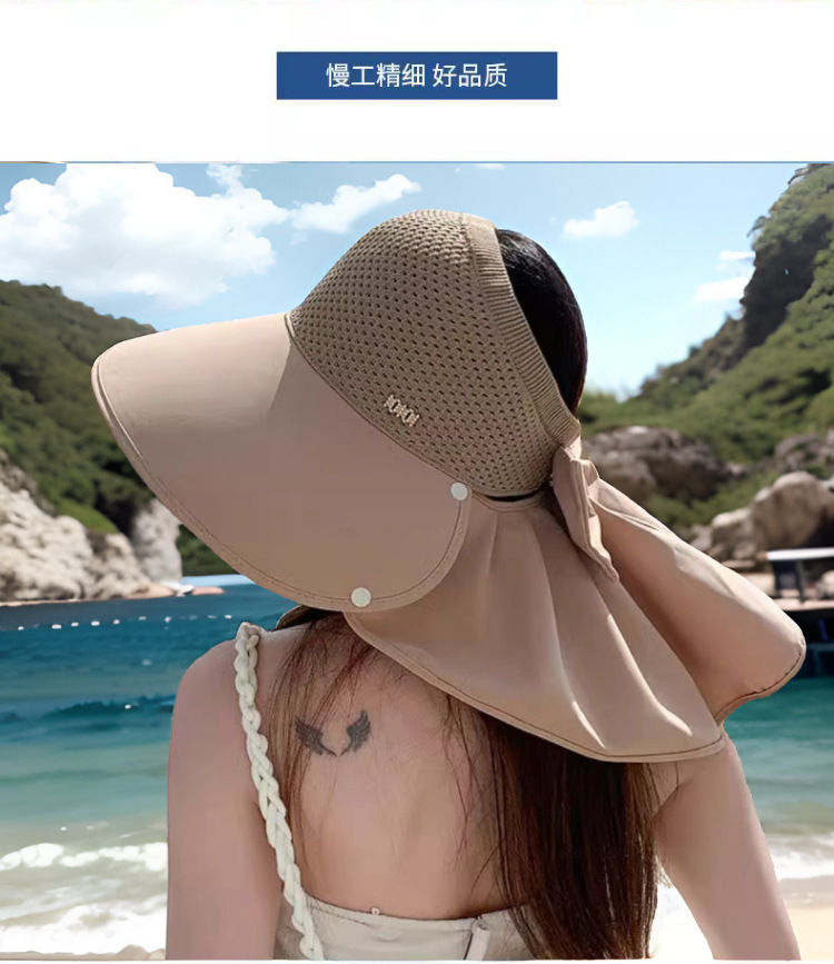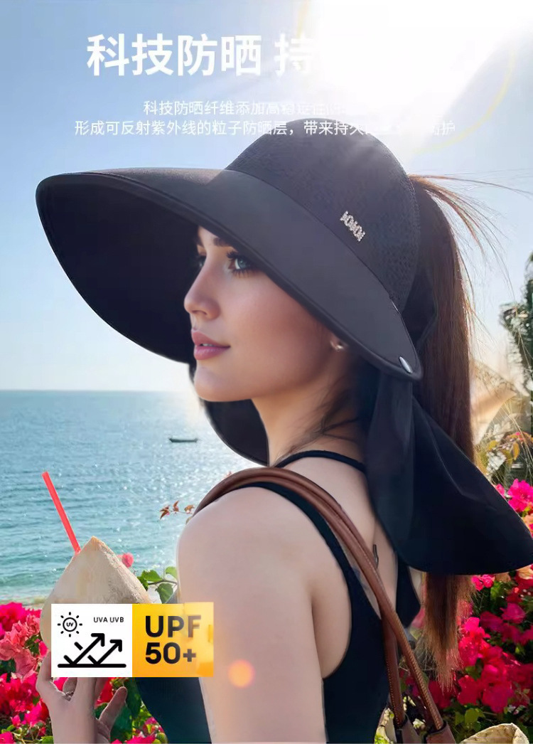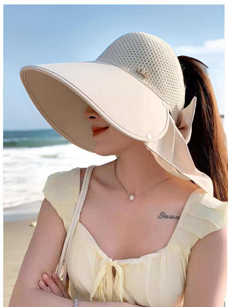 Nueva gorra de tejer super-gran gorra de protección solar de playa anti-UV sombrero de sombrero de protección solar de cuello desmontable