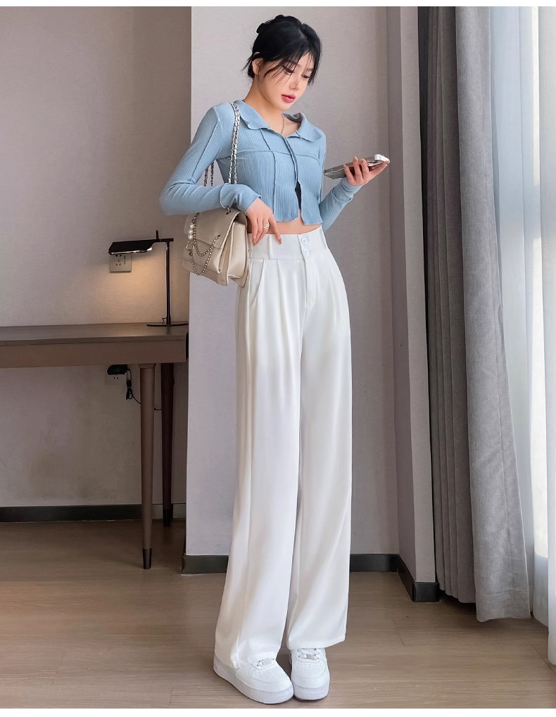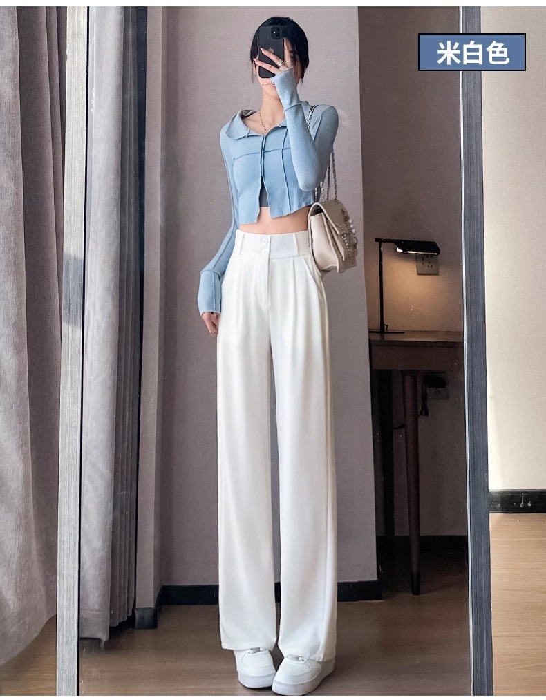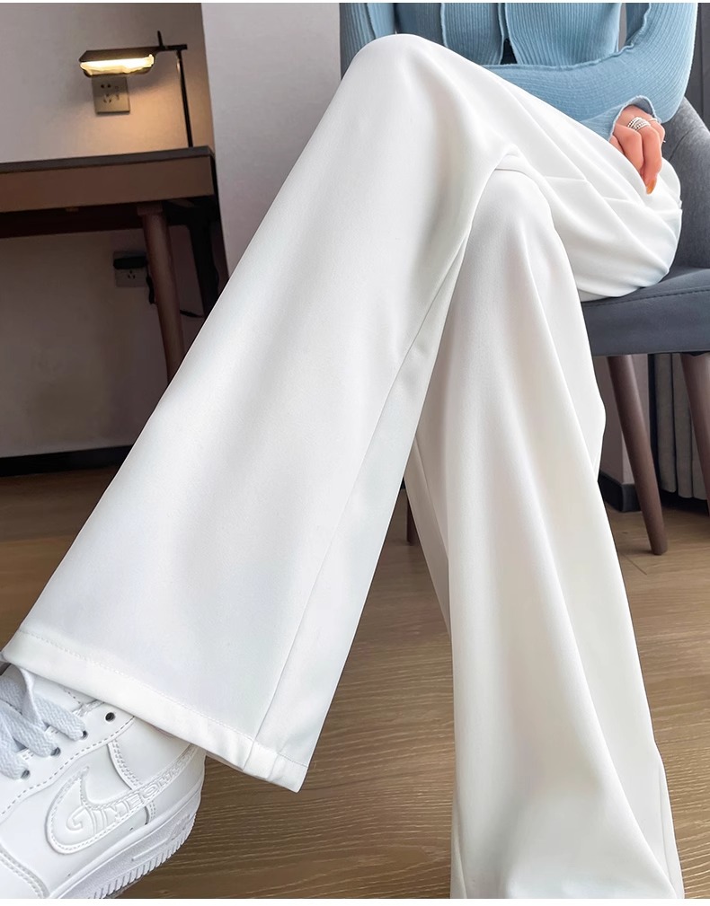 Pantalones de trajes blancos de primavera y otoño de mujer 2024 nuevo hombre pequeño cintura alta sensación de colgaje de tope de piso recto pantalones largos casuales de piernas anchas