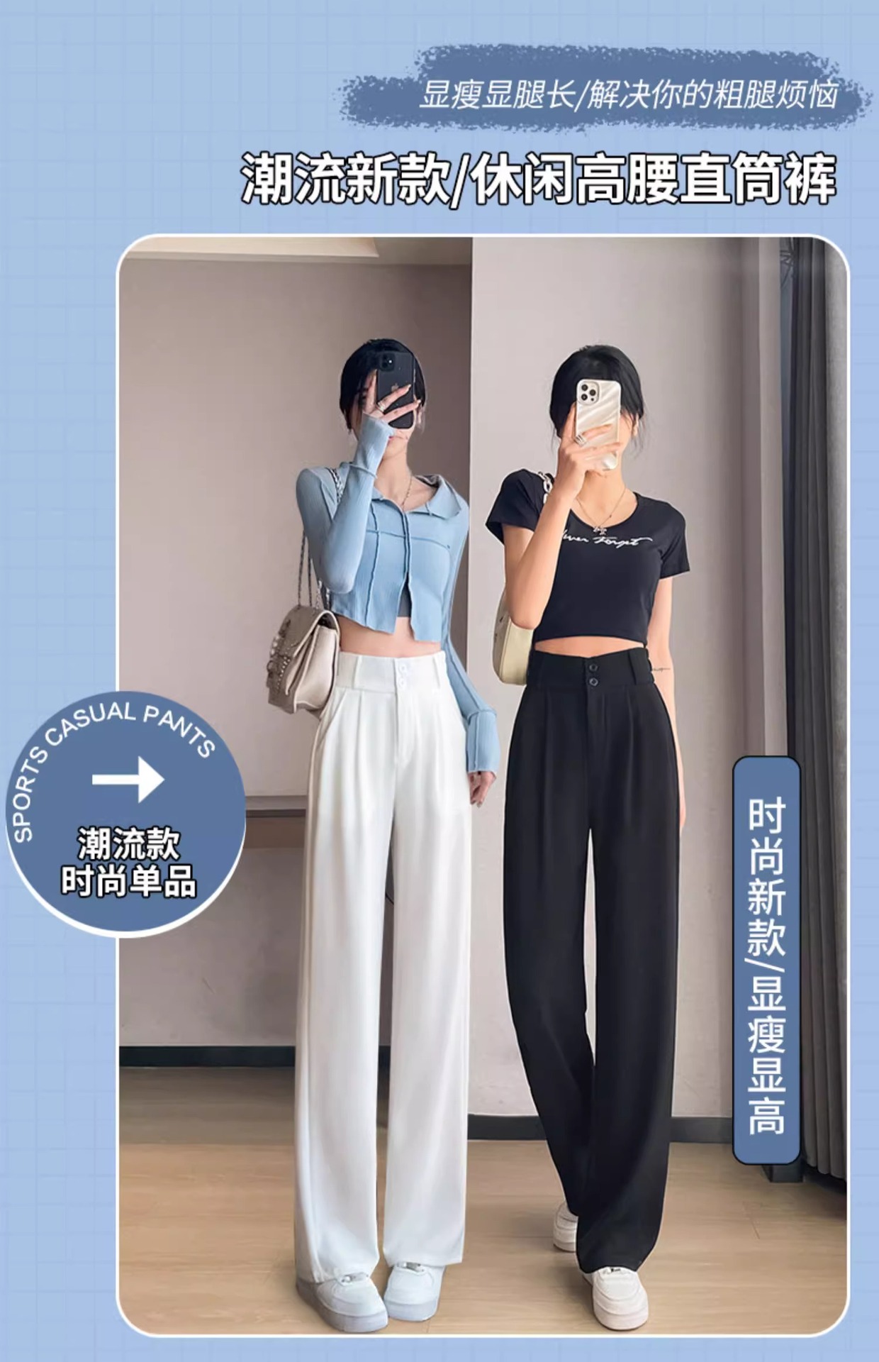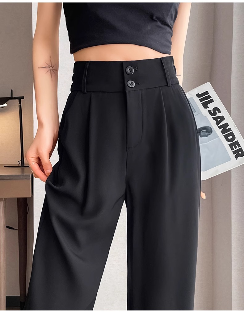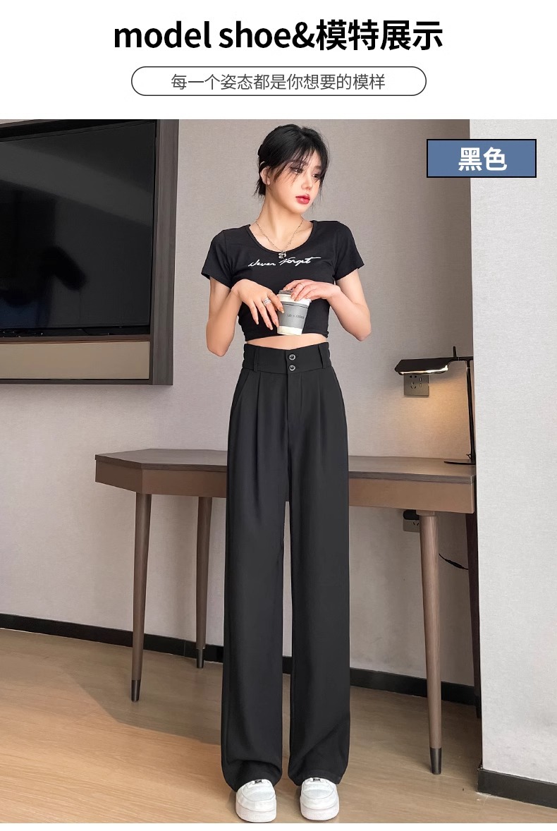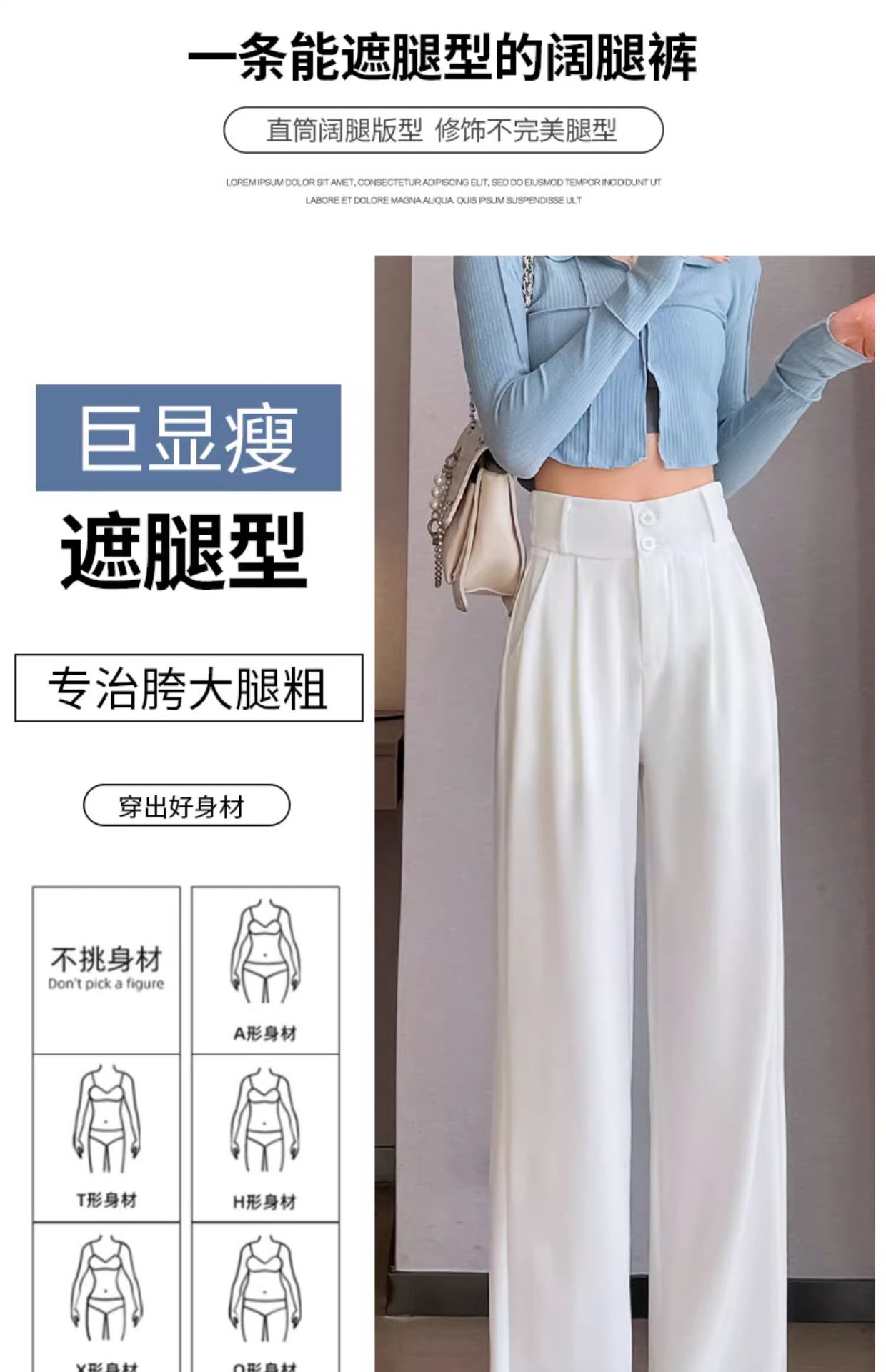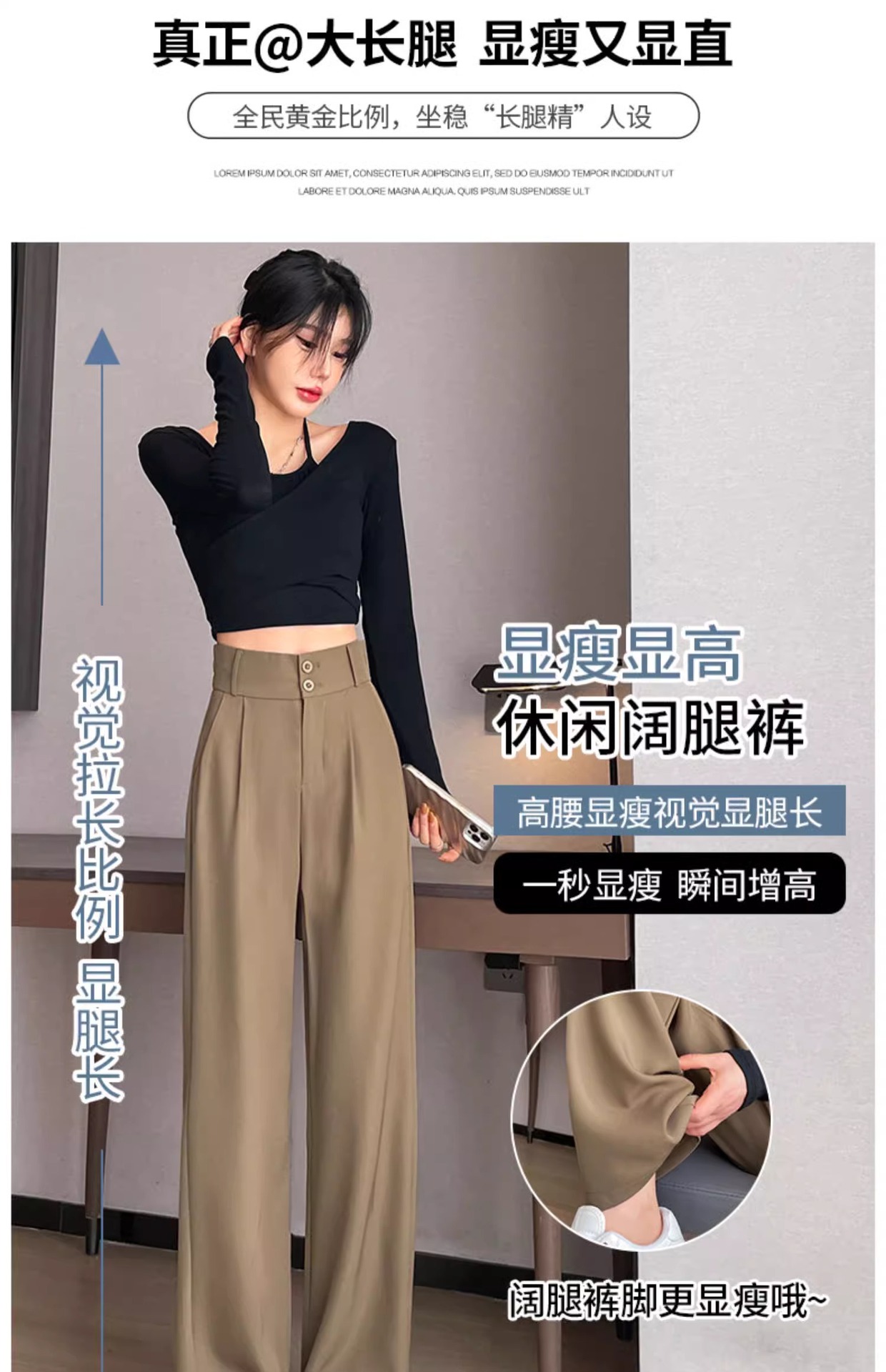 Trajes estrechos, pantalones de piernas anchas, mujeres, primavera y otoño, 2024 nuevos pantalones de cintura alta, delgados, rectos, relajados y casuales.