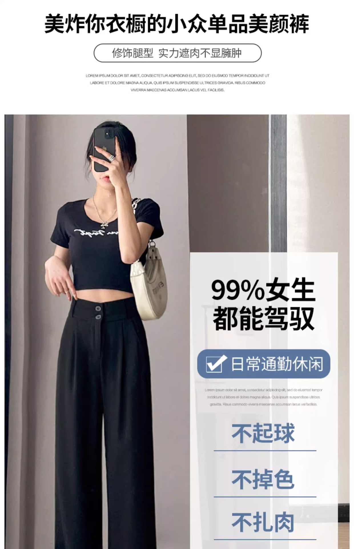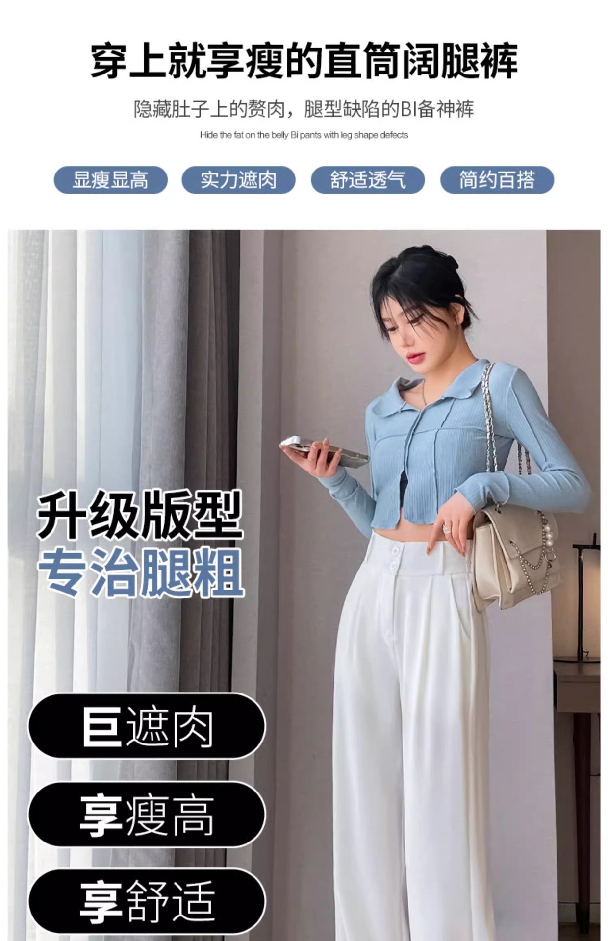 Pantalones de piernas anchas de primavera y otoño de 2024 nuevos modelos de verano delgados de cintura alta pantalones casuales rectos de tamaño pequeño