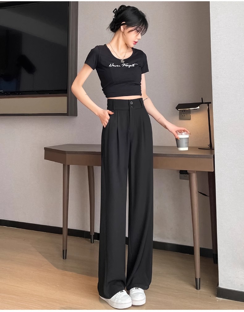 Pantalones de piernas anchas estrechas para mujeres primavera y otoño 2024 nuevo hombre pequeño cintura alta casual pantalones de traje recto de alta sensación