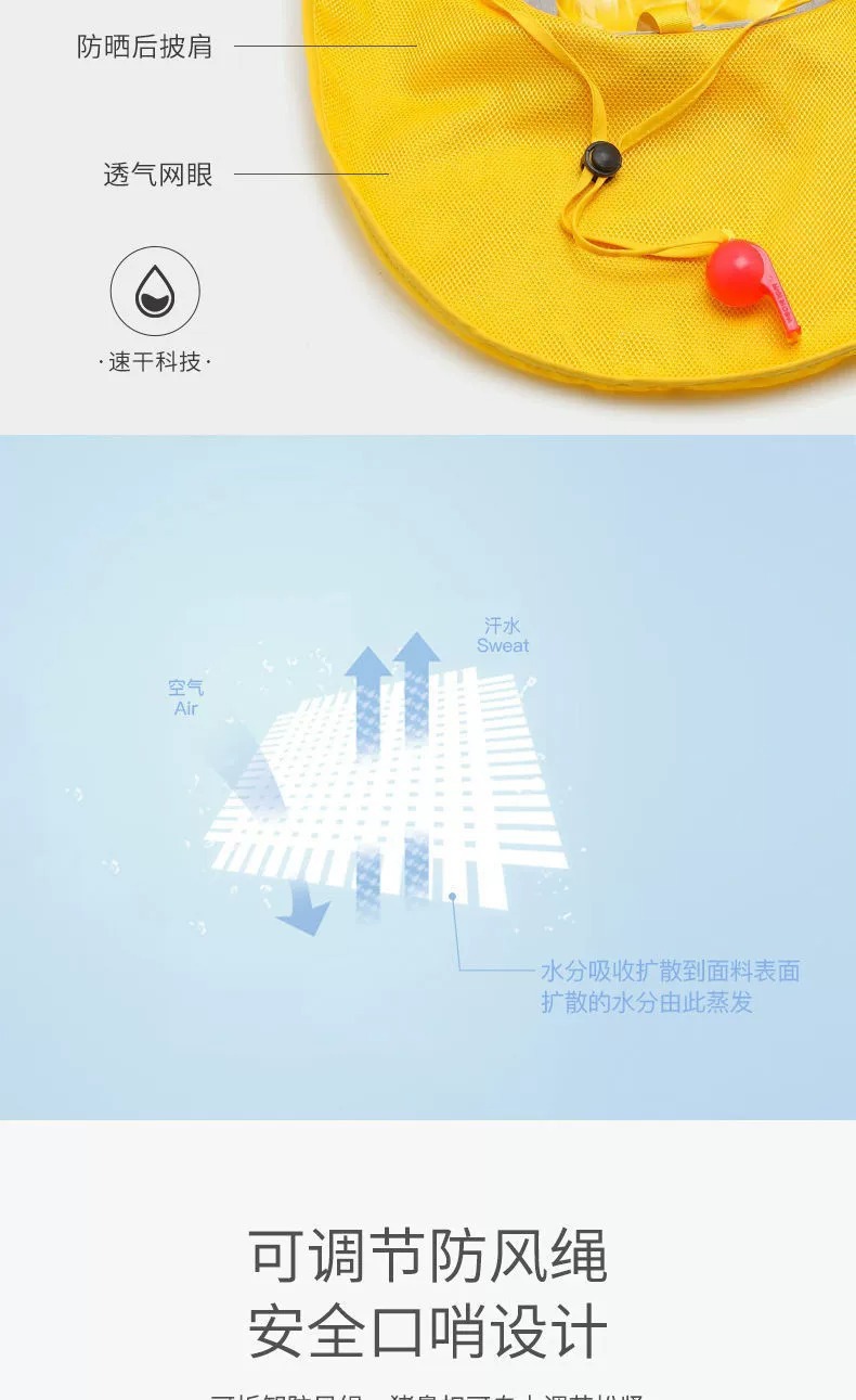 | Función | Protector solar, protector de cuello, ventilador, sombra solar |