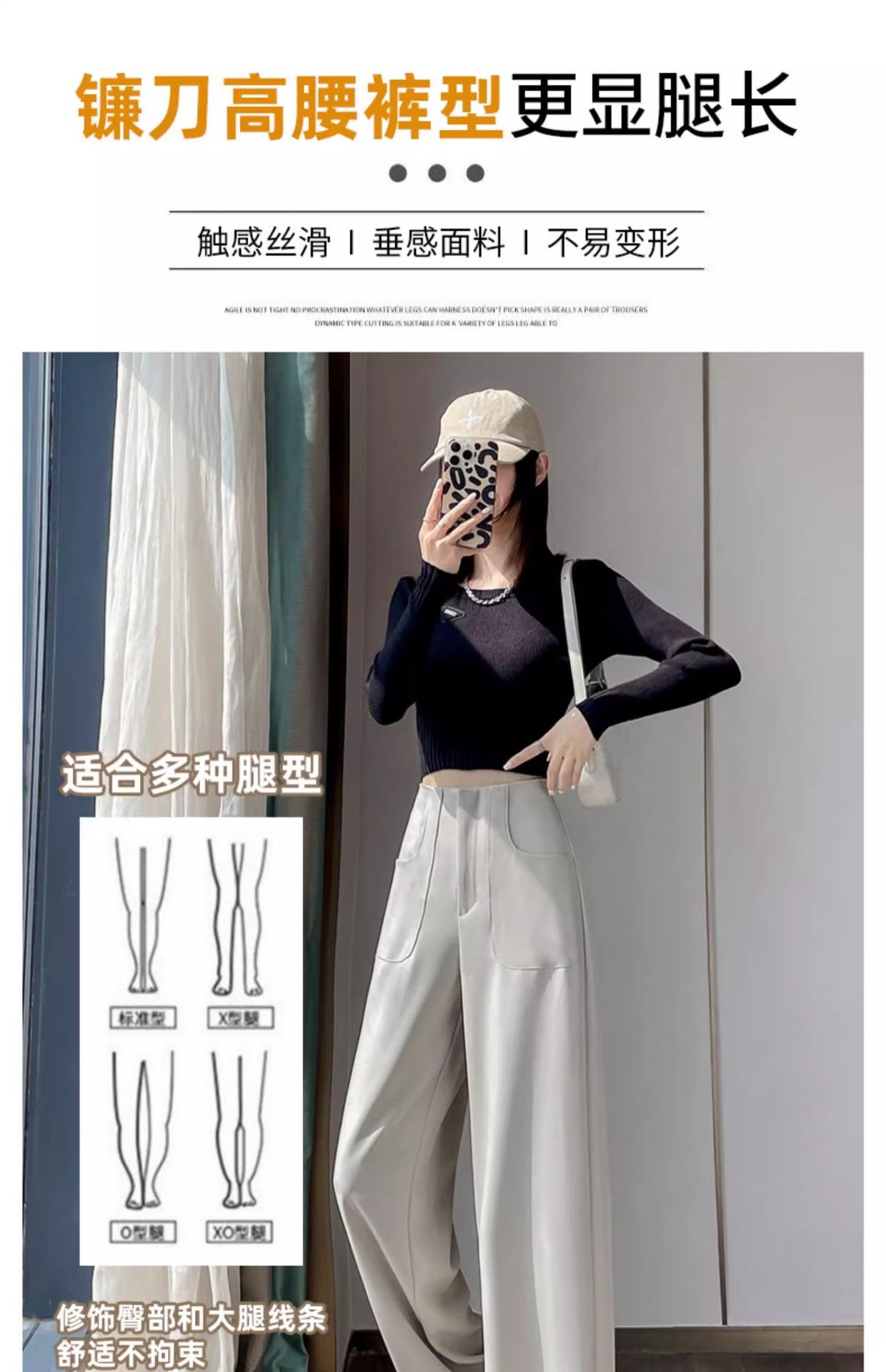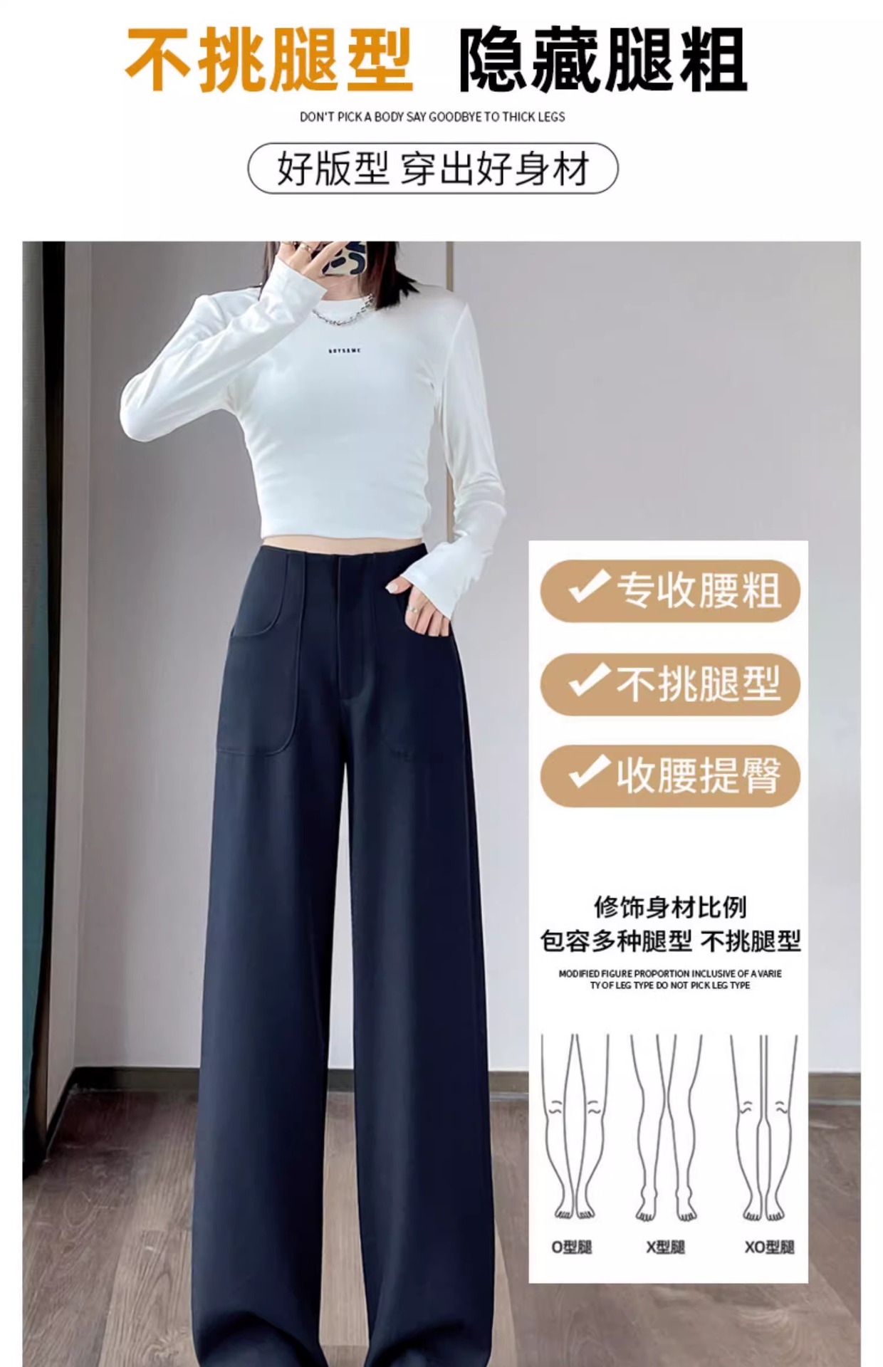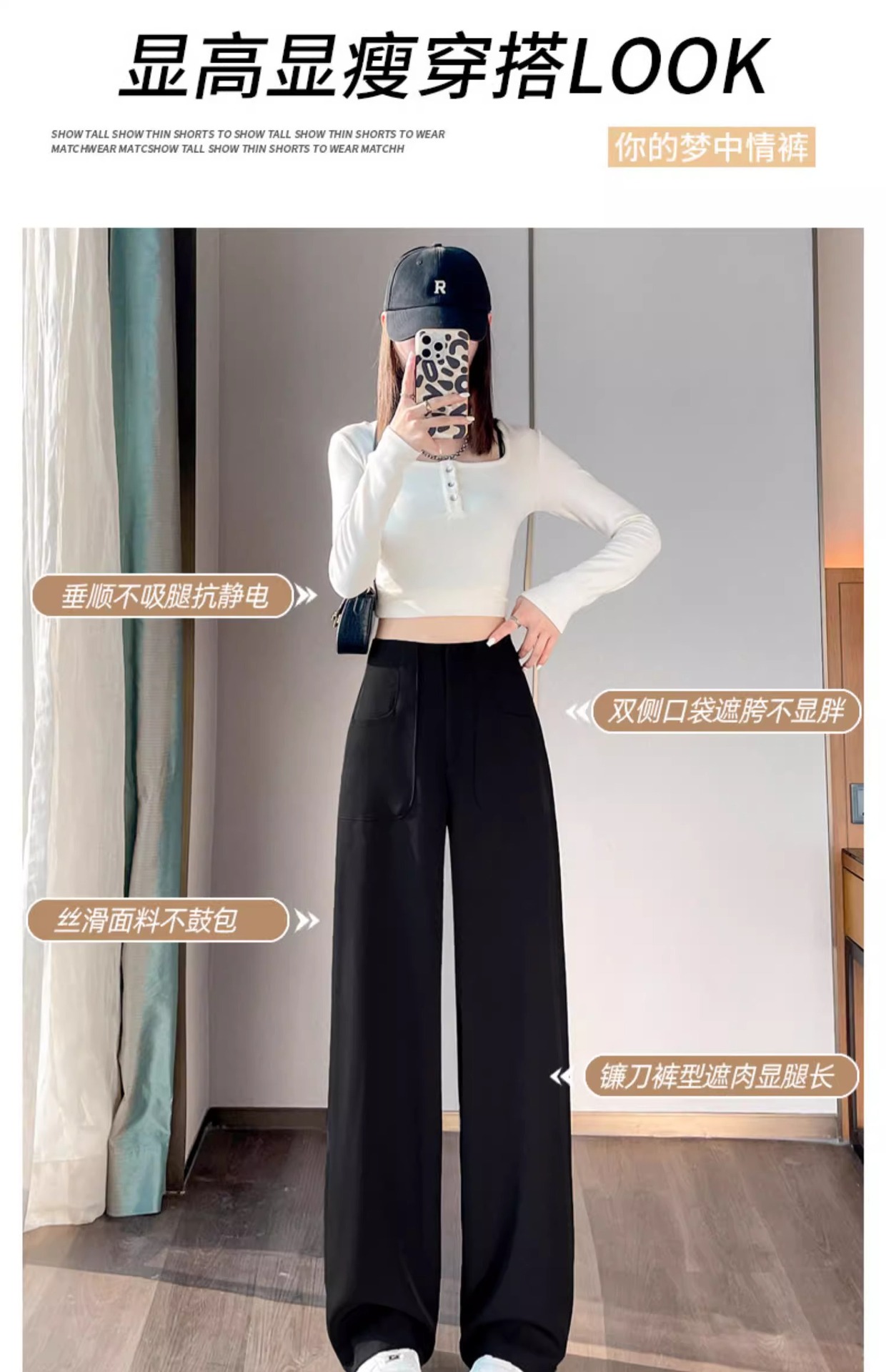 Pantalones de piernas anchas de primavera y otoño de 2024 nuevos modelos de verano delgados de cintura alta pantalones casuales rectos de tamaño pequeño