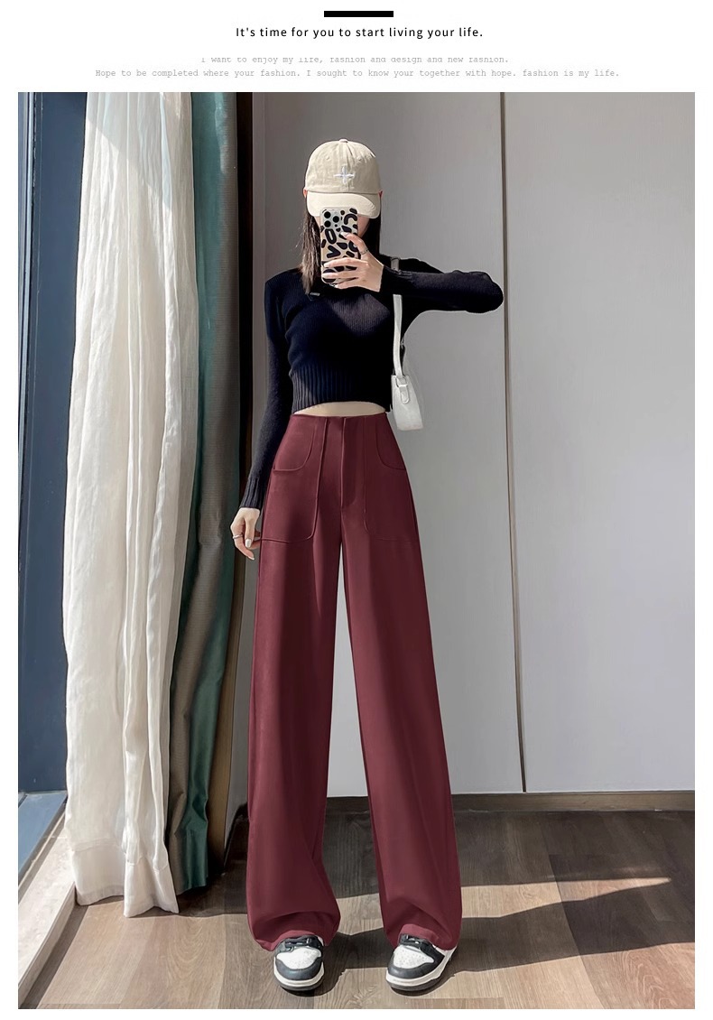 Angola trajes rojos pantalones de piernas anchas mujeres primavera y otoño de alta sensación de caída alta casual pantalones recto estrechos