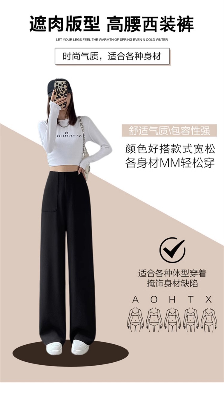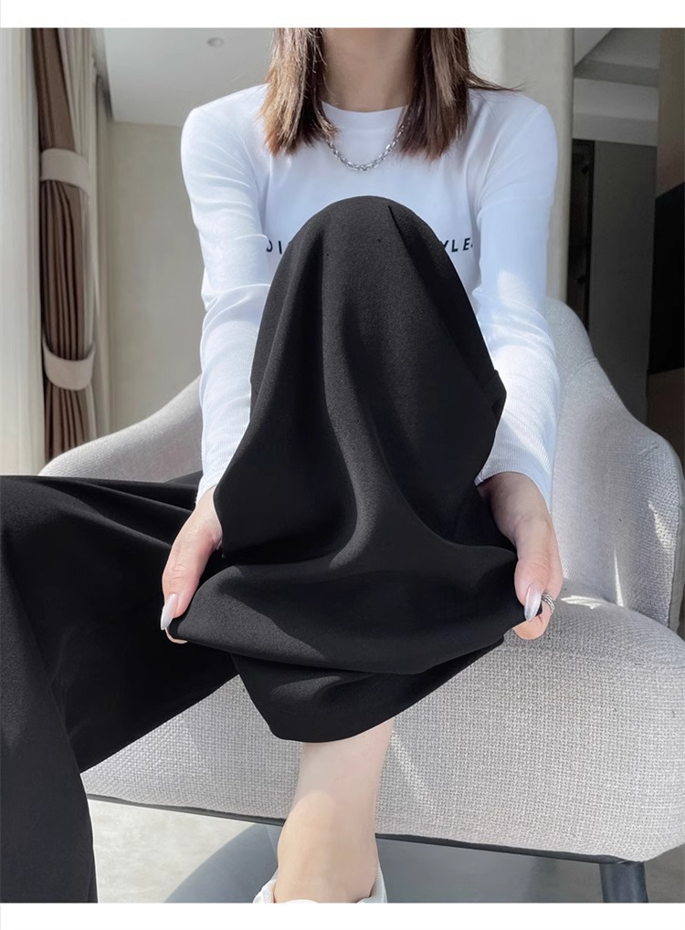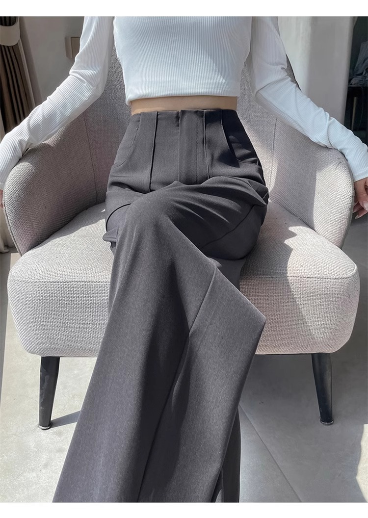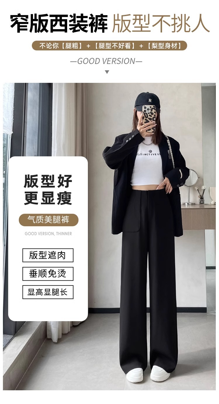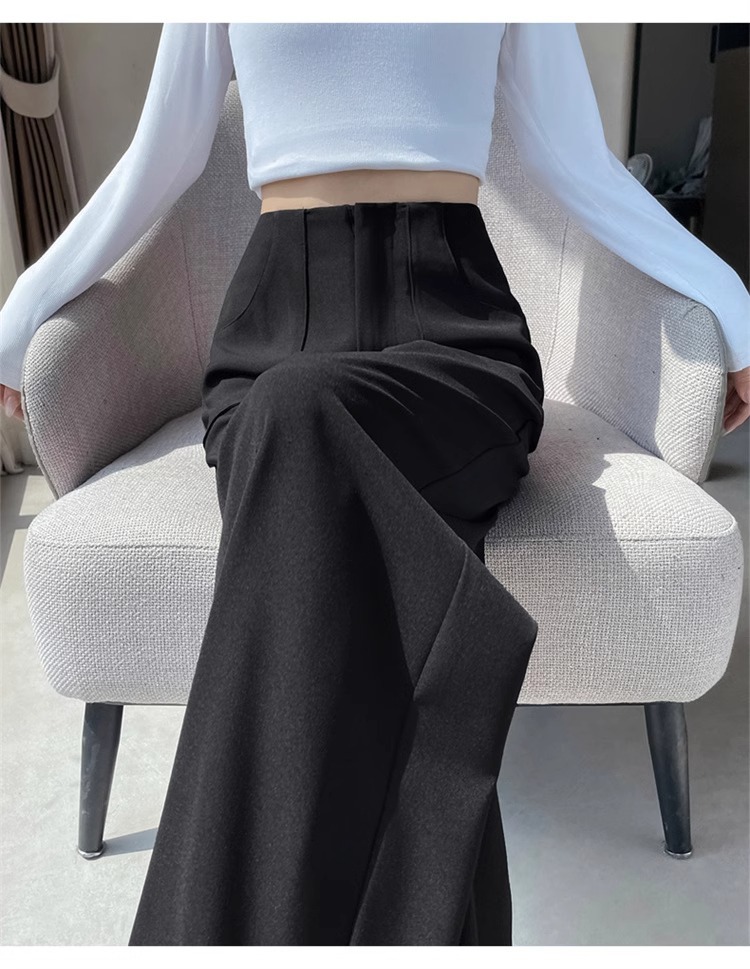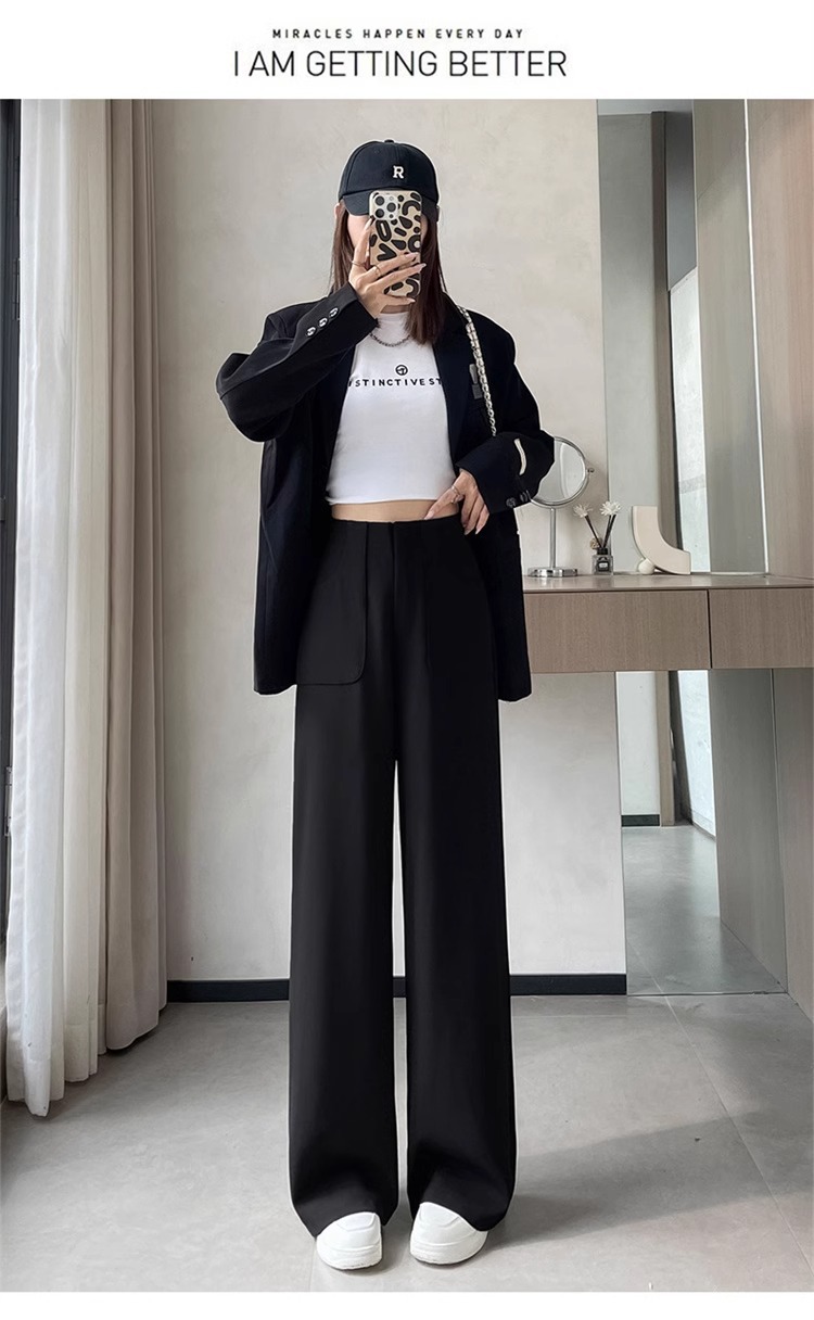 Corea delantera horquilla estrecha pantalones de piernas anchas mujeres pequeñas primavera y otoño recto negro cintura alta sensación de invierno pantalones de traje de invierno