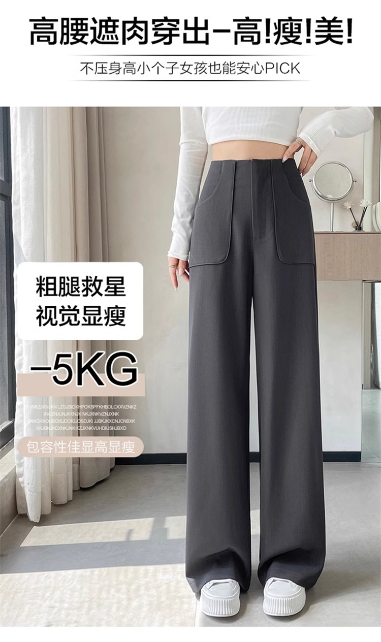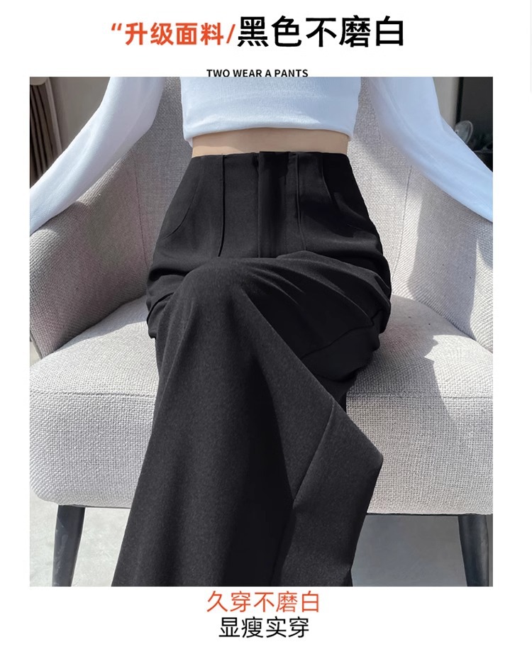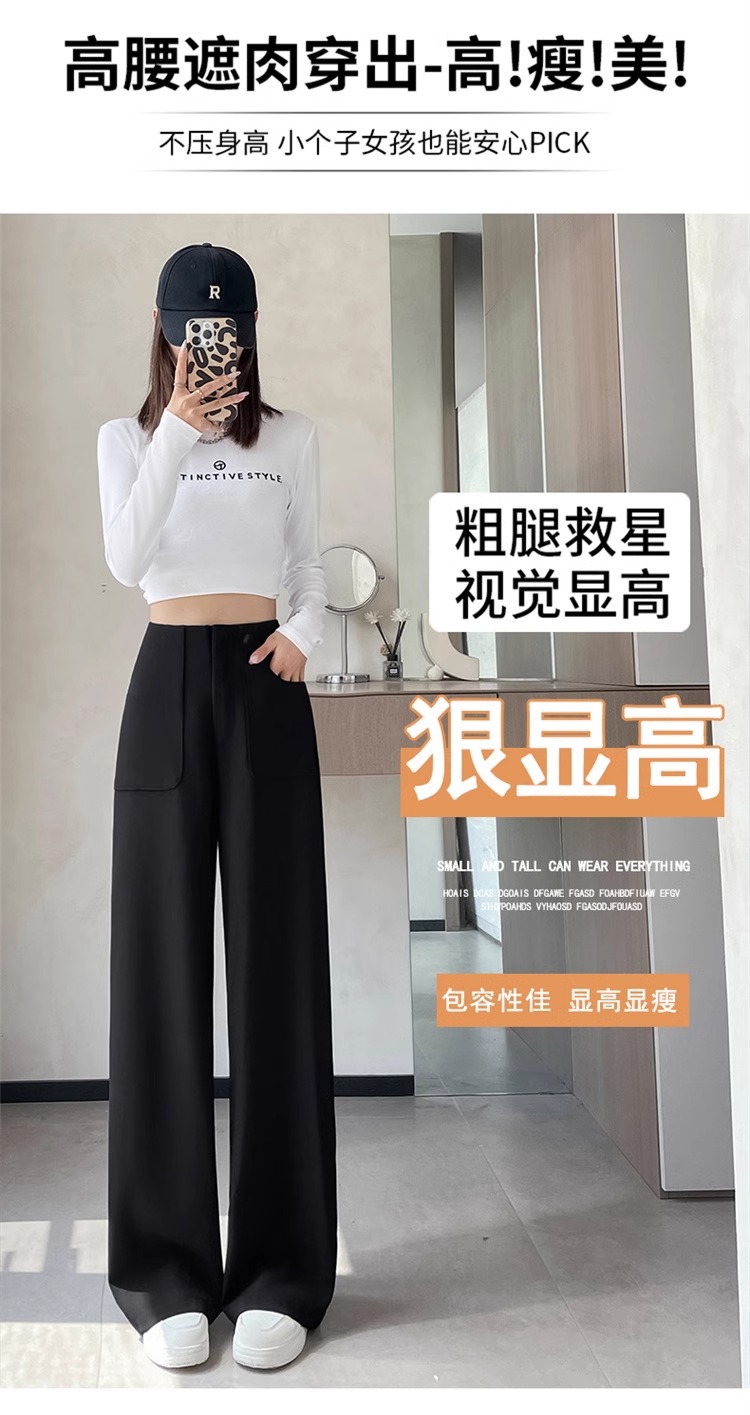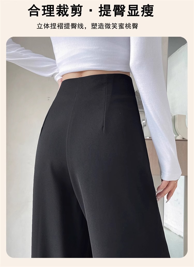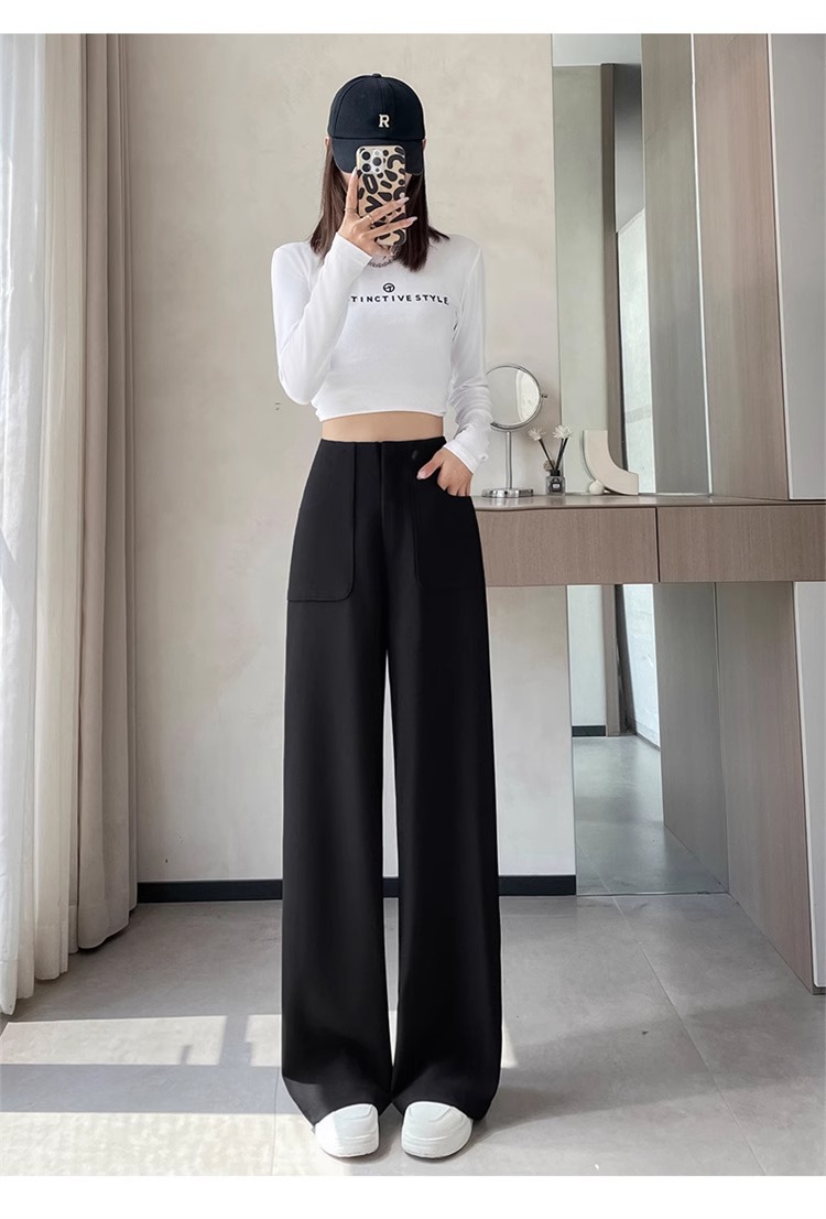 Corea delantera horquilla estrecha pantalones de piernas anchas mujeres pequeñas primavera y otoño recto negro cintura alta sensación de invierno pantalones de traje de invierno