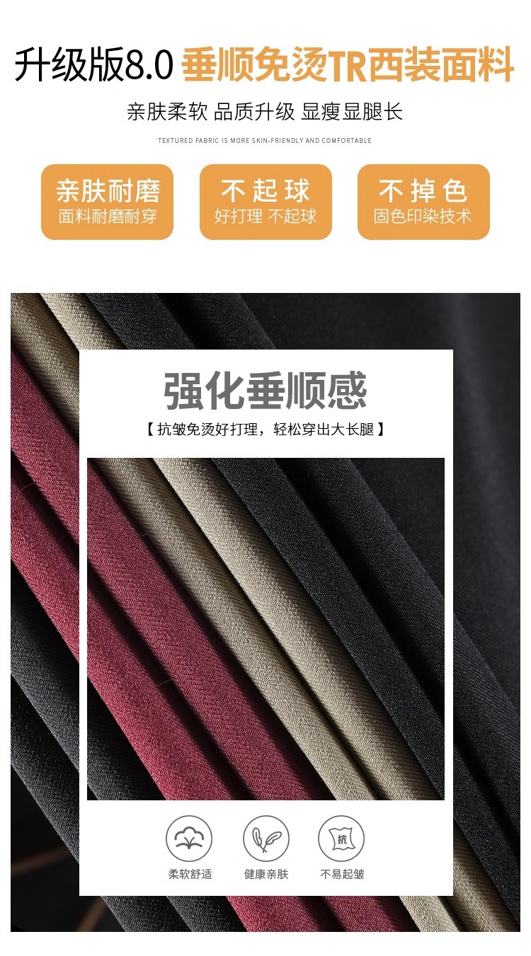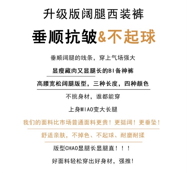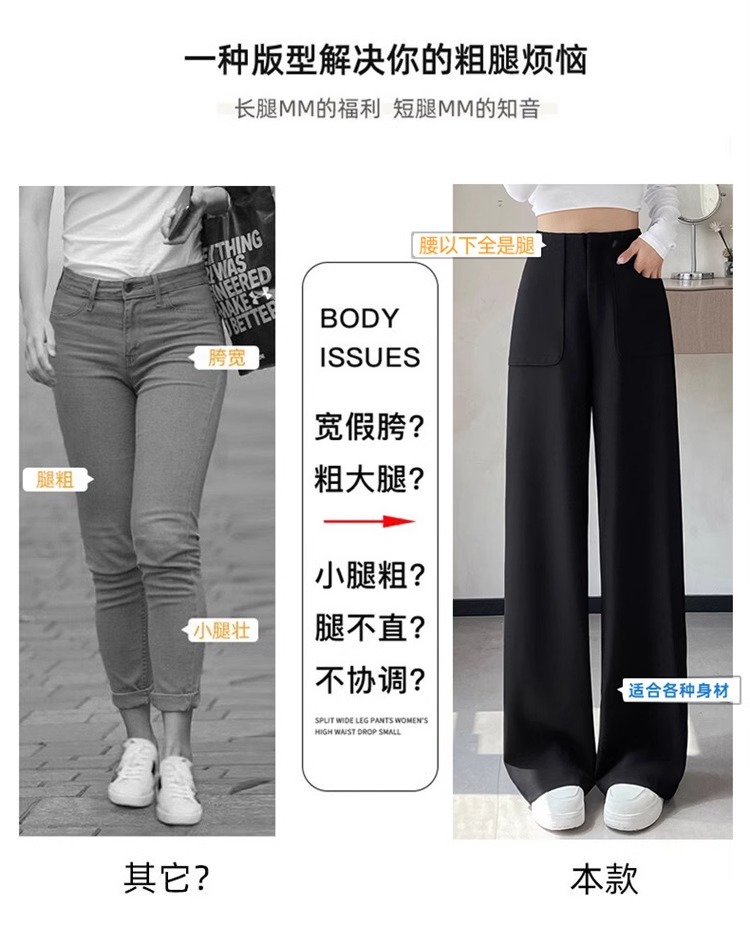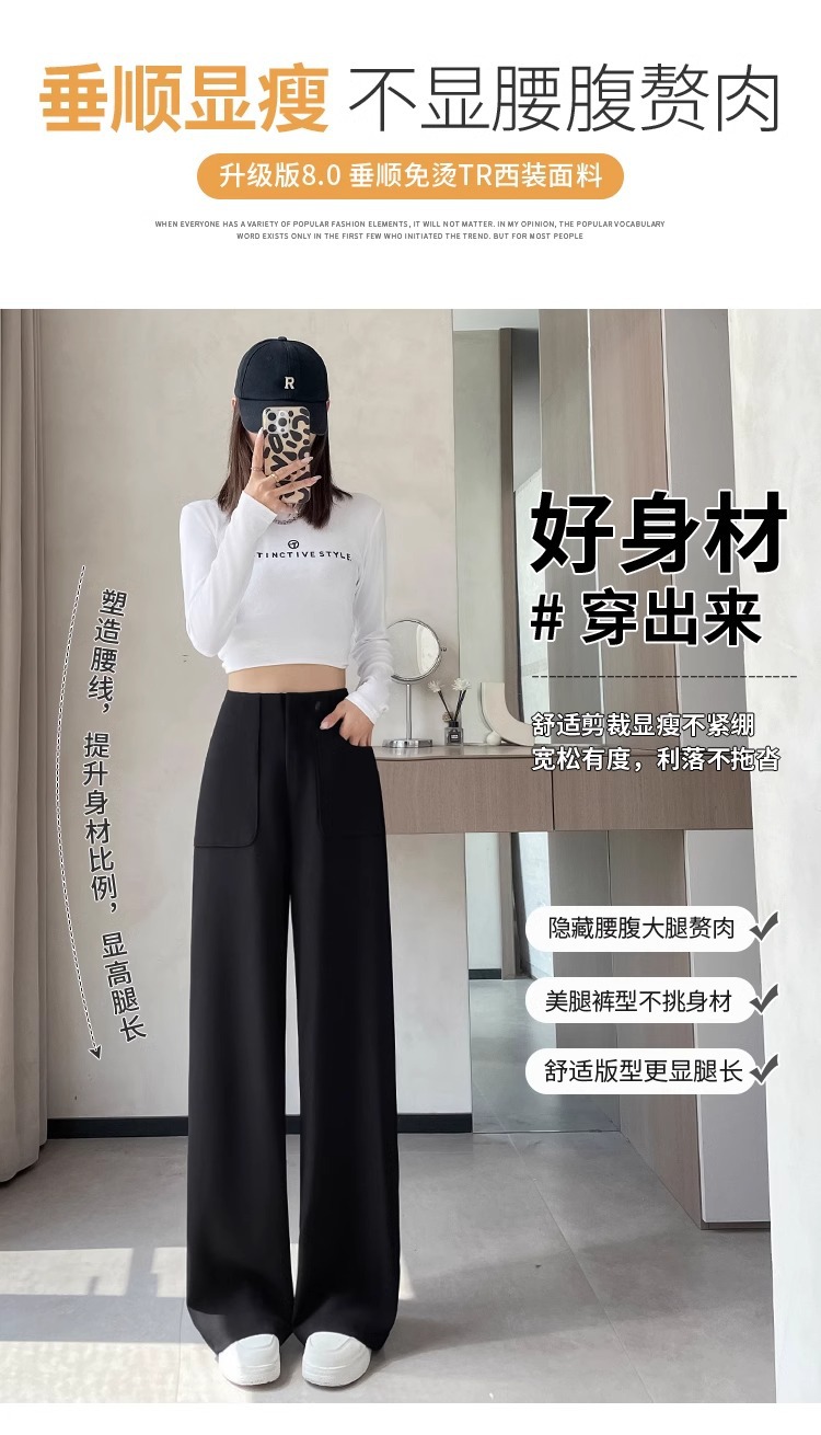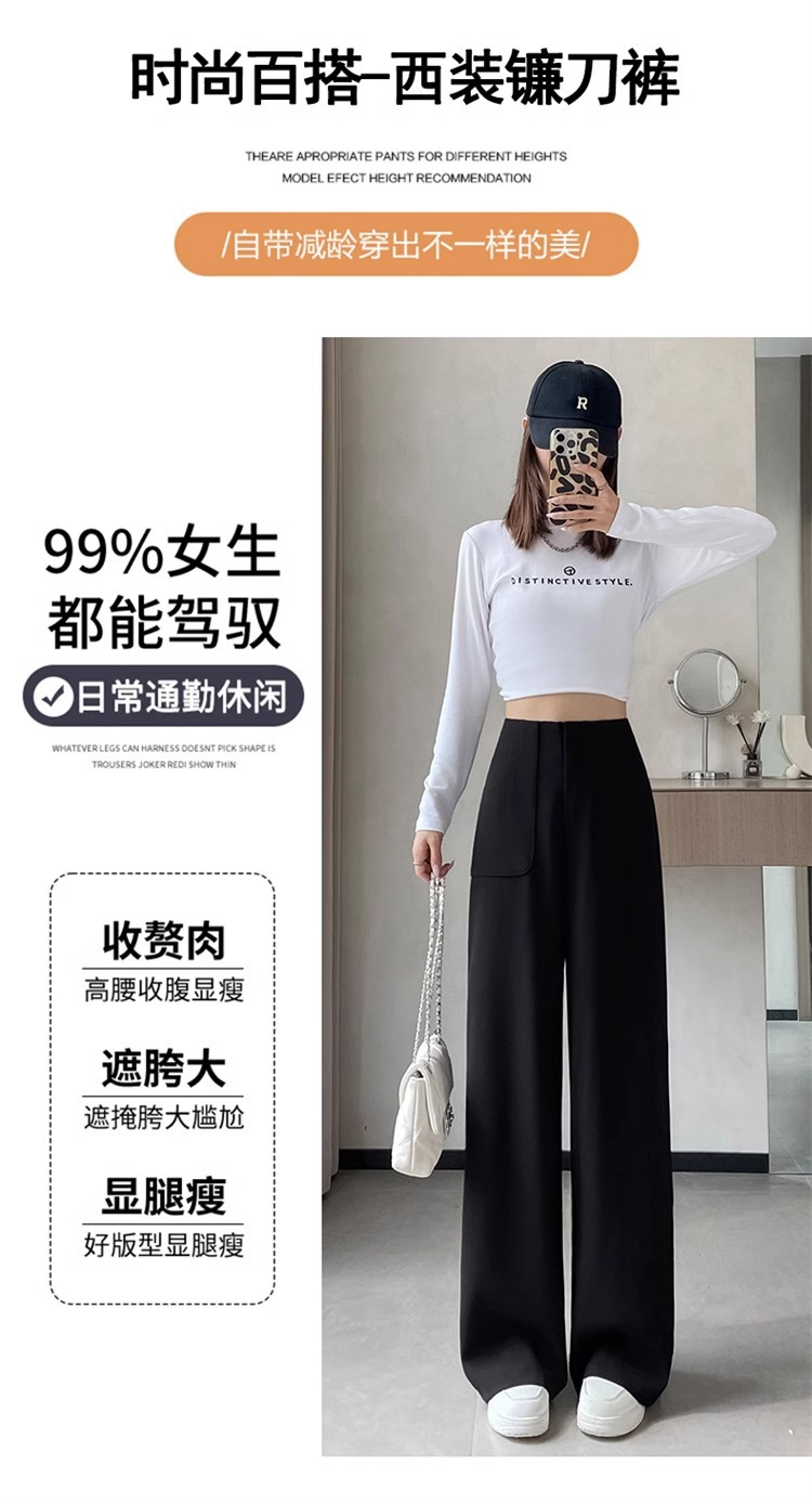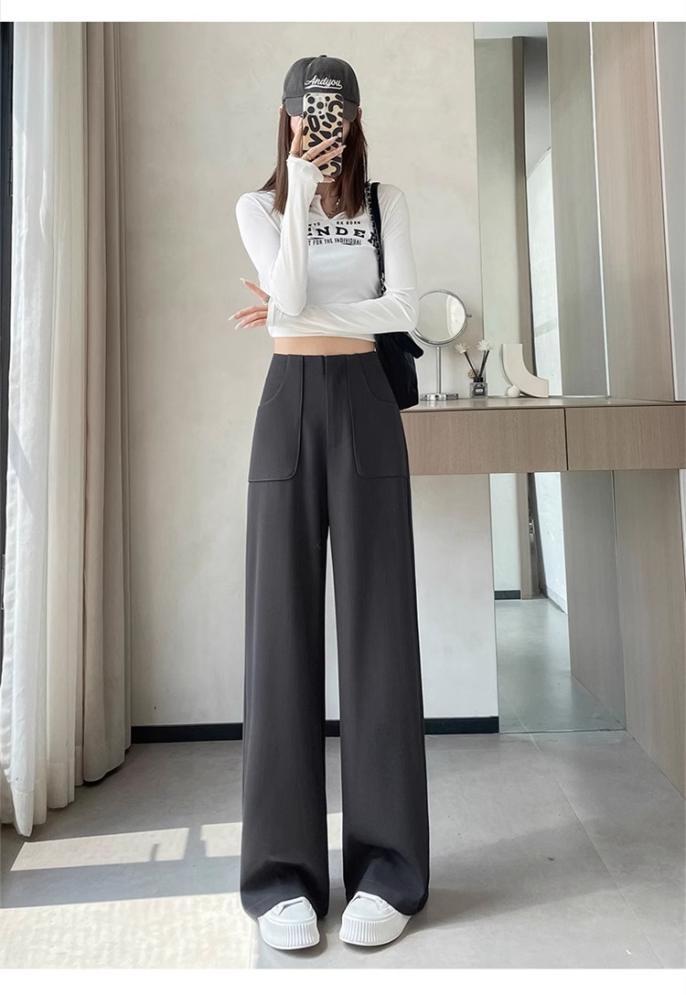 Corea delantera horquilla estrecha pantalones de piernas anchas mujeres pequeñas primavera y otoño recto negro cintura alta sensación de invierno pantalones de traje de invierno