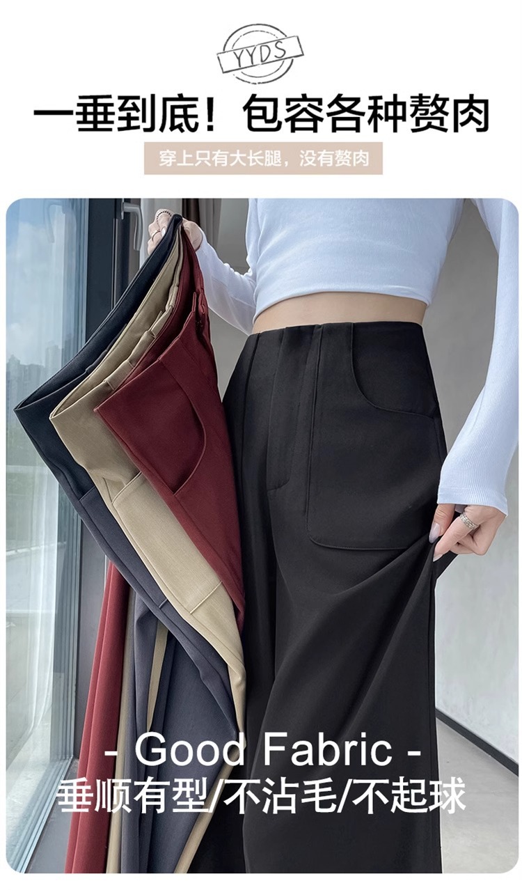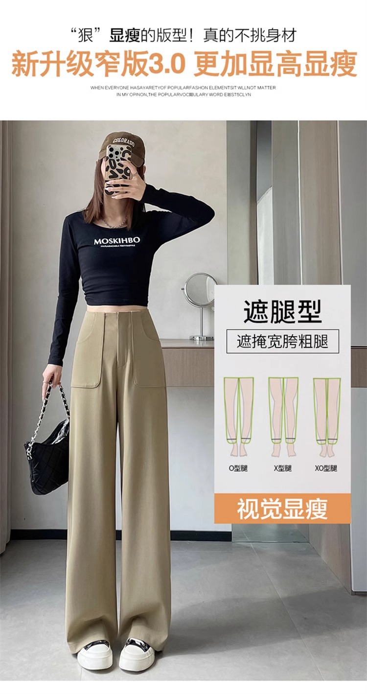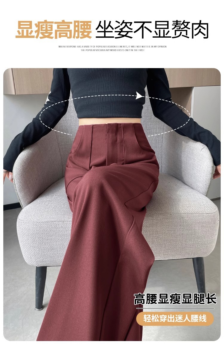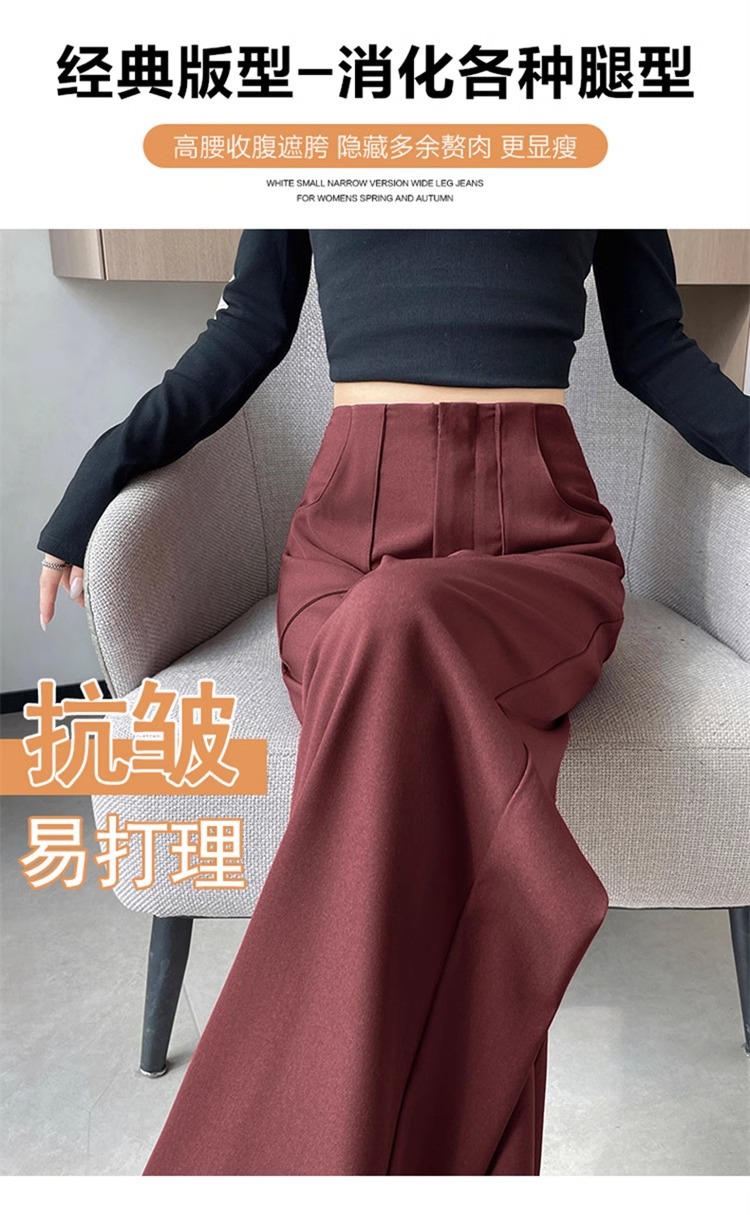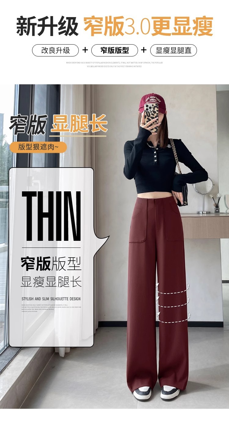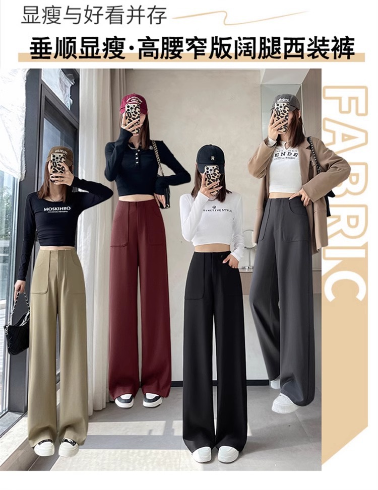 Pantalones de piernas anchas estrechas de alta sensación 2024 otoño nuevo estilo de cintura alta caída sensación de pantalones de trapazo recto pantalones largos