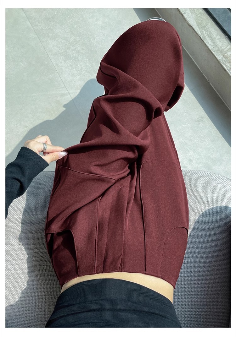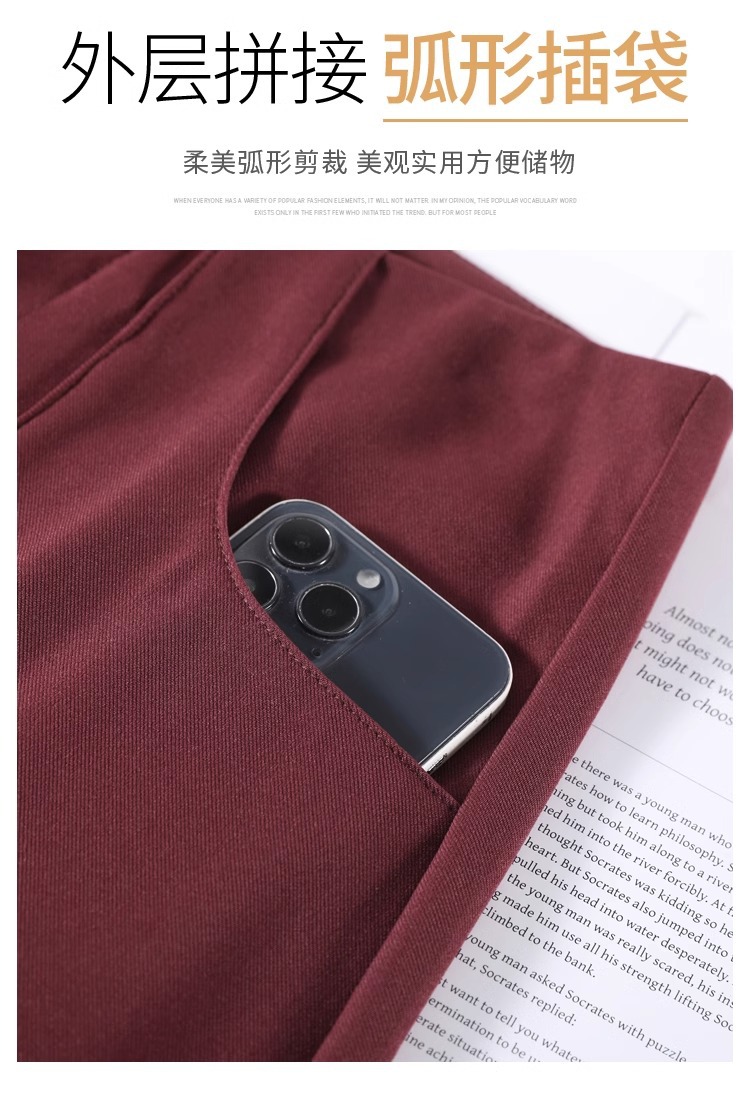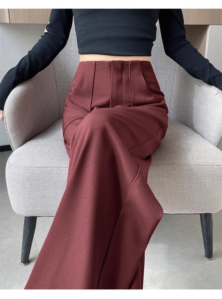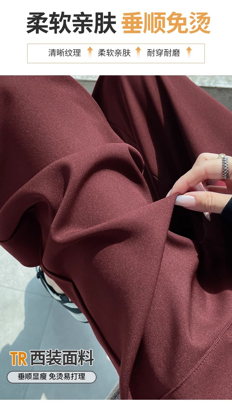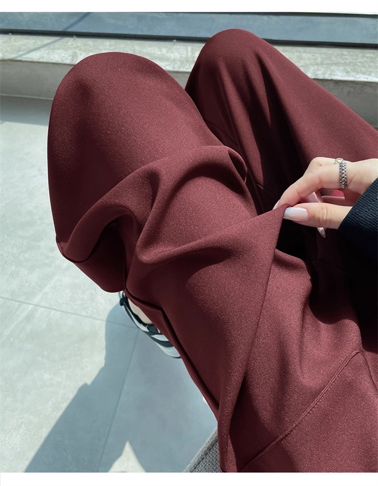 Ángora pantalones de traje rojo para mujeres de cintura alta y delgada recta, sensación vertical estrecha, falca, pantalones de pierna, pantalones de bananas, primavera y otoño