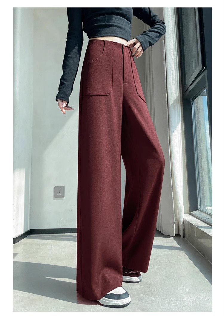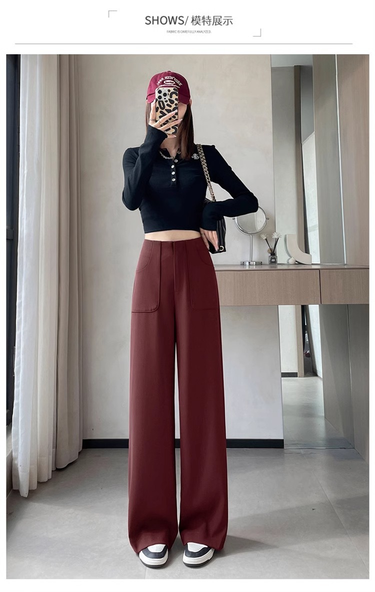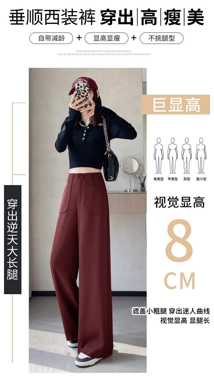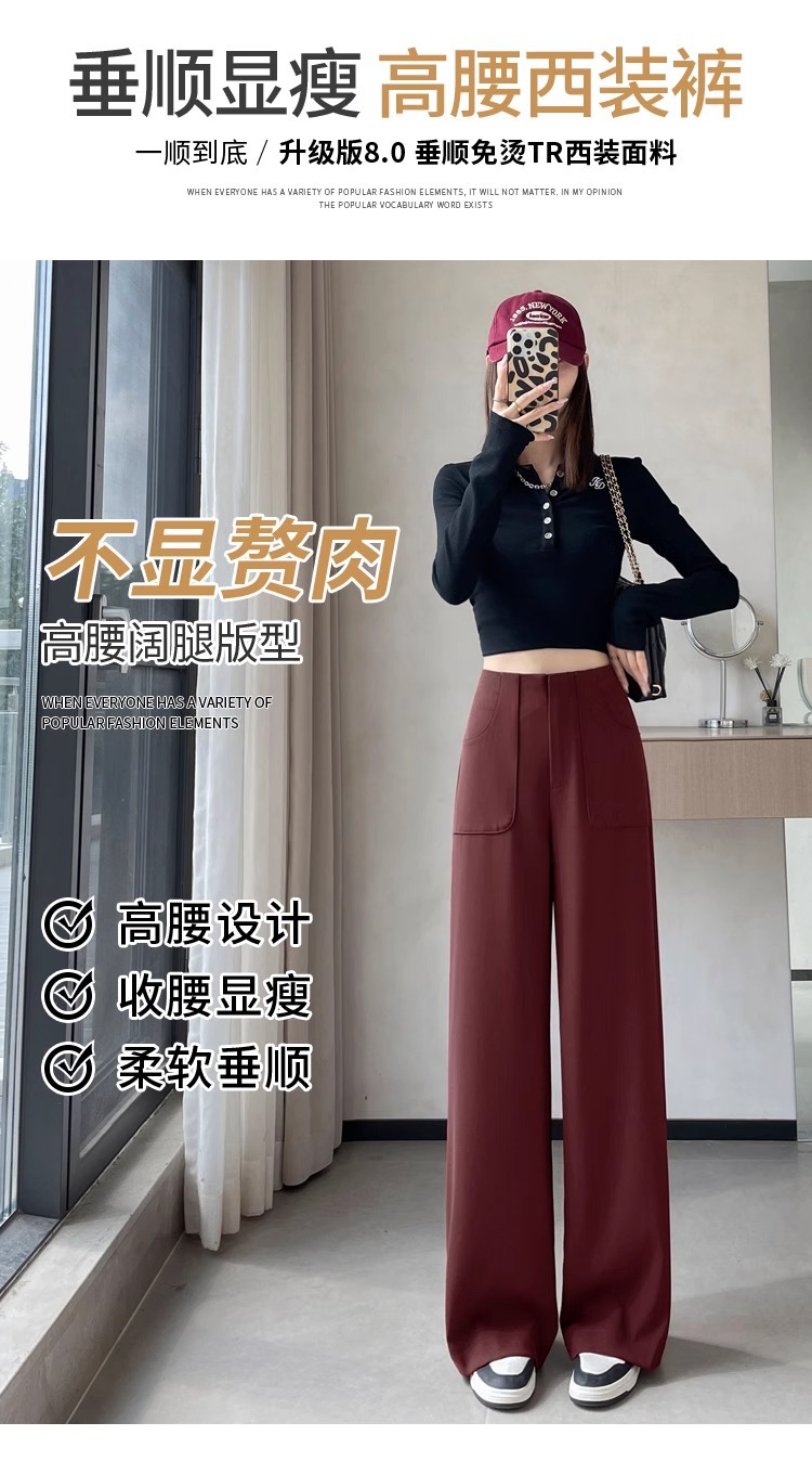 Anchor Rojo de alto nivel pantalones de traje de mujer primavera y otoño 2024 nuevo popular cintura alta suelta recta pantalones de piernas anchas