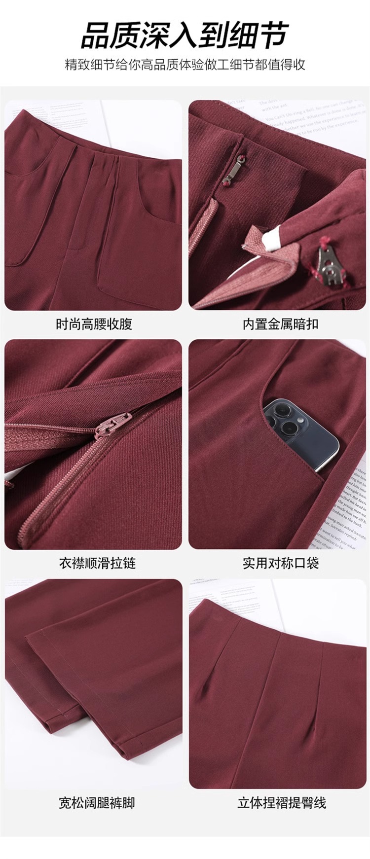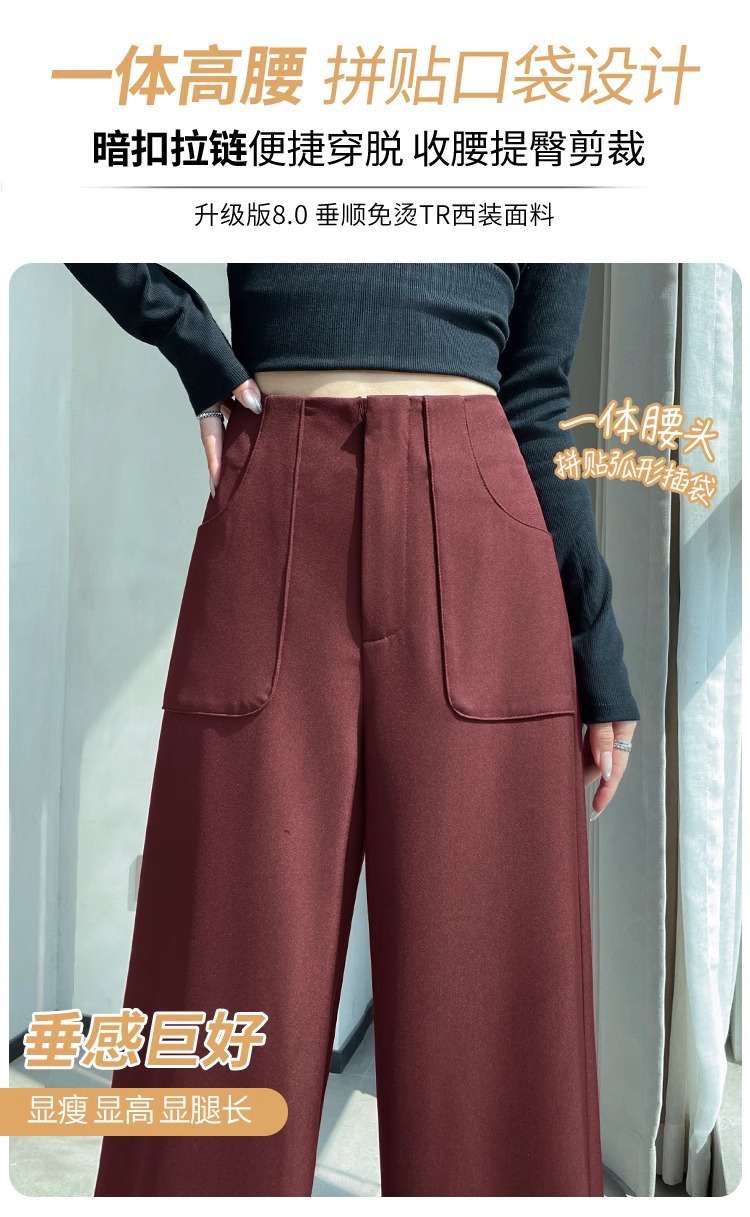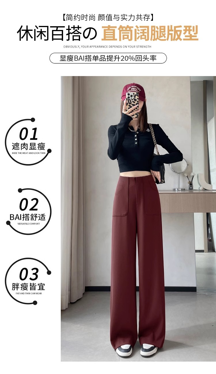 Anchor Rojo de alto nivel pantalones de traje de mujer primavera y otoño 2024 nuevo popular cintura alta suelta recta pantalones de piernas anchas