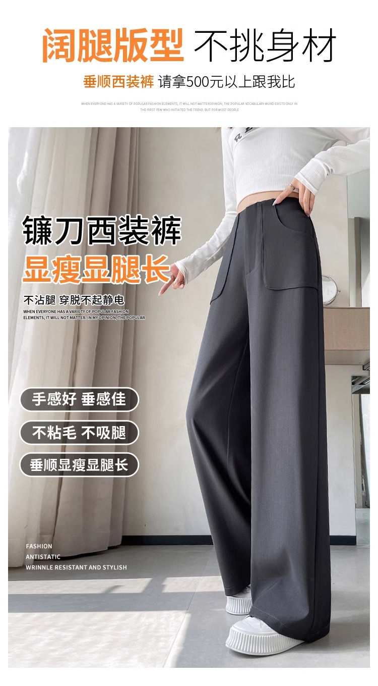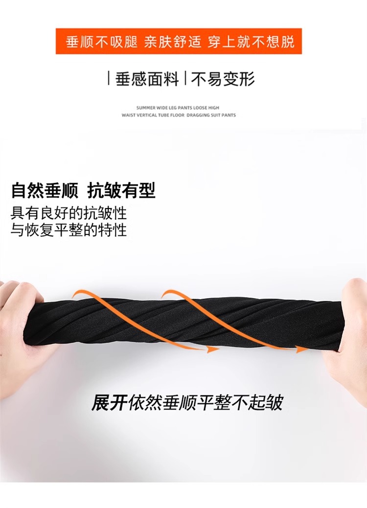 Pantalones de pierna ancha de seda de hielo de estilo explosivo para mujer, cintura alta delgada de verano, protector solar delgado, pantalones casuales de traje recto de versión estrecha