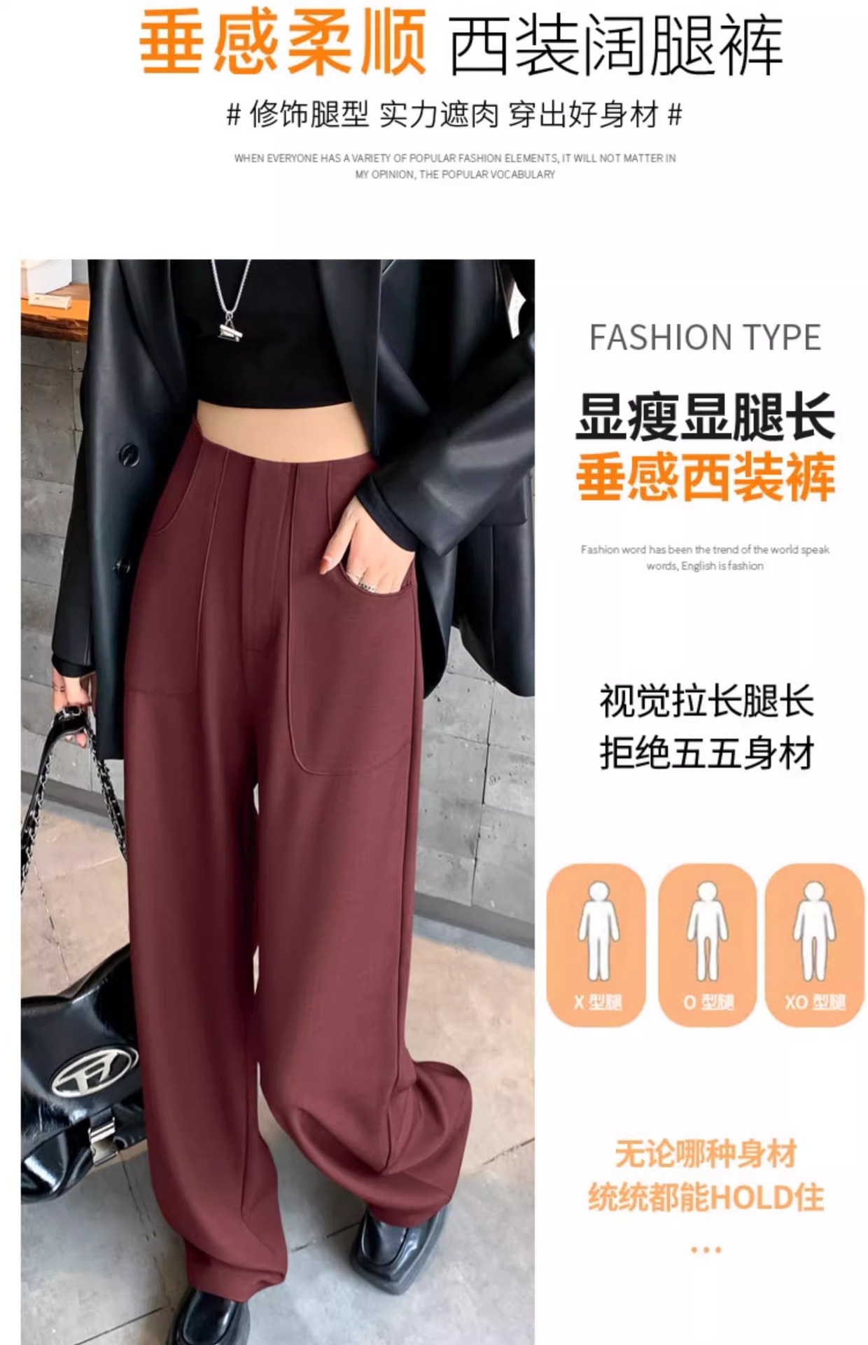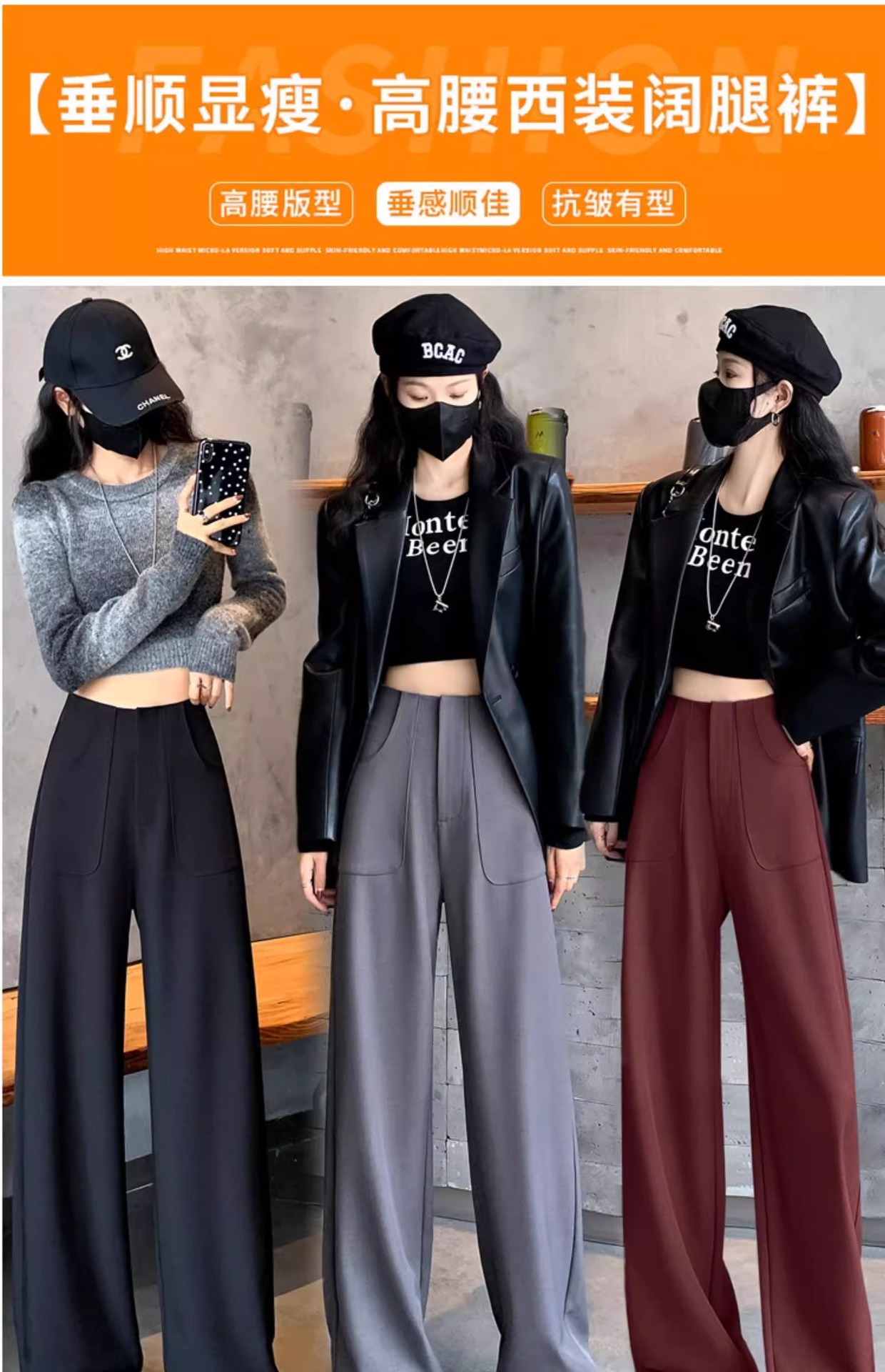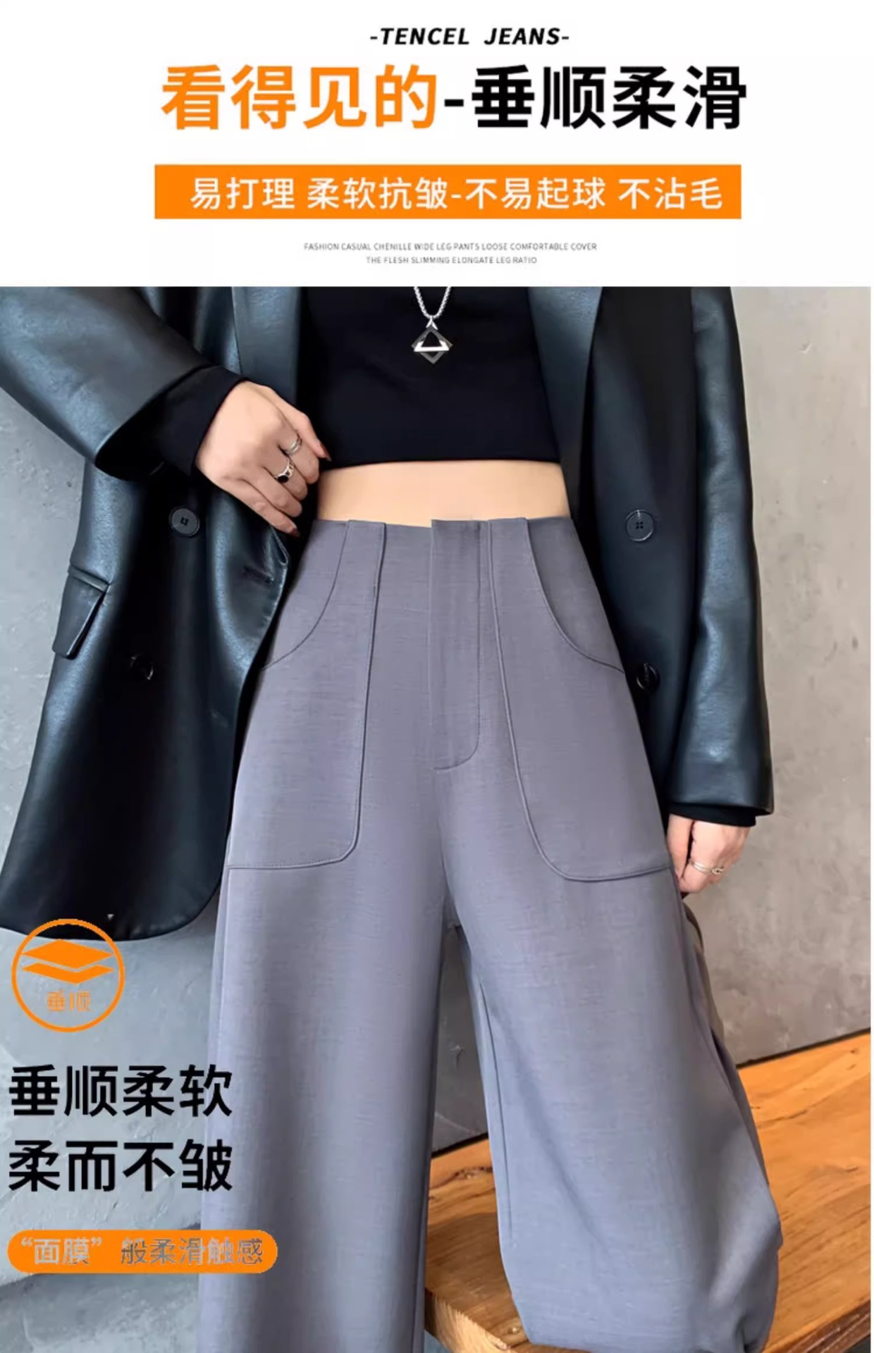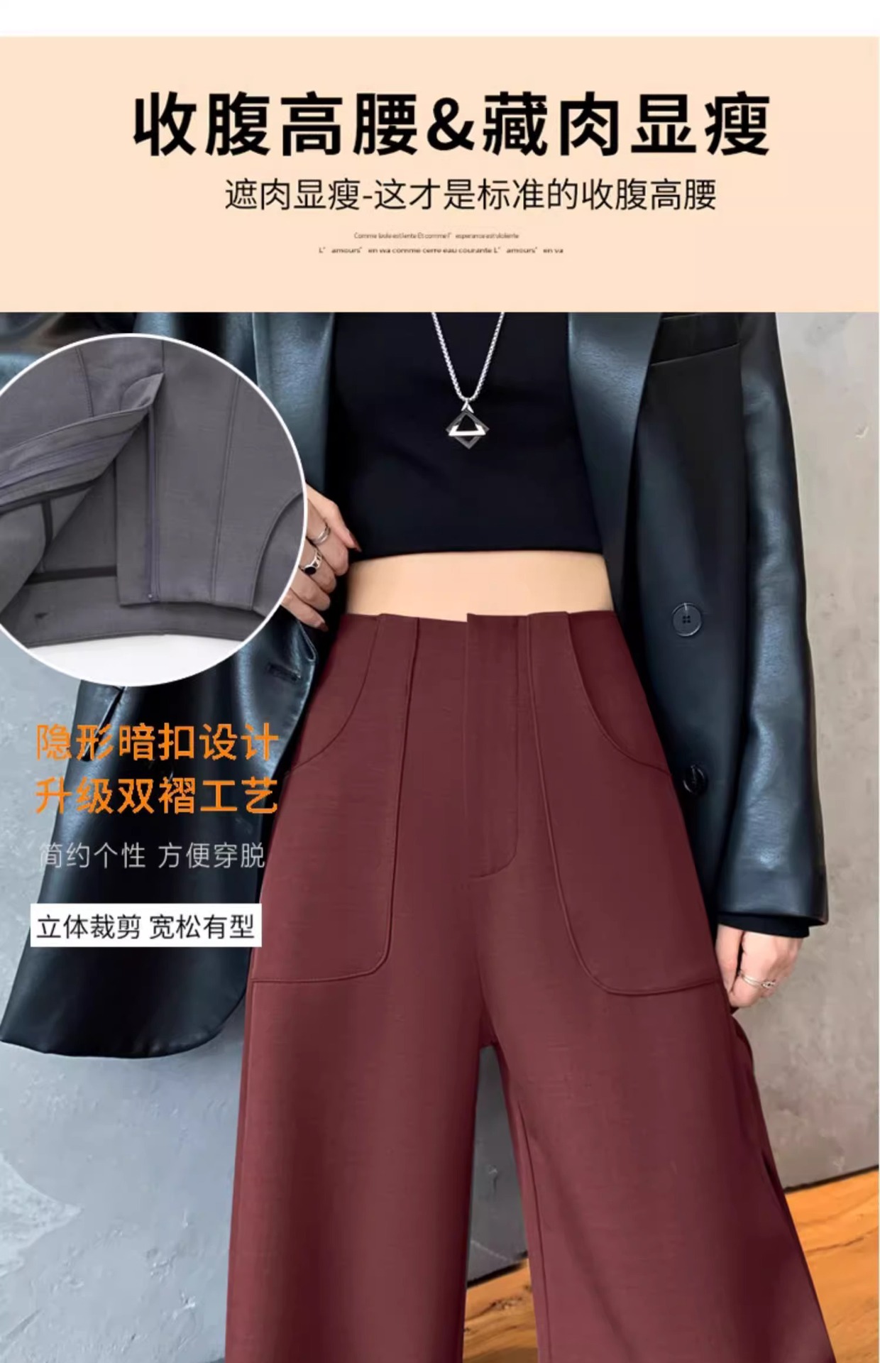 Trajes estrechos, pantalones de piernas anchas, mujeres, primavera y otoño, 2024 nuevos pantalones de cintura alta, delgados, rectos, relajados y casuales.