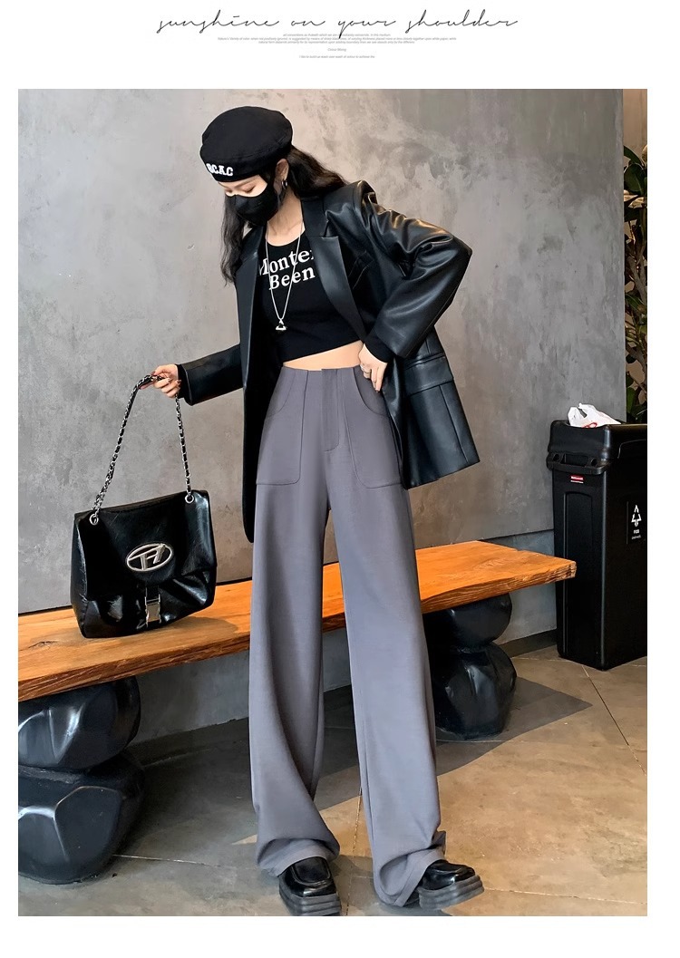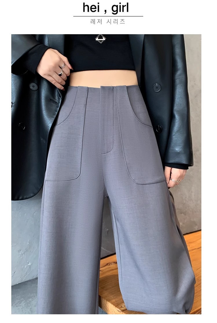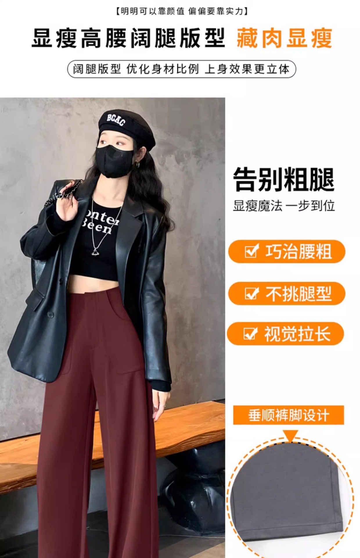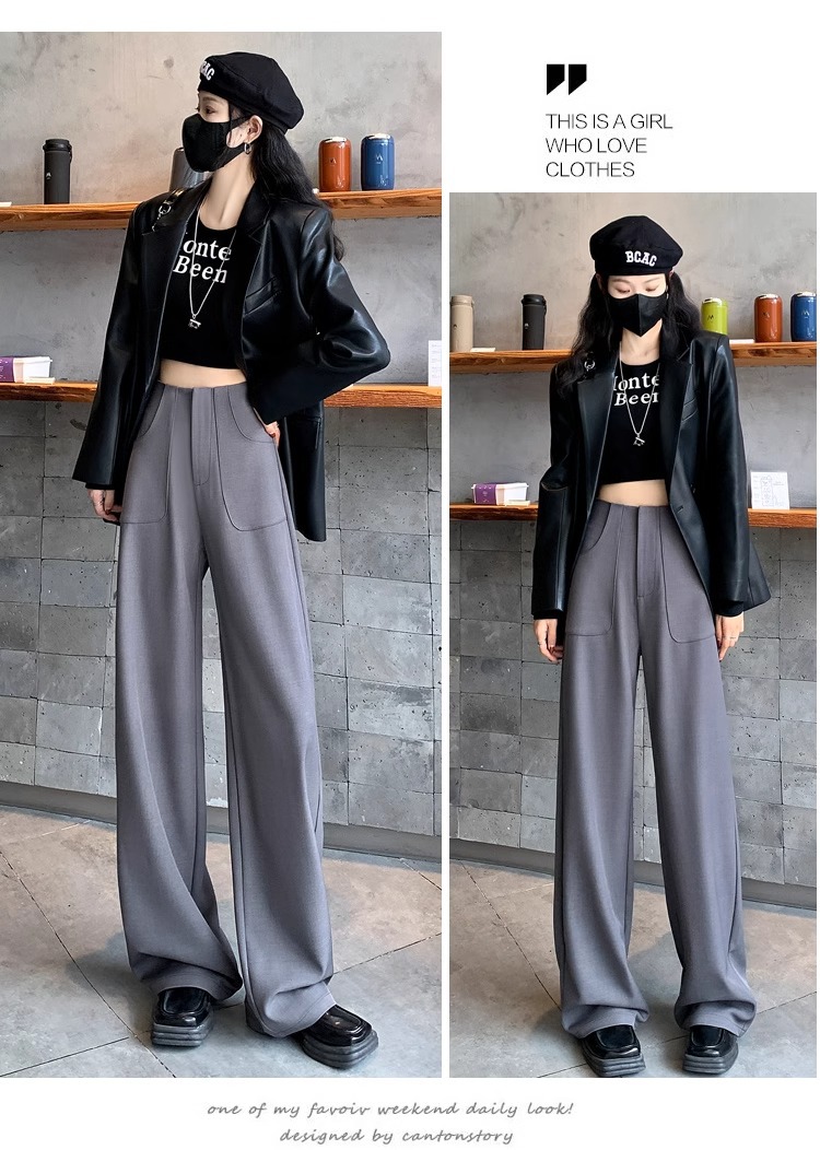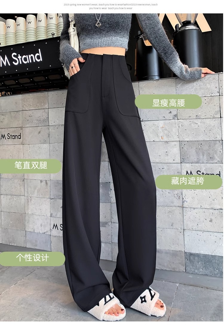 Trajes estrechos, pantalones de piernas anchas, mujeres, primavera y otoño, 2024 nuevos pantalones de cintura alta, delgados, rectos, relajados y casuales.