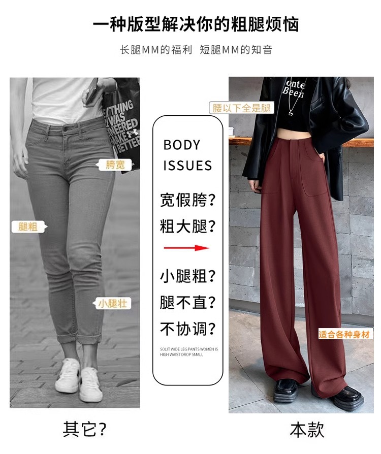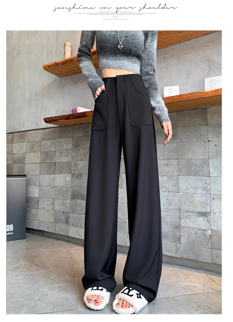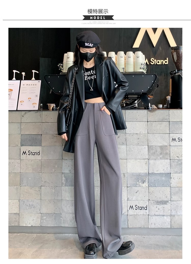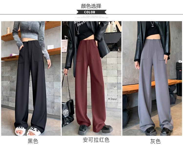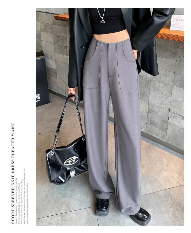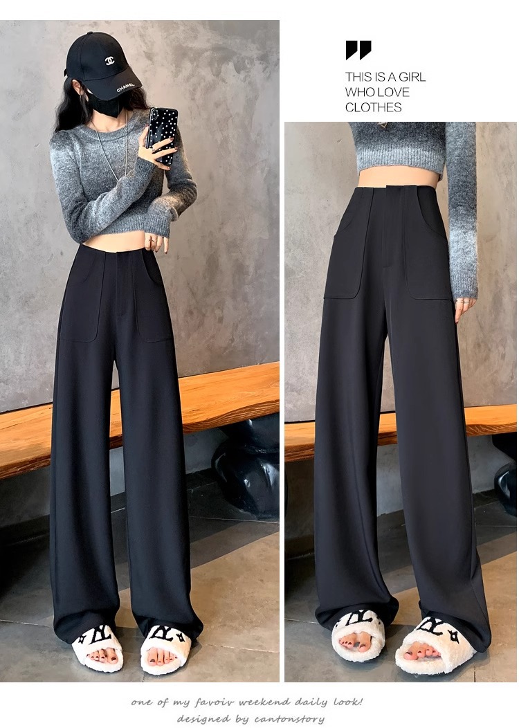 Trajes estrechos, pantalones de piernas anchas, mujeres, primavera y otoño, 2024 nuevos pantalones de cintura alta, delgados, rectos, relajados y casuales.