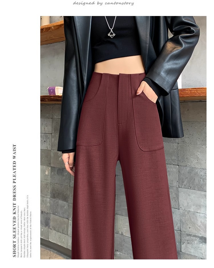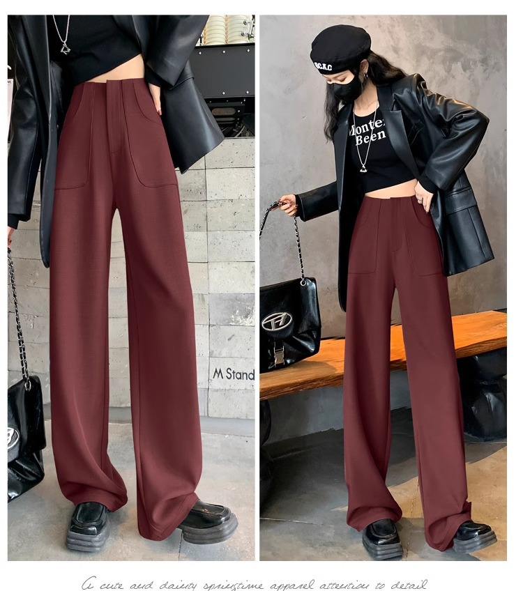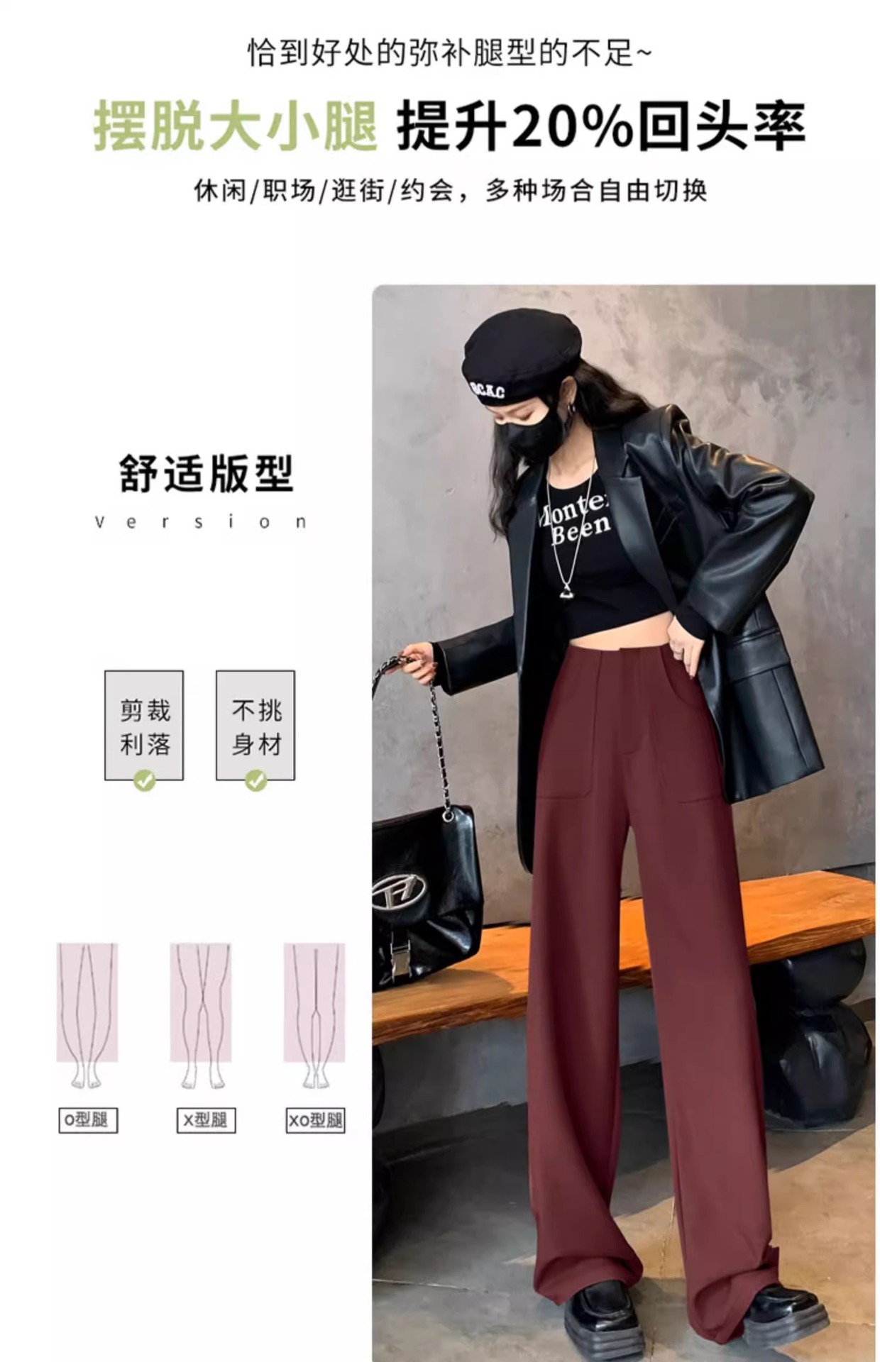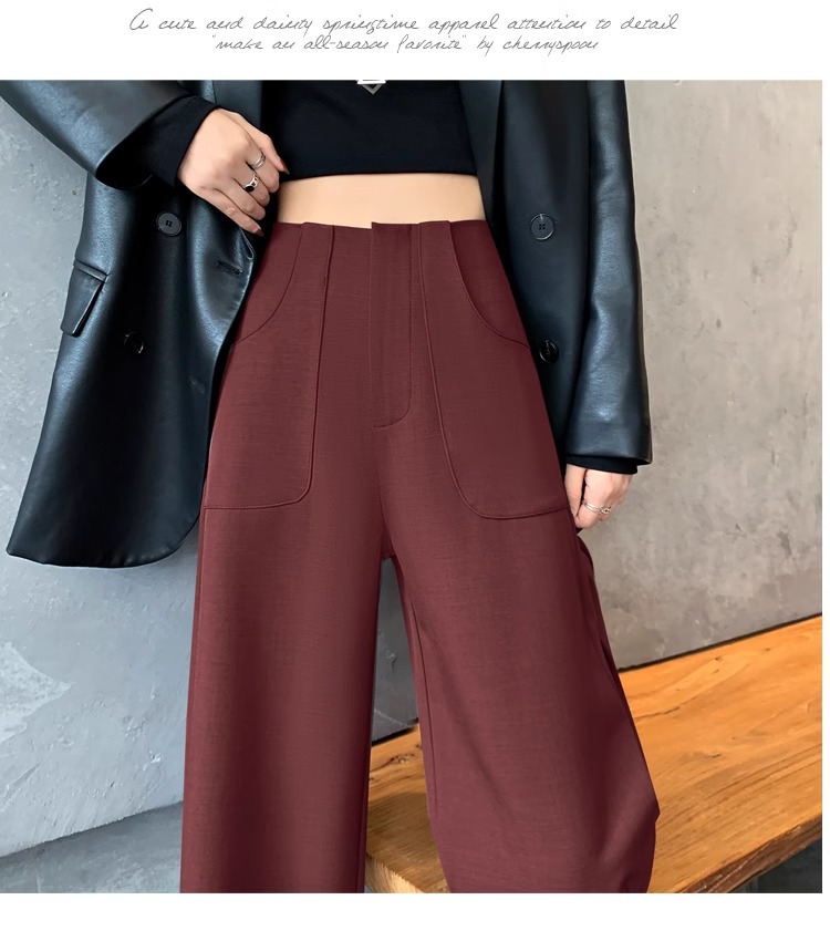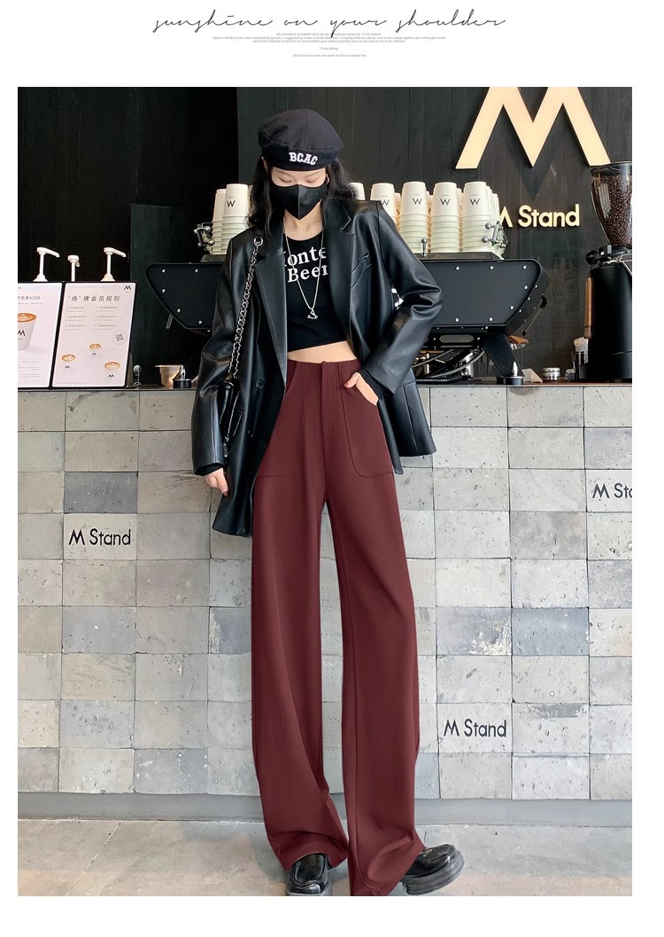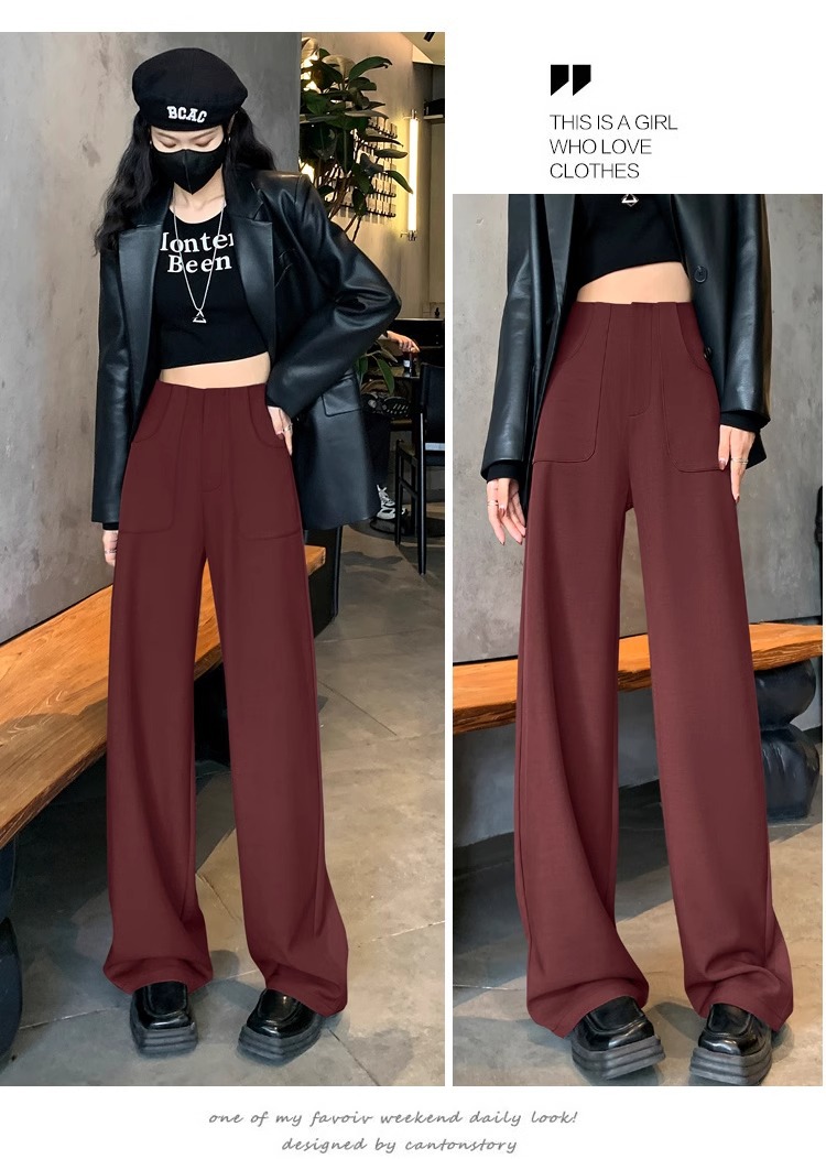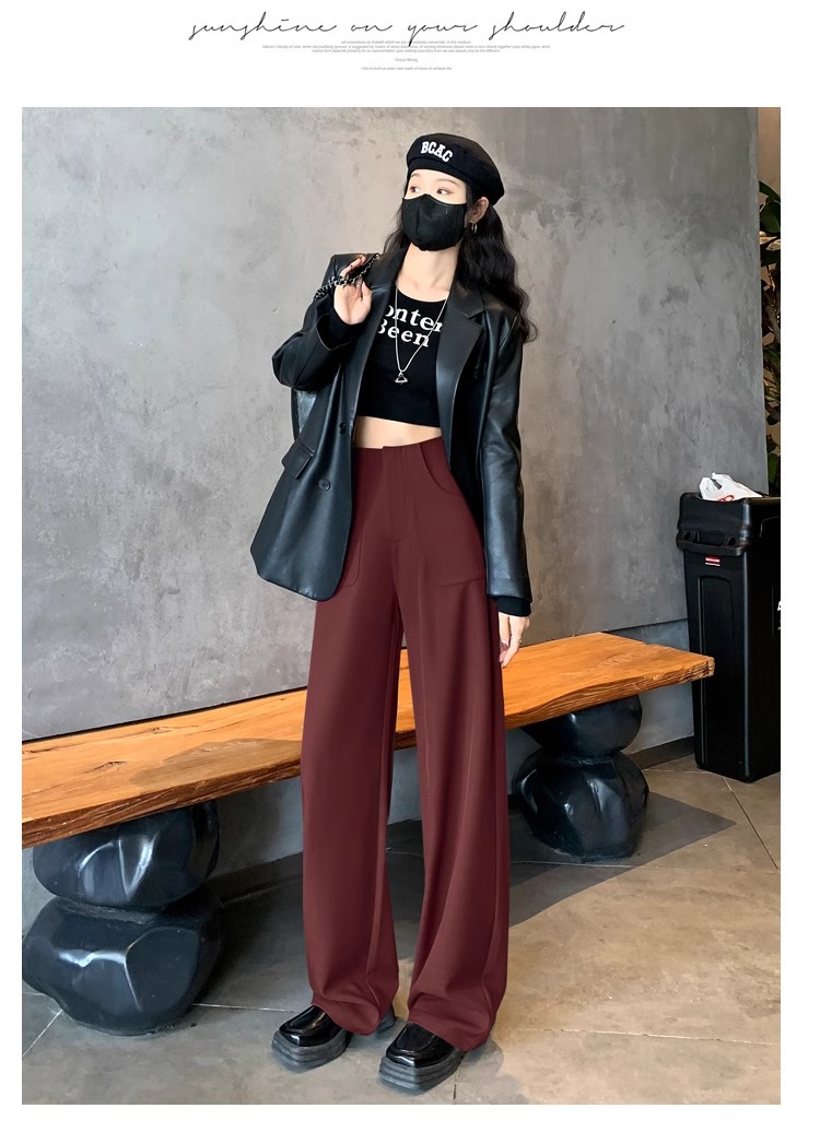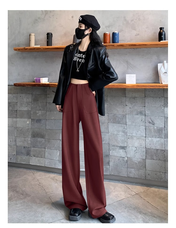 Ángora pantalones de trajes rojos de alta sensación de caída para mujeres 2024 primavera y otoño pequeño cintura alta pantalones rectos sueltos de piernas anchas