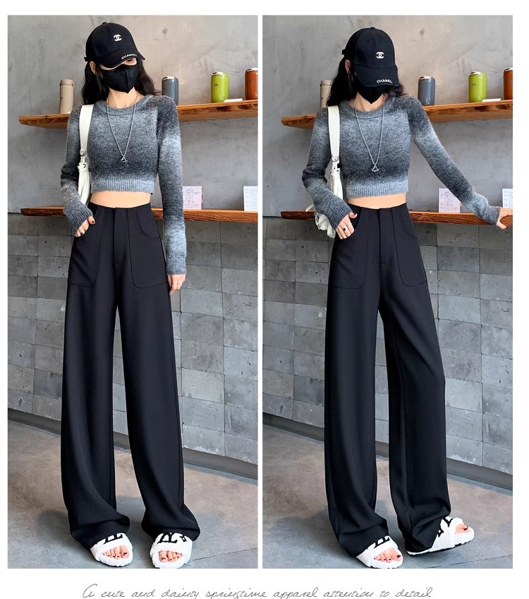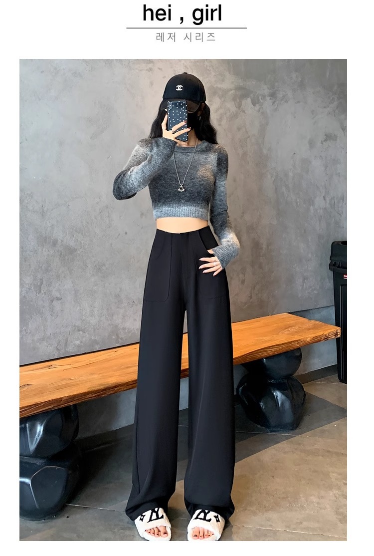 Pantalones negros de piernas anchas de mujer primavera y otoño 2025 nuevo hombre pequeño cintura alta relajada rectas pantalones casuales trapeadores